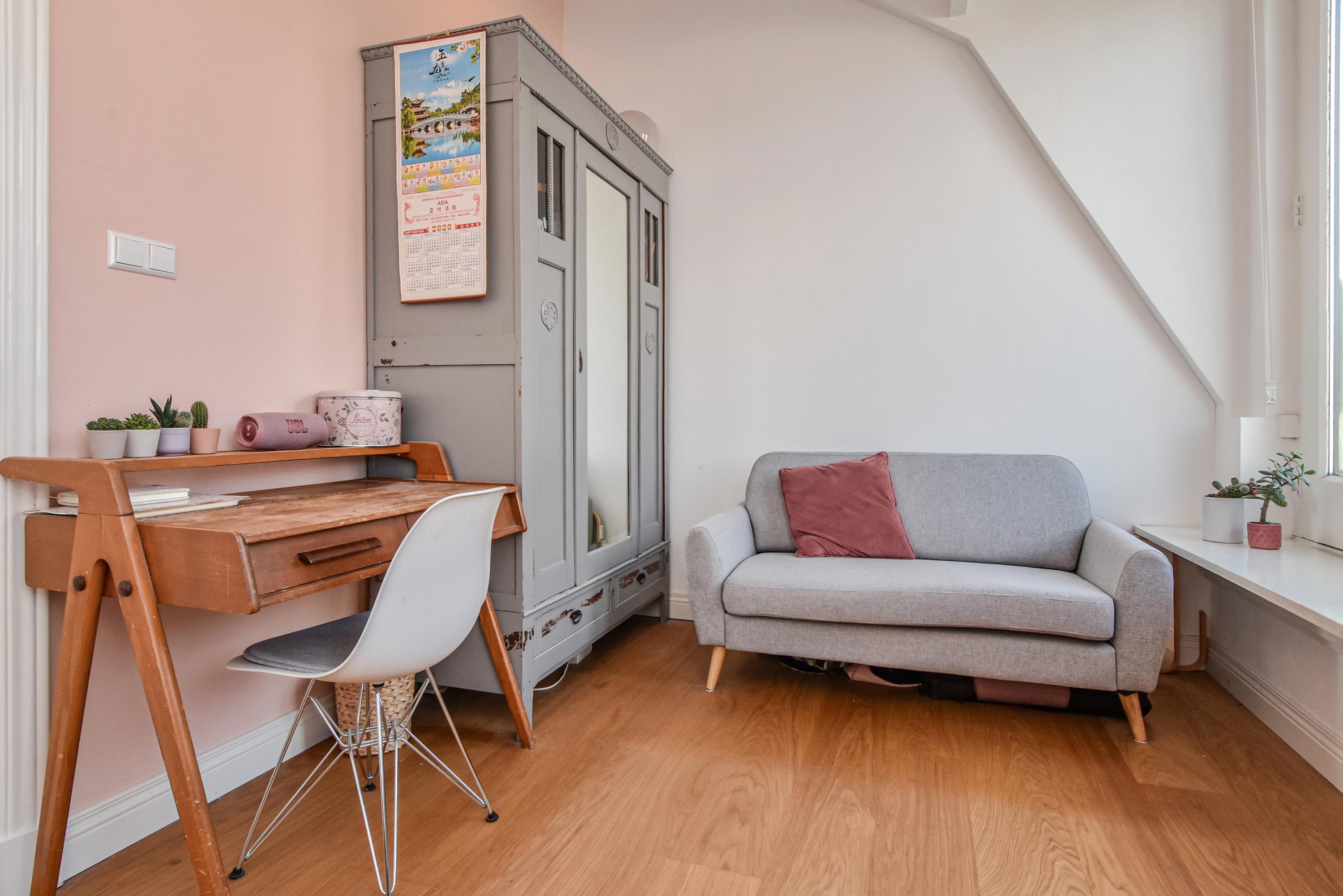 Al entrar, las fachadas de cristal altas y un techo que alcanza los 3,55 metros definen la cocina principal. Molduras de estuco y vidrieras preservadas celebran el linaje arquitectónico. La cocina, equipada con electrodomésticos de alta gama empotrados, se articula en torno a espacios para comer y socializar, flanqueados por dos amplias salas de estar. Un estudio integrado, con entrada independiente y baño con suelo radiante, puede adaptarse fácilmente como suite de invitados o zona de trabajo. En la planta baja hay amplios espacios de almacenamiento y acceso directo a Broerhuisstraat.