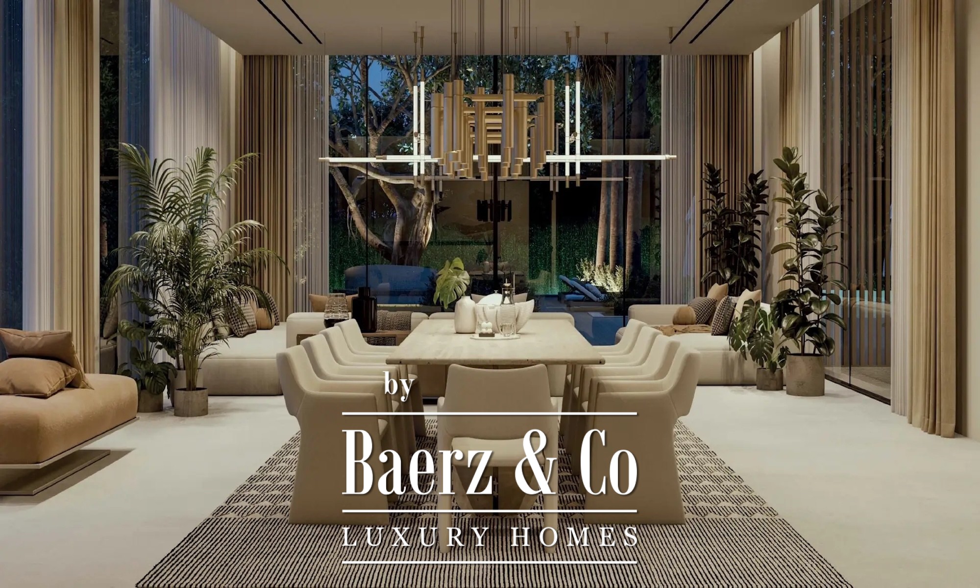 El ritmo interior se despliega con una sala de cine, sala de juegos y spa, aportando naturalidad y fluidez a la vida diaria. Los amplios ventanales de suelo a techo inundan de luz los espacios habitables, mientras que la terraza en la azotea revela vistas panorámicas del Burj Khalifa, conectando la vivienda con el inconfundible skyline de Dubái. La piscina infinita y la casa de la piscina se integran perfectamente, ideales tanto para el entretenimiento como para la contemplación tranquila.