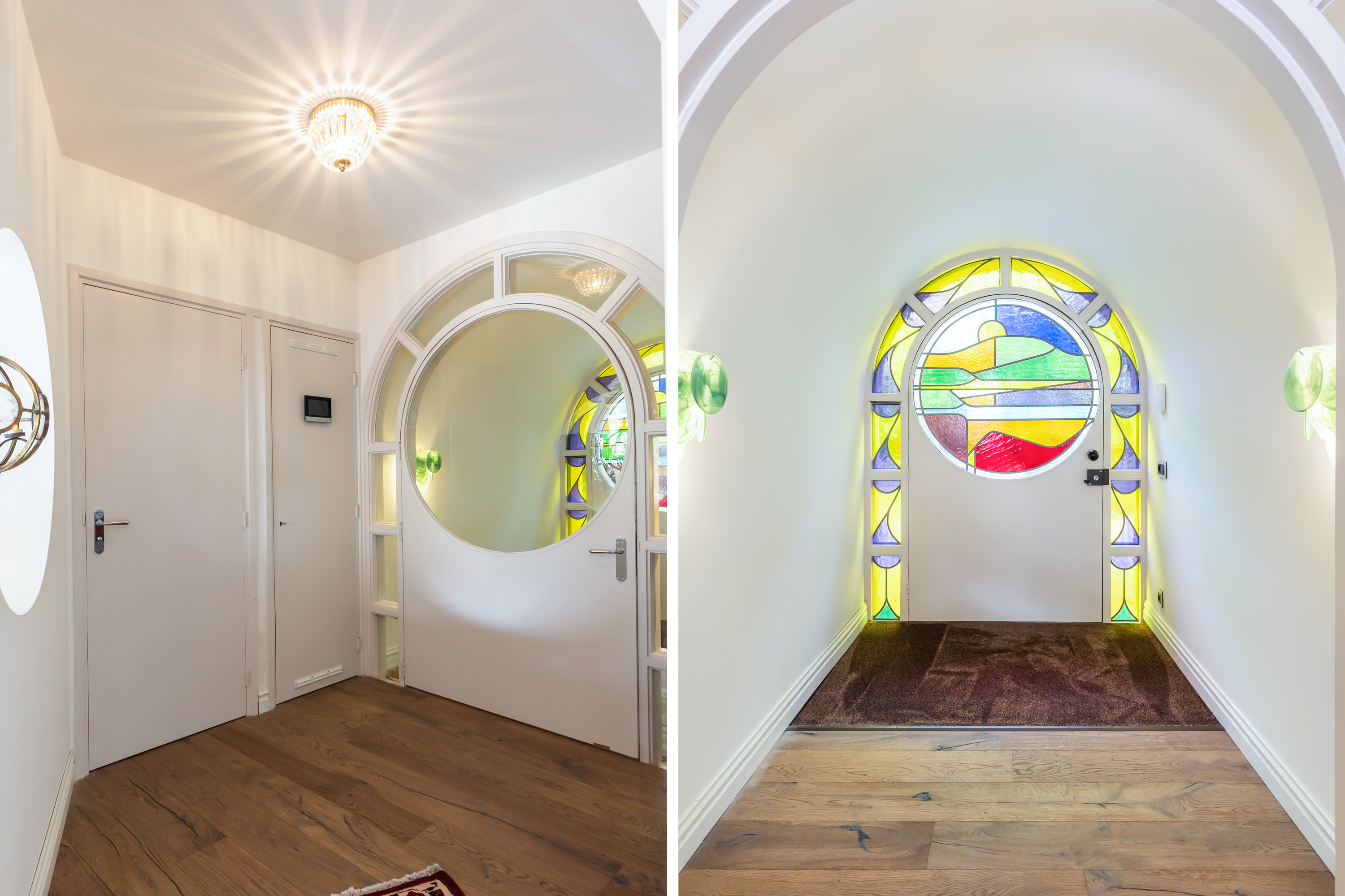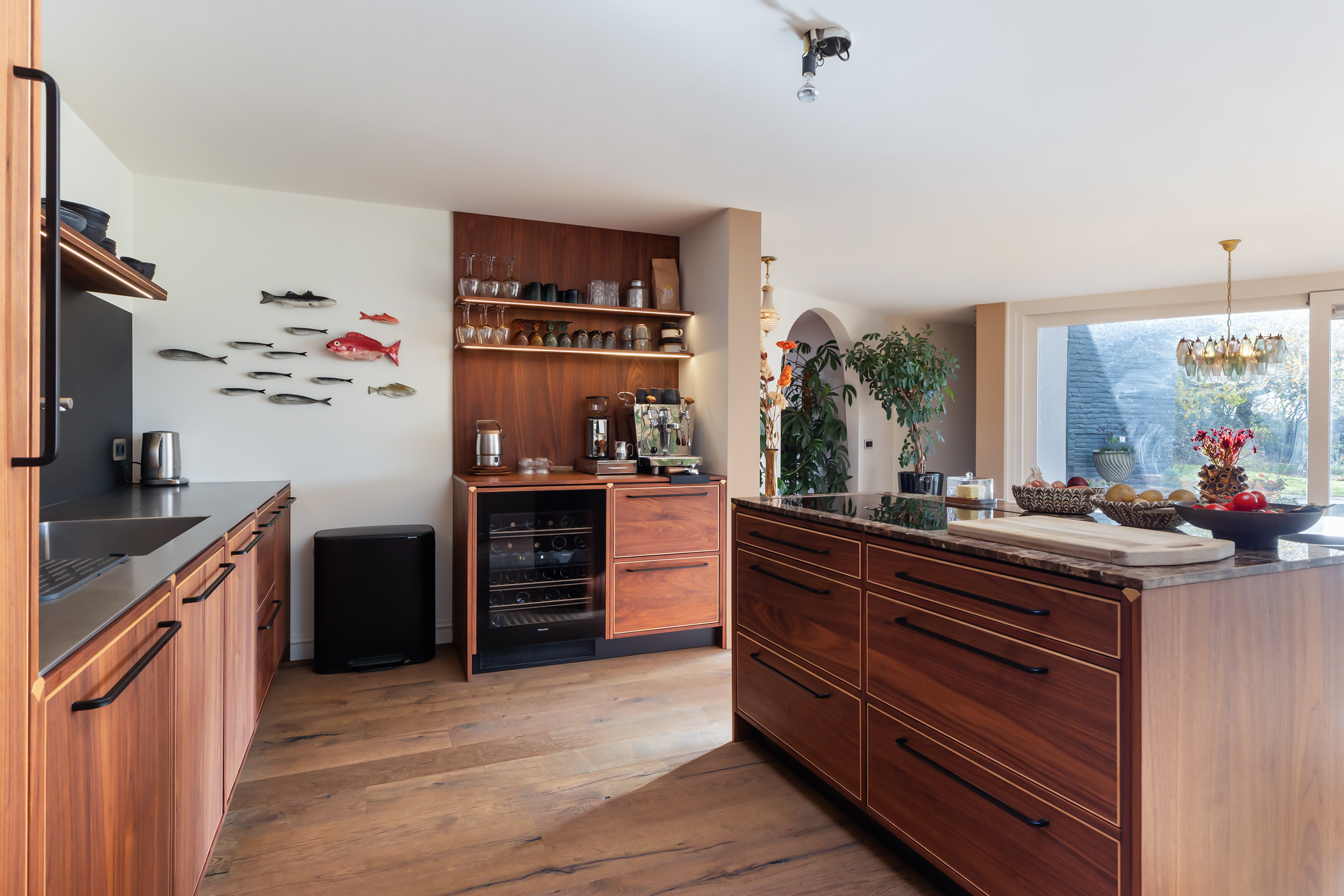 Erigida originalmente en 1875 y ampliada en 1992 por el arquitecto Antony Williams, la residencia fue completamente transformada en 2023. Materiales duraderos, carpintería a medida e iluminación ambiental definen su atmósfera de hotel de lujo, donde terrazas y soláriums orientados al sur sumergen la vida cotidiana en paisaje y luz. Todo el conjunto está libre de gas y es excepcionalmente eficiente energéticamente, equipado con bomba de calor geotérmica Thermia, 46 paneles solares, calefacción por suelo radiante y ventanas con triple acristalamiento, obteniendo así la clasificación energética A_PPP. El suministro de agua proviene de un pozo privado de 76 metros con sistema de purificación, garantizando total autonomía.