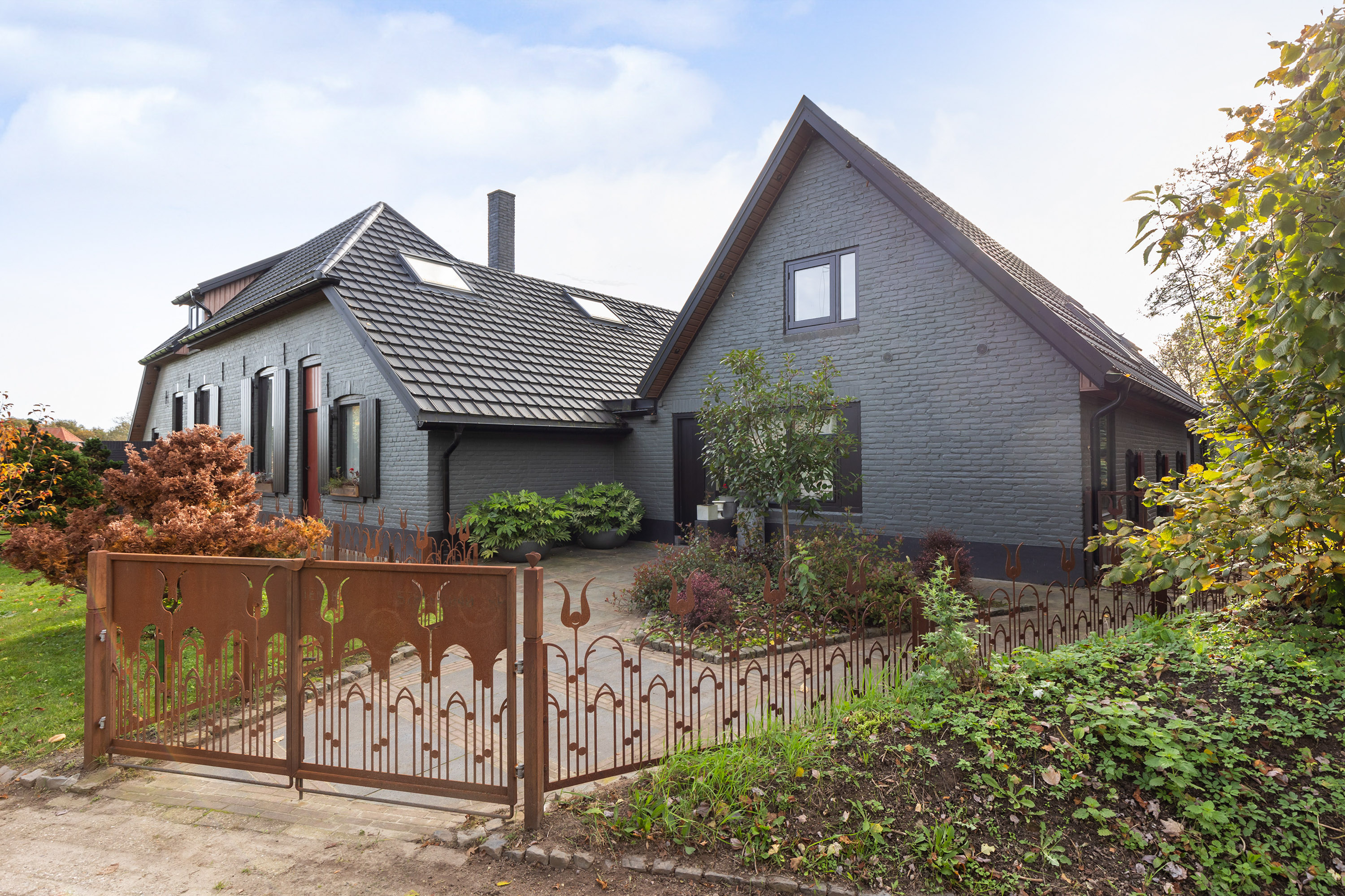Casa de campo con bungalow contemporáneo en Epse: un encuentro extraordinario entre historia, modernidad y visión sostenible. Esta propiedad abarca aproximadamente 330 m² de espacio habitable elegantemente diseñado, complementados por un edificio comercial de 445 m², situado entre campos abiertos cerca de Deventer y con gran visibilidad desde la A1. La residencia principal y una vivienda secundaria independiente ofrecen tres dormitorios y tres baños distribuidos en 314 m², donde el detalle auténtico se equilibra con el lujo contemporáneo en los interiores.