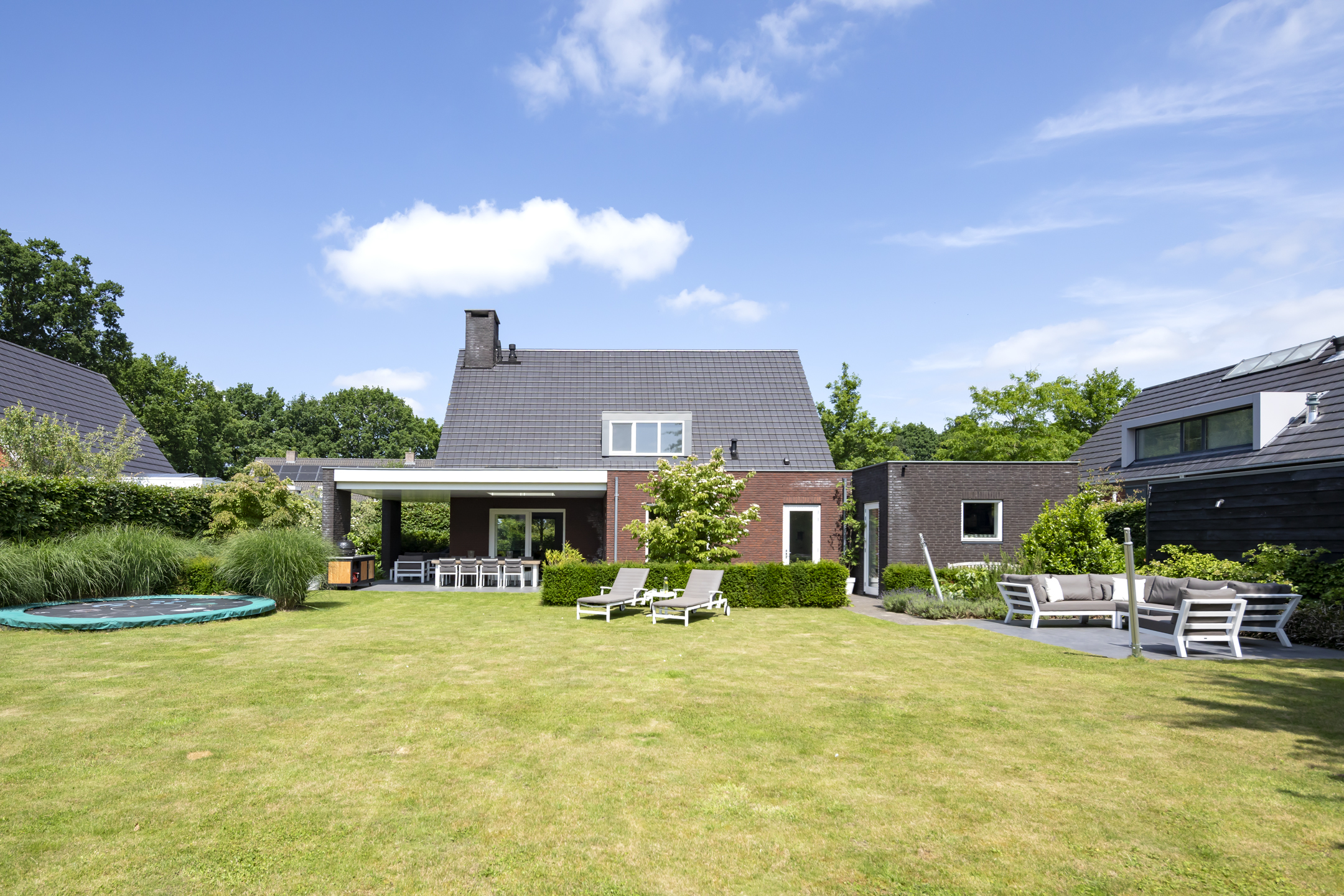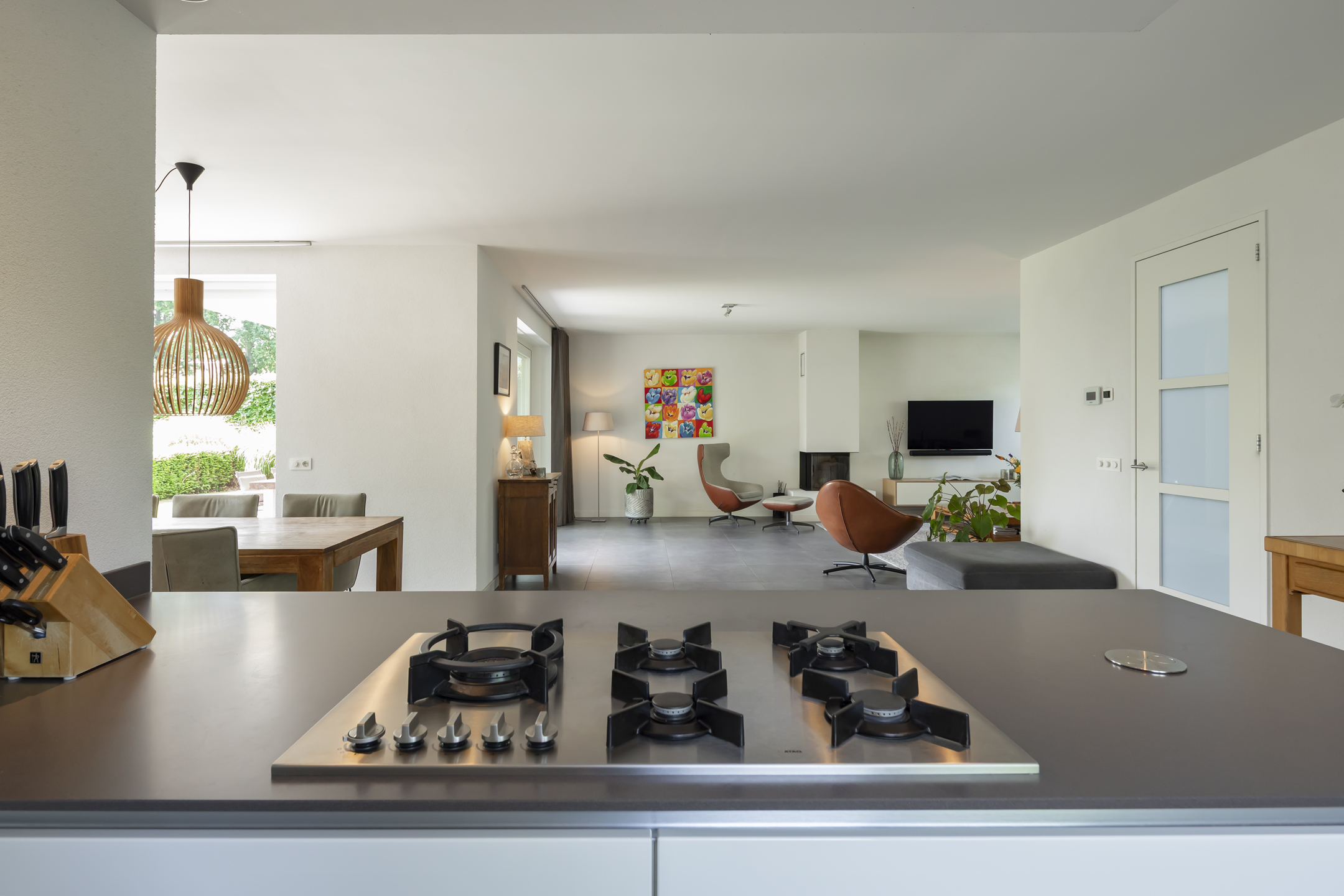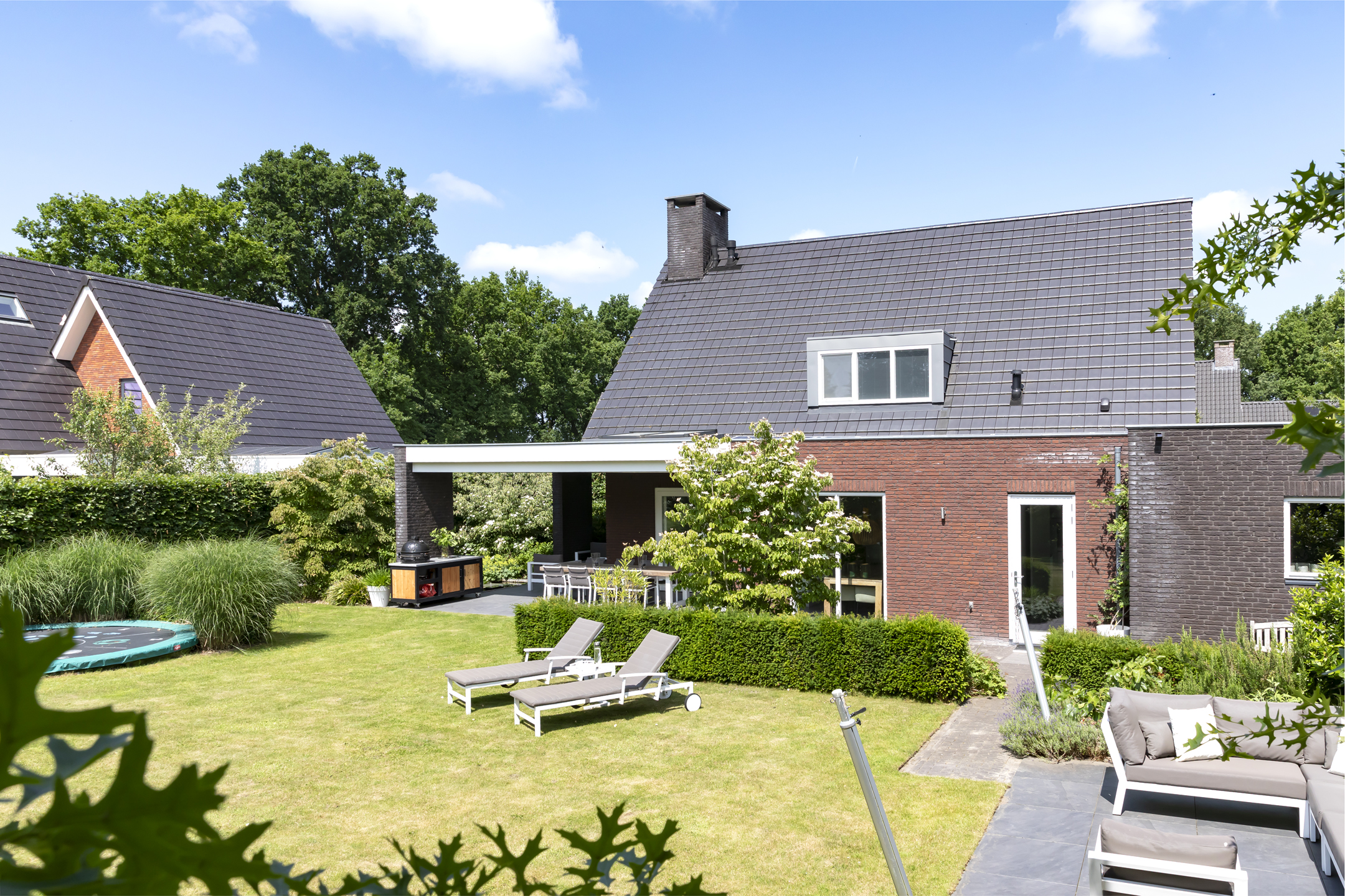 Esta casa familiar en Haaren ofrece una extraordinaria combinación de privacidad y amplitud, ubicada en una generosa parcela de 918 m² en las afueras del pueblo. Con una superficie habitable de 184 m², la vivienda dispone de cuatro dormitorios en una sola planta, lo que la convierte en una opción ideal para una convivencia familiar armoniosa. El diseño cuidadoso se refleja en la transición desde un luminoso salón—con grandes ventanales y chimenea central—hacia una cocina moderna de concepto abierto, acabada en blanco brillante con encimera de material compuesto, grifo Quooker y dos hornos. Un amplio lavadero conecta el garaje y el jardín, optimizando la funcionalidad diaria.