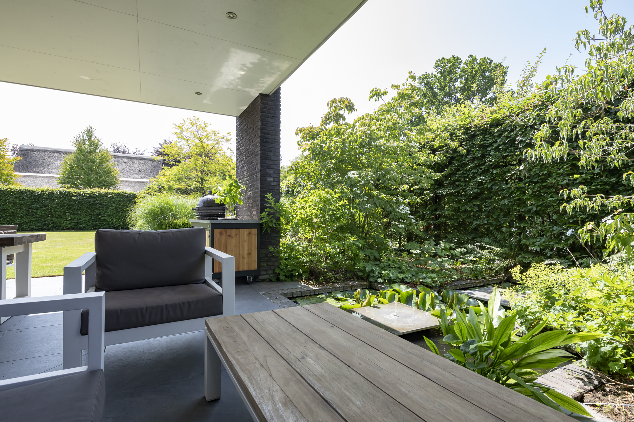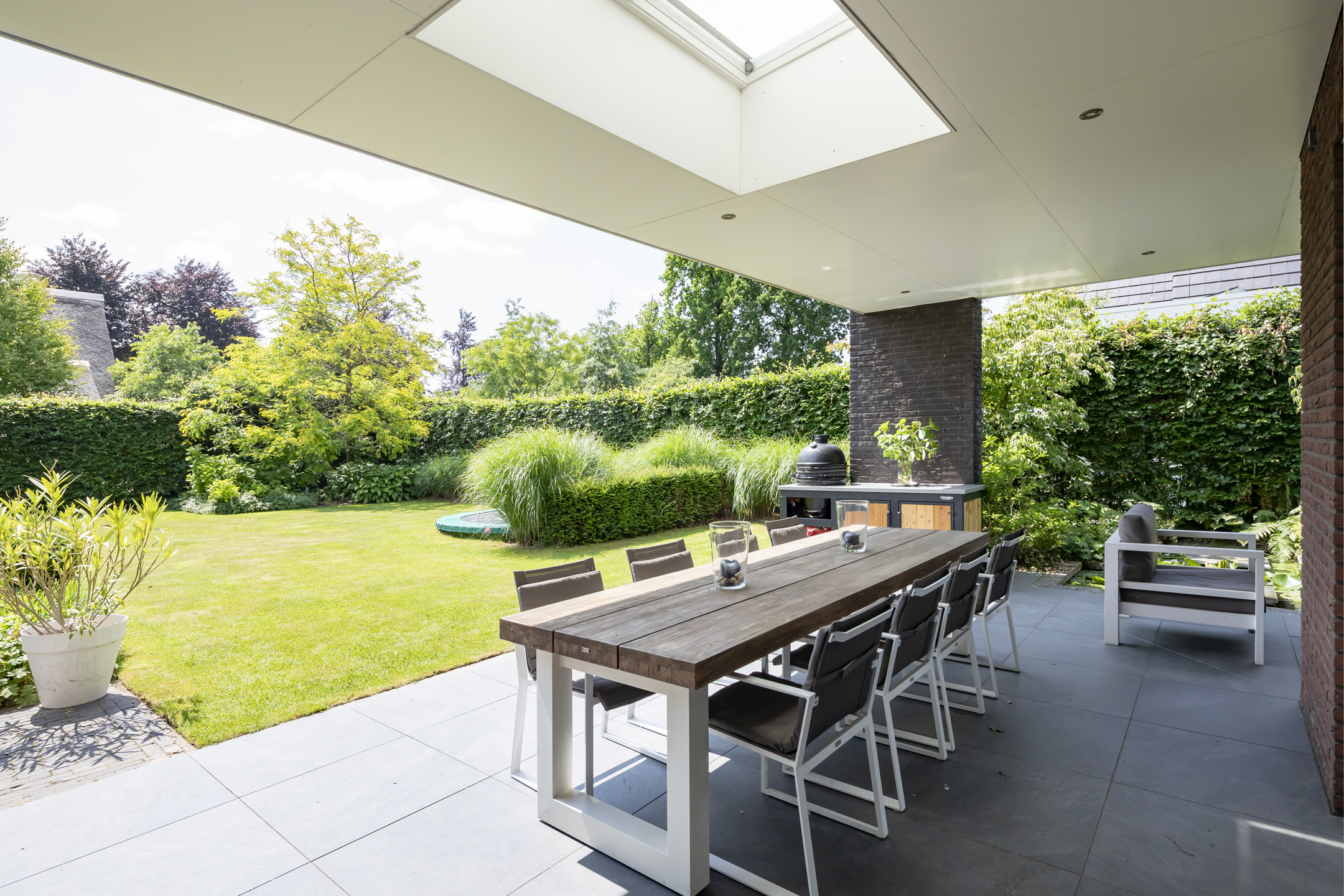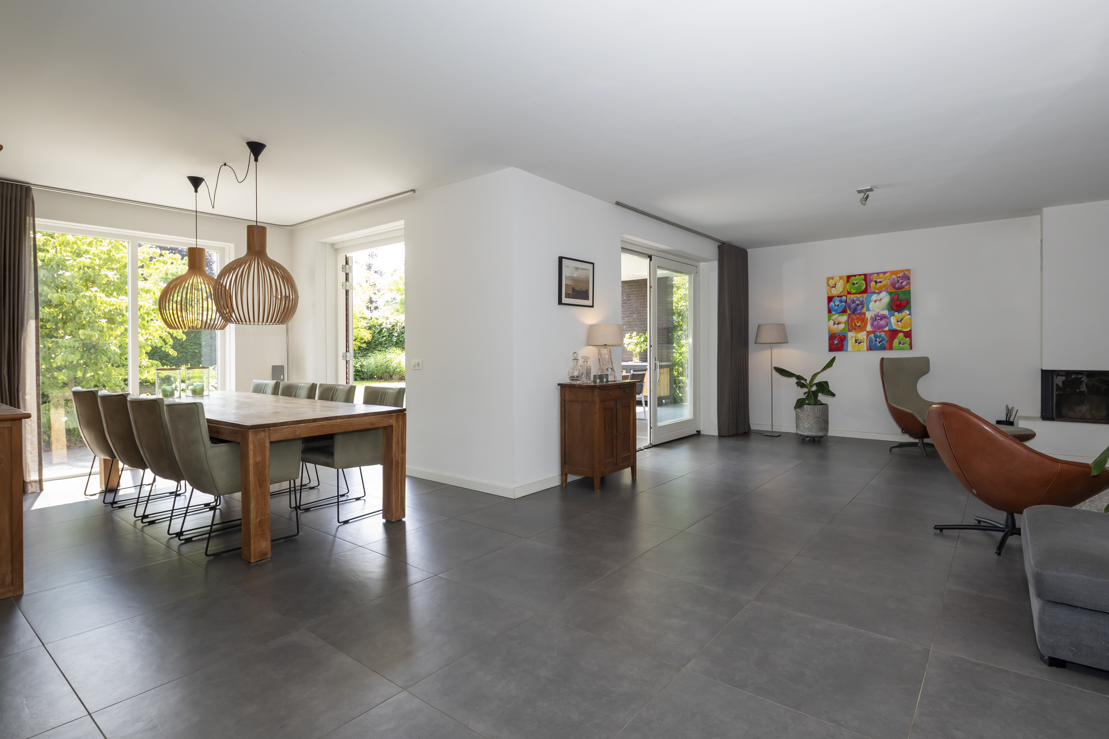 Esta casa familiar en Haaren ofrece una extraordinaria combinación de privacidad y amplitud, ubicada en una generosa parcela de 918 m² en las afueras del pueblo. Con una superficie habitable de 184 m², la vivienda dispone de cuatro dormitorios en una sola planta, lo que la convierte en una opción ideal para una convivencia familiar armoniosa. El diseño cuidadoso se refleja en la transición desde un luminoso salón—con grandes ventanales y chimenea central—hacia una cocina moderna de concepto abierto, acabada en blanco brillante con encimera de material compuesto, grifo Quooker y dos hornos. Un amplio lavadero conecta el garaje y el jardín, optimizando la funcionalidad diaria.