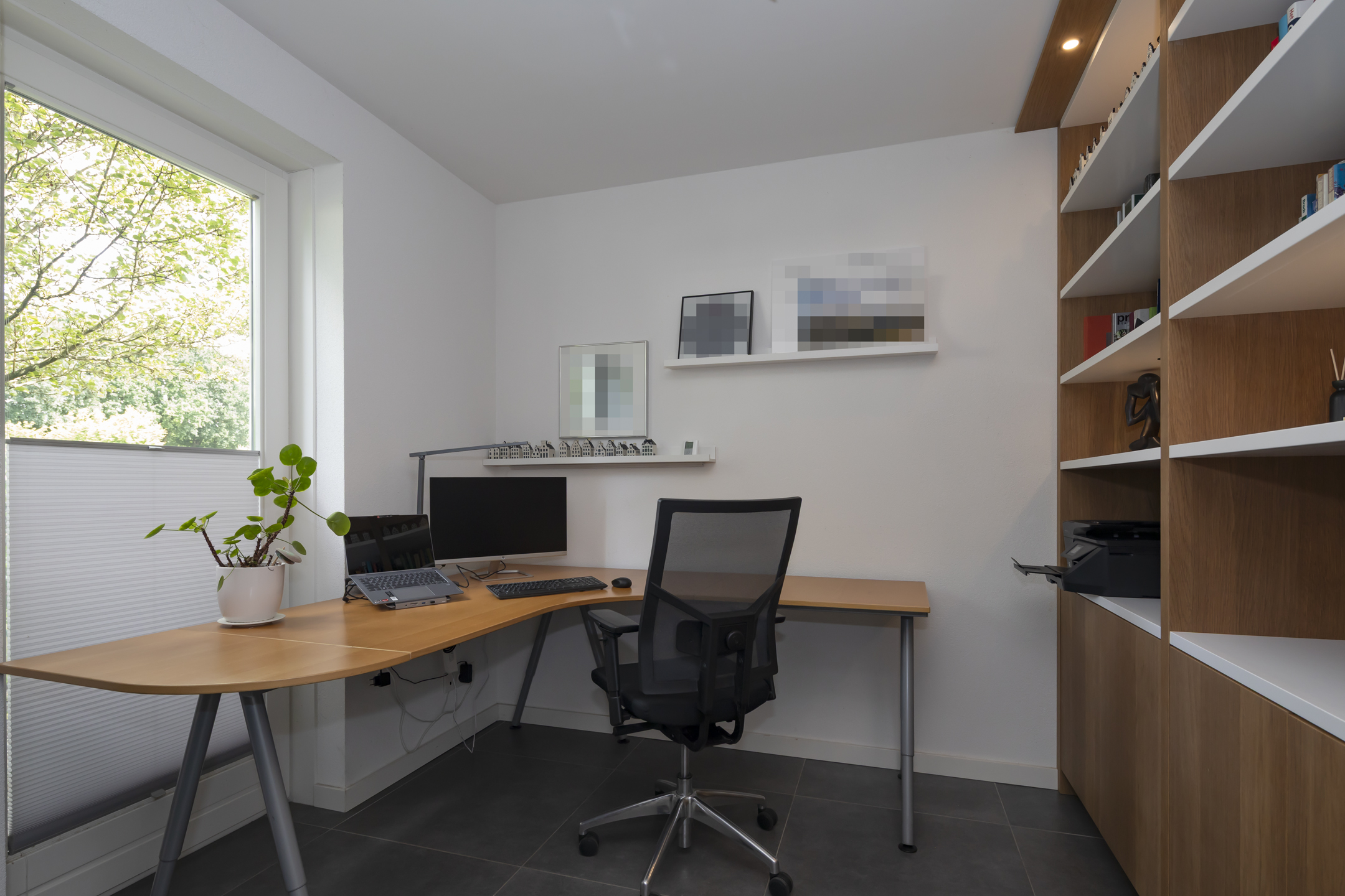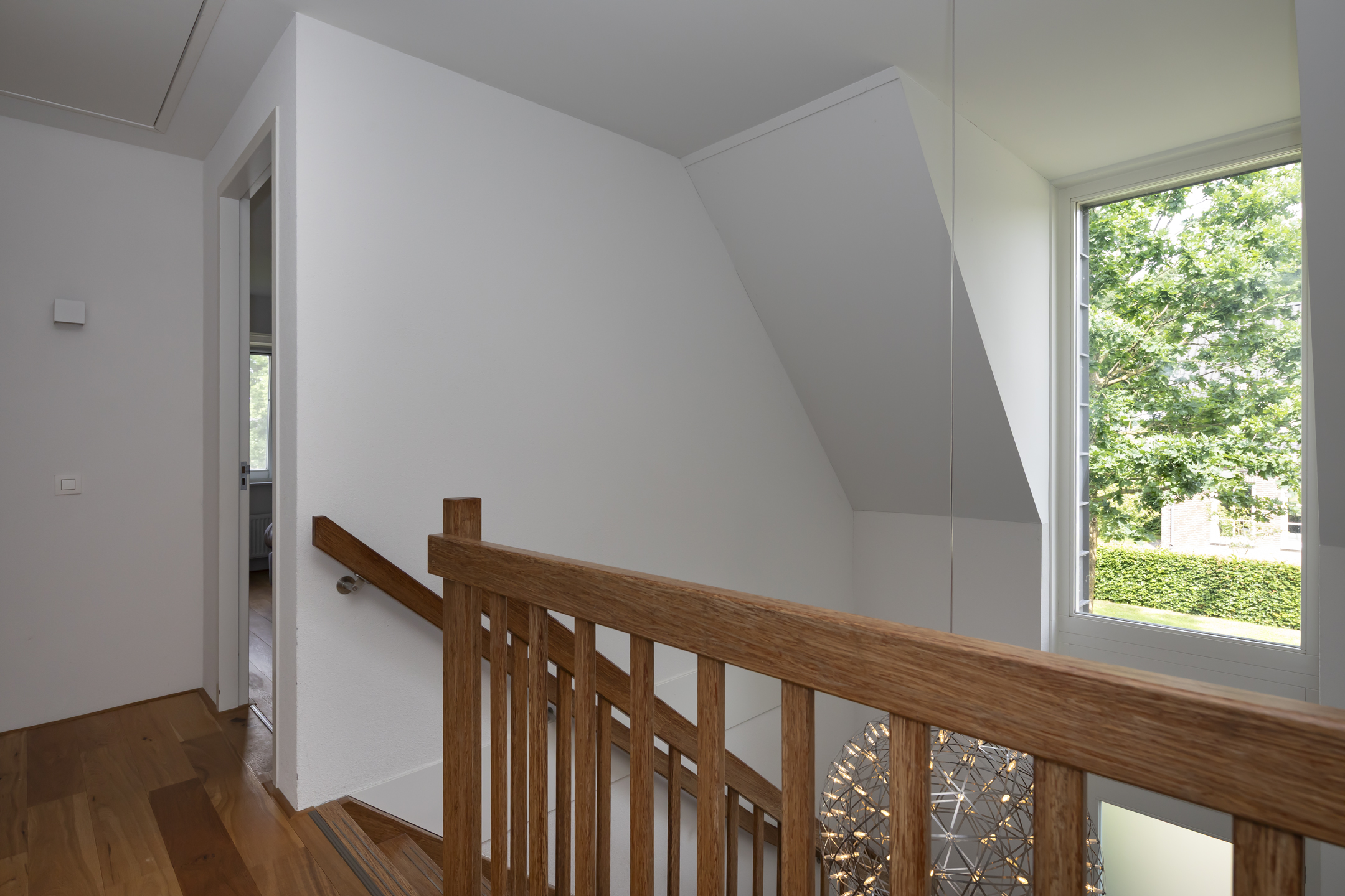 En la planta superior, cada dormitorio ofrece aproximadamente 15 m² de espacio tranquilo, mientras que el baño cuenta con ducha a ras de suelo, doble lavabo, bañera grande, luz natural y suelo radiante. El ático, que recorre toda la longitud de la casa, proporciona un generoso espacio de almacenamiento para necesidades estacionales.