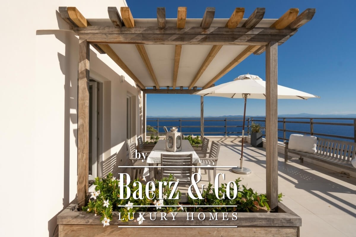 La villa original, creada en la década de 1950 por un reconocido arquitecto, fue restaurada a principios de los años 2000 para preservar la autenticidad y la integridad arquitectónica. Jardines en terrazas, vegetación mediterránea y olivos maduros rodean la parcela de 9.000 m², proporcionando calma y privacidad. La terraza principal disfruta de vistas al mar turquesa, la playa de Arenella, el Monte Argentario y la isla de Giannutri.
