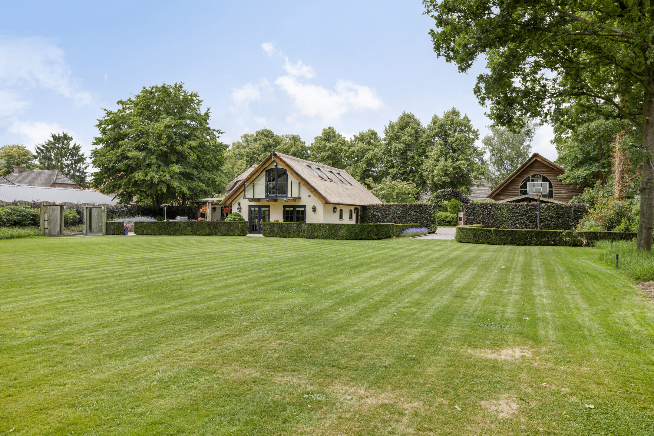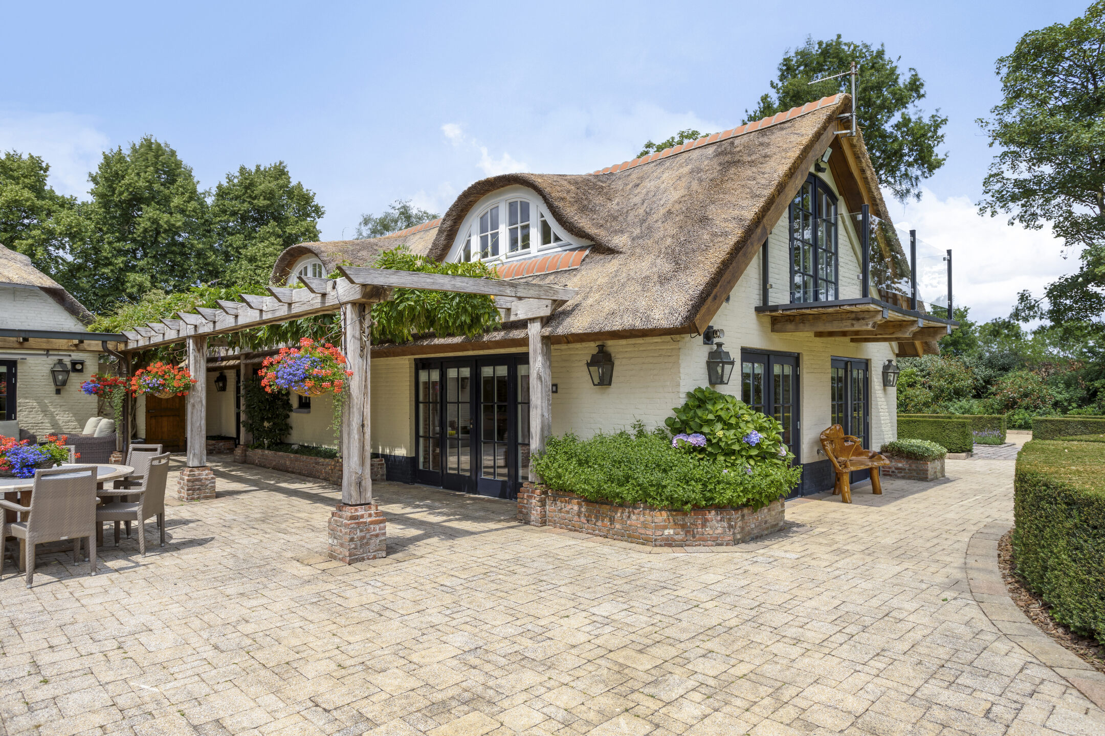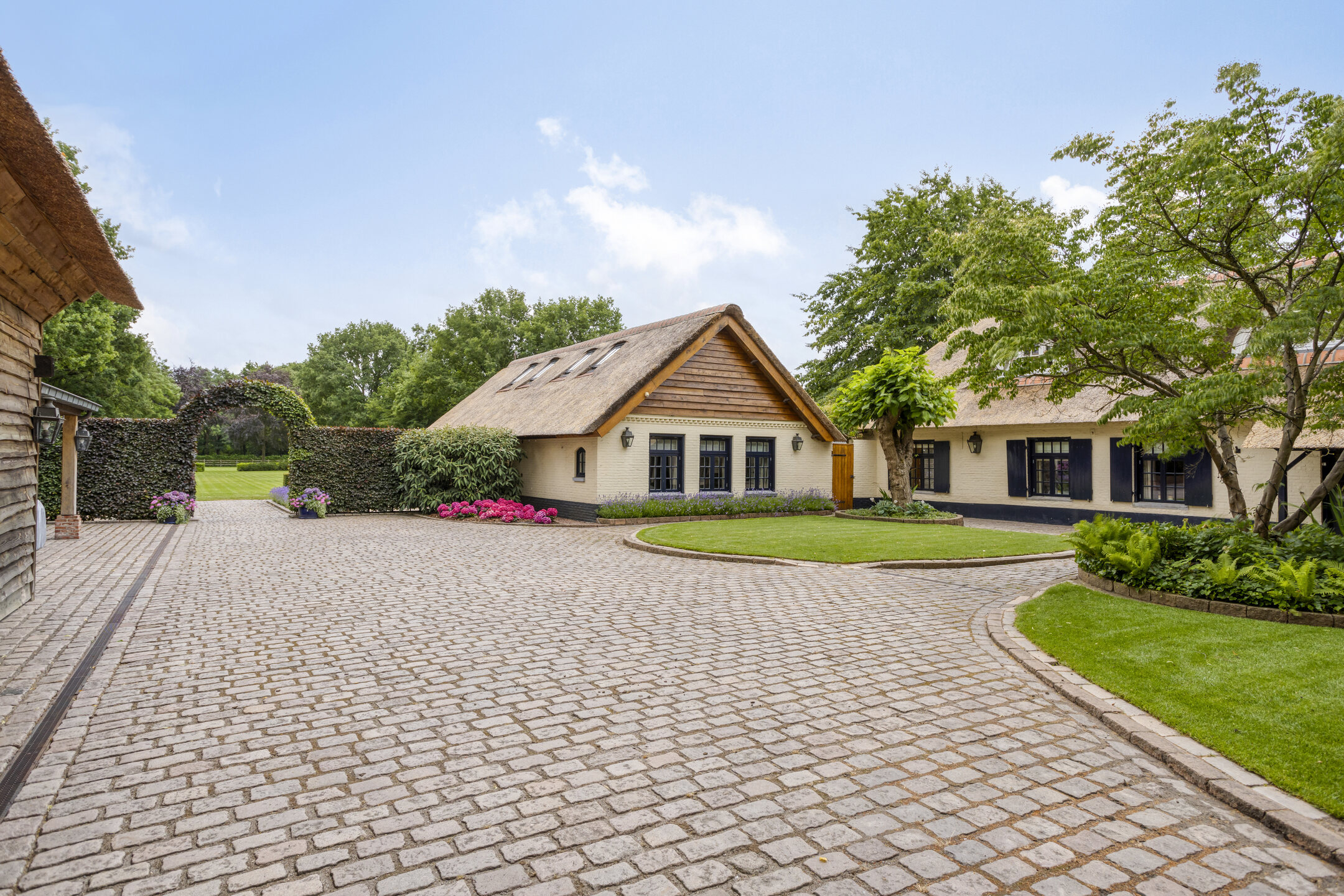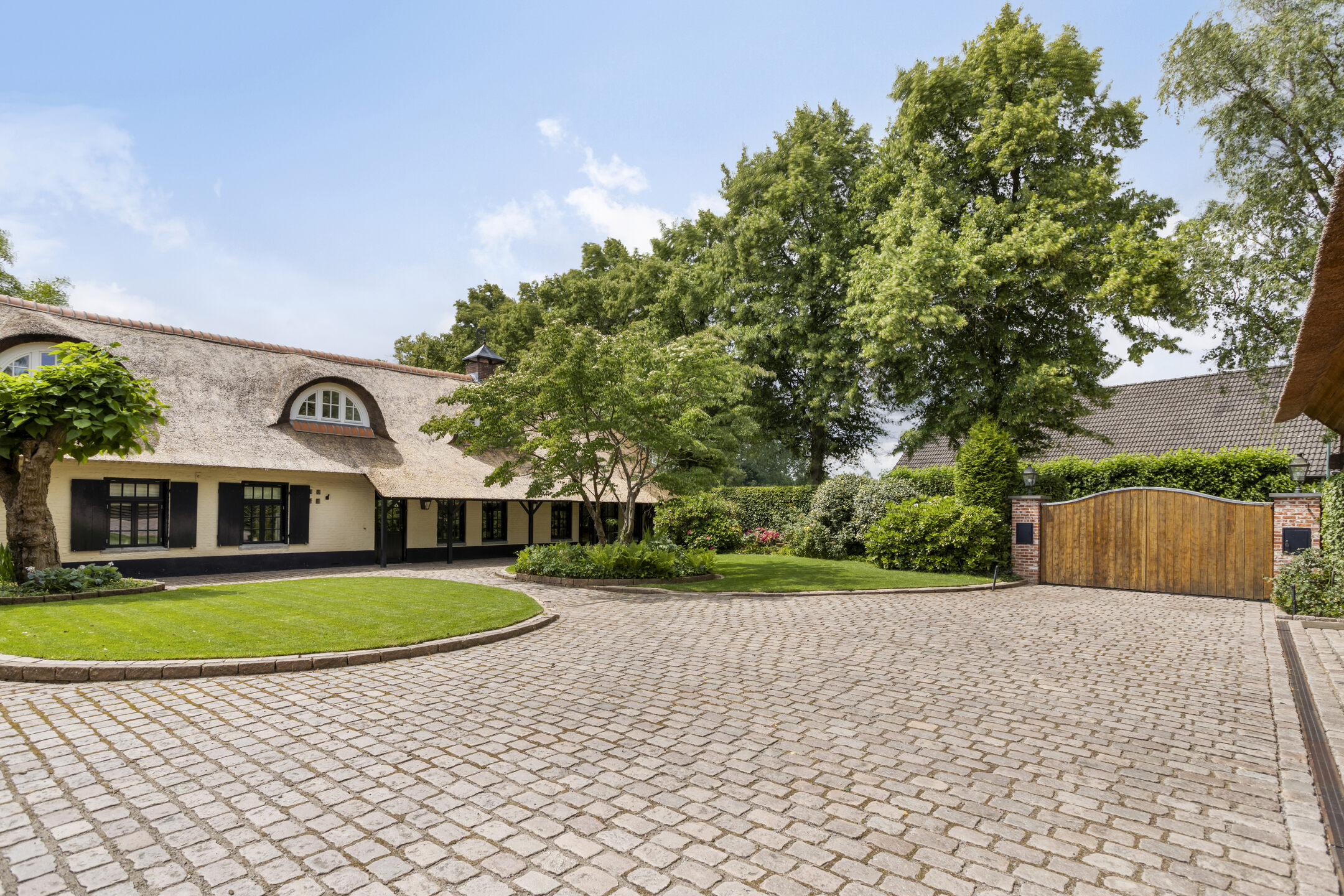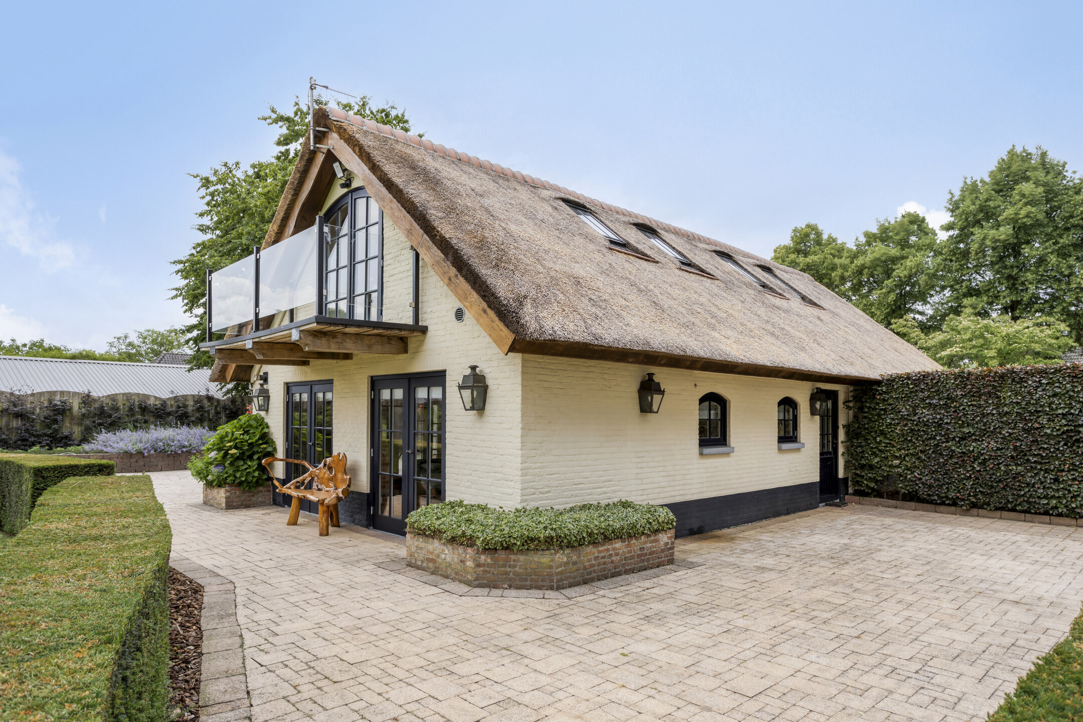 La finca rústica Riethoven ofrece una sensación de privacidad y herencia en una tranquila calle a las afueras de Riethoven, Países Bajos. Esta residencia totalmente renovada ocupa una magnífica parcela de 6.755 m², con 484 m² de espacio habitable que equilibra el carácter restaurado con el confort contemporáneo, e incluye una casa de invitados independiente y un amplio anexo. La finca se realza mediante un techo de paja y detalles cuidadosamente seleccionados, desde la entrada con suelo de mármol y las escaleras de madera tallada hasta las elegantes vigas y los amplios interiores llenos de luz.