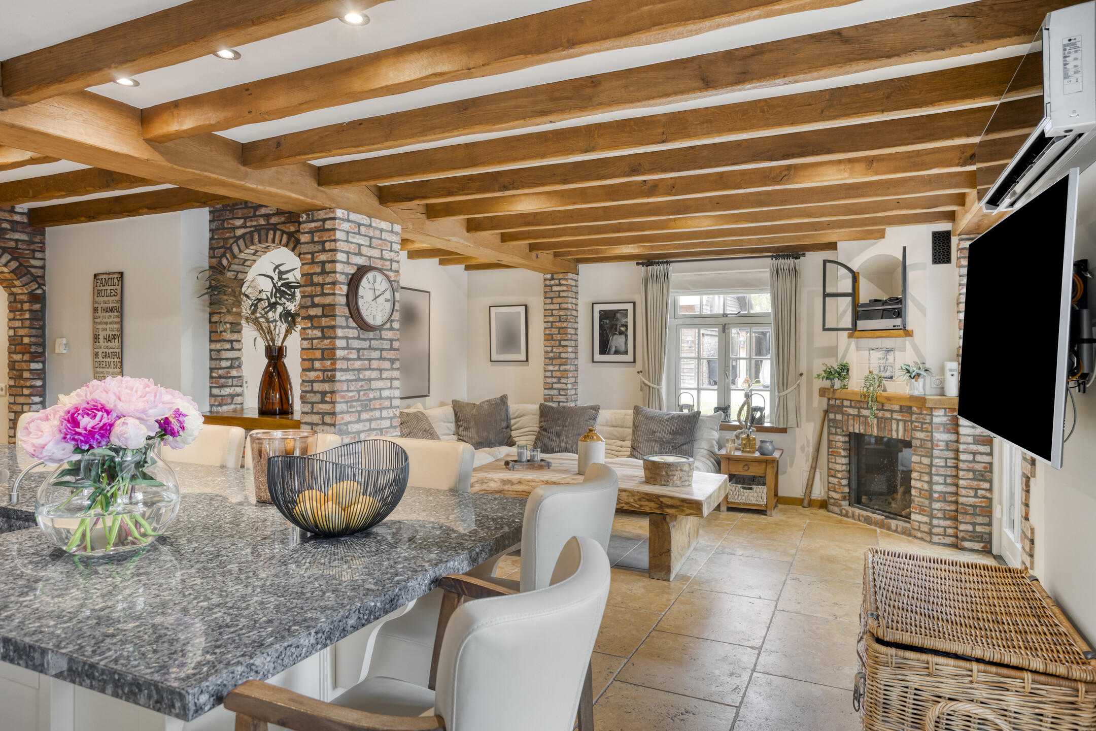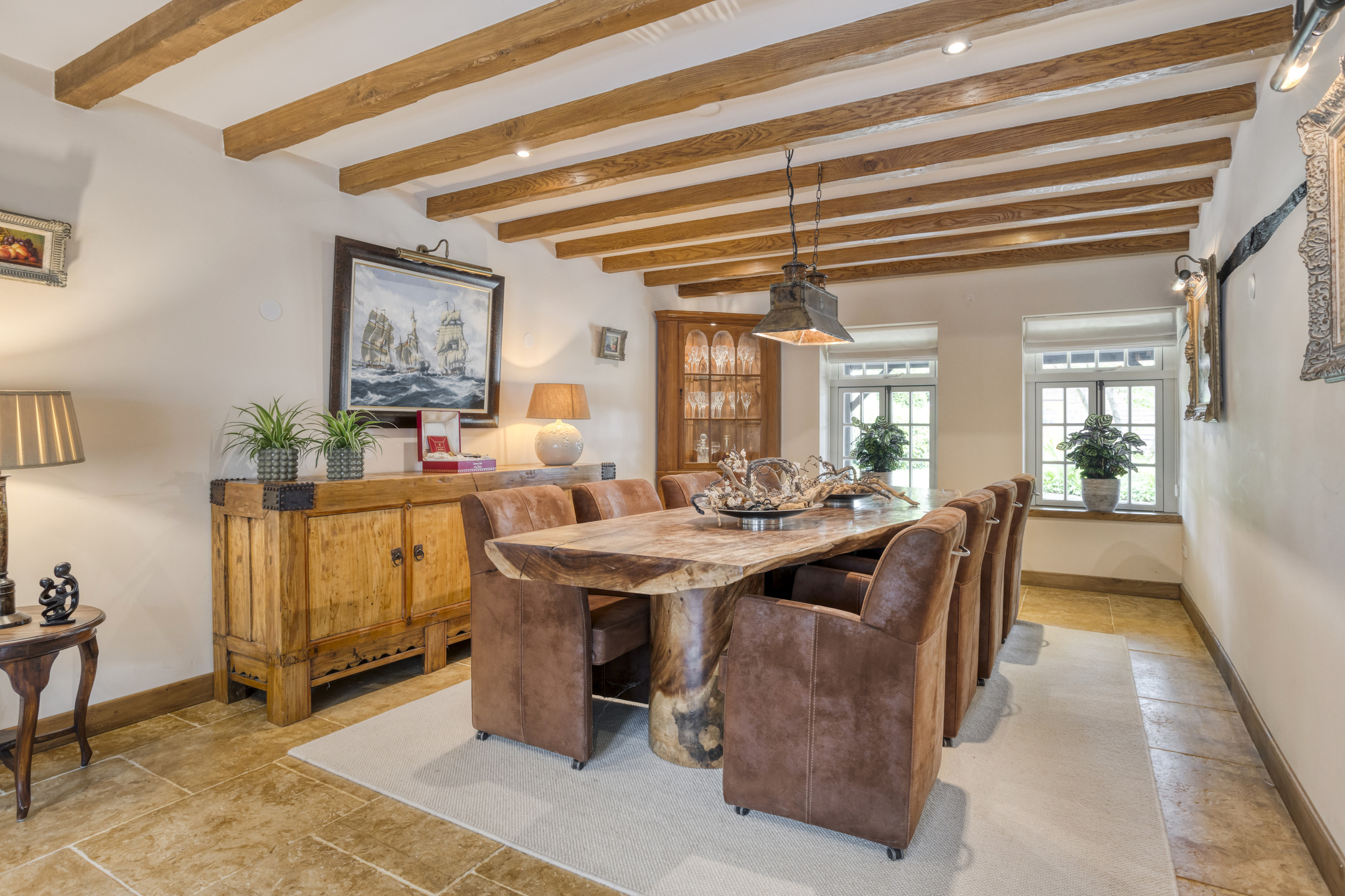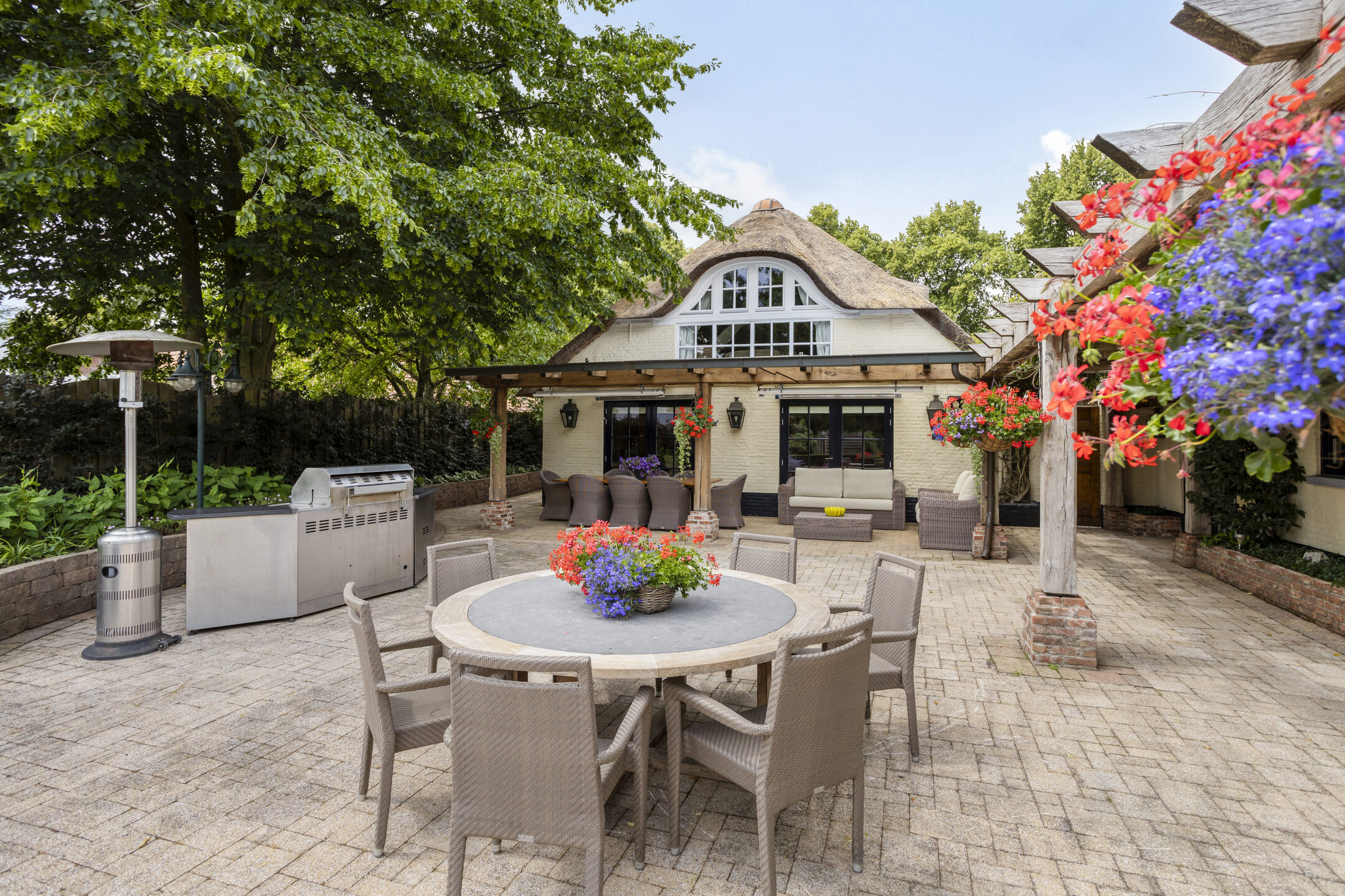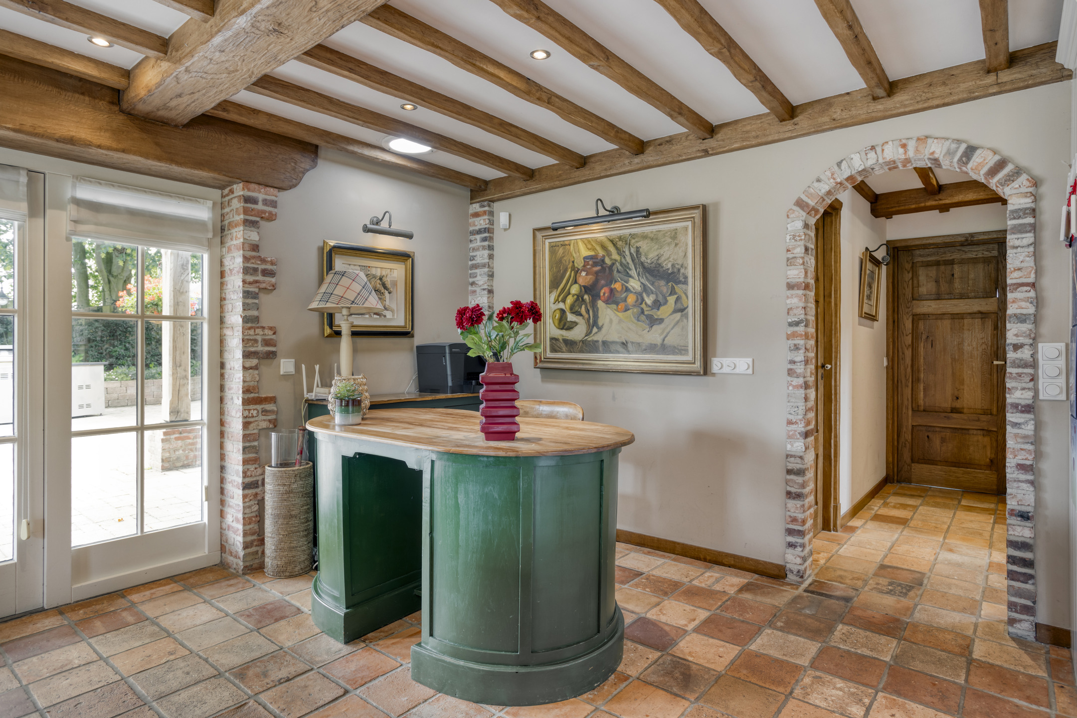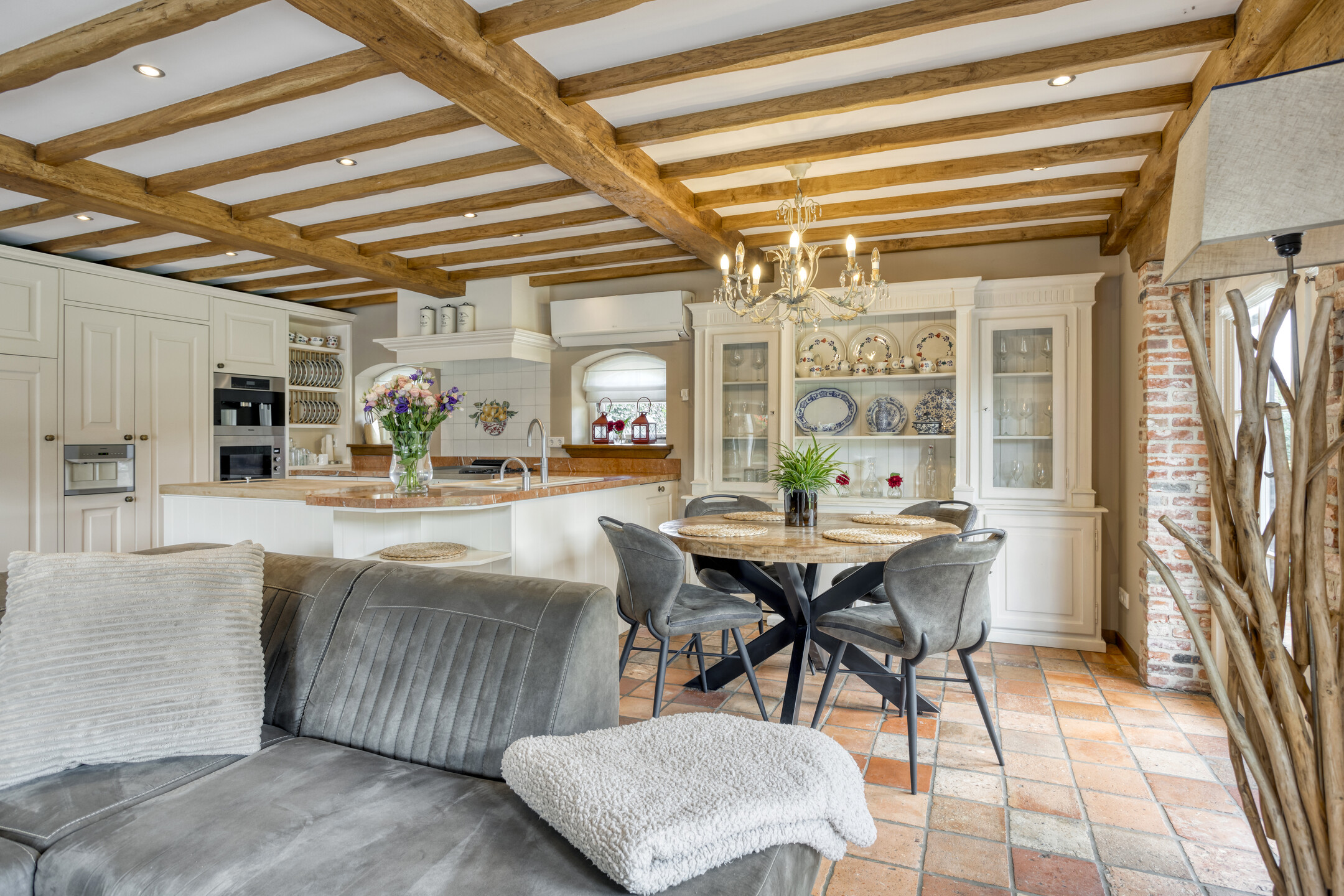 La finca rústica Riethoven ofrece una sensación de privacidad y herencia en una tranquila calle a las afueras de Riethoven, Países Bajos. Esta residencia totalmente renovada ocupa una magnífica parcela de 6.755 m², con 484 m² de espacio habitable que equilibra el carácter restaurado con el confort contemporáneo, e incluye una casa de invitados independiente y un amplio anexo. La finca se realza mediante un techo de paja y detalles cuidadosamente seleccionados, desde la entrada con suelo de mármol y las escaleras de madera tallada hasta las elegantes vigas y los amplios interiores llenos de luz.