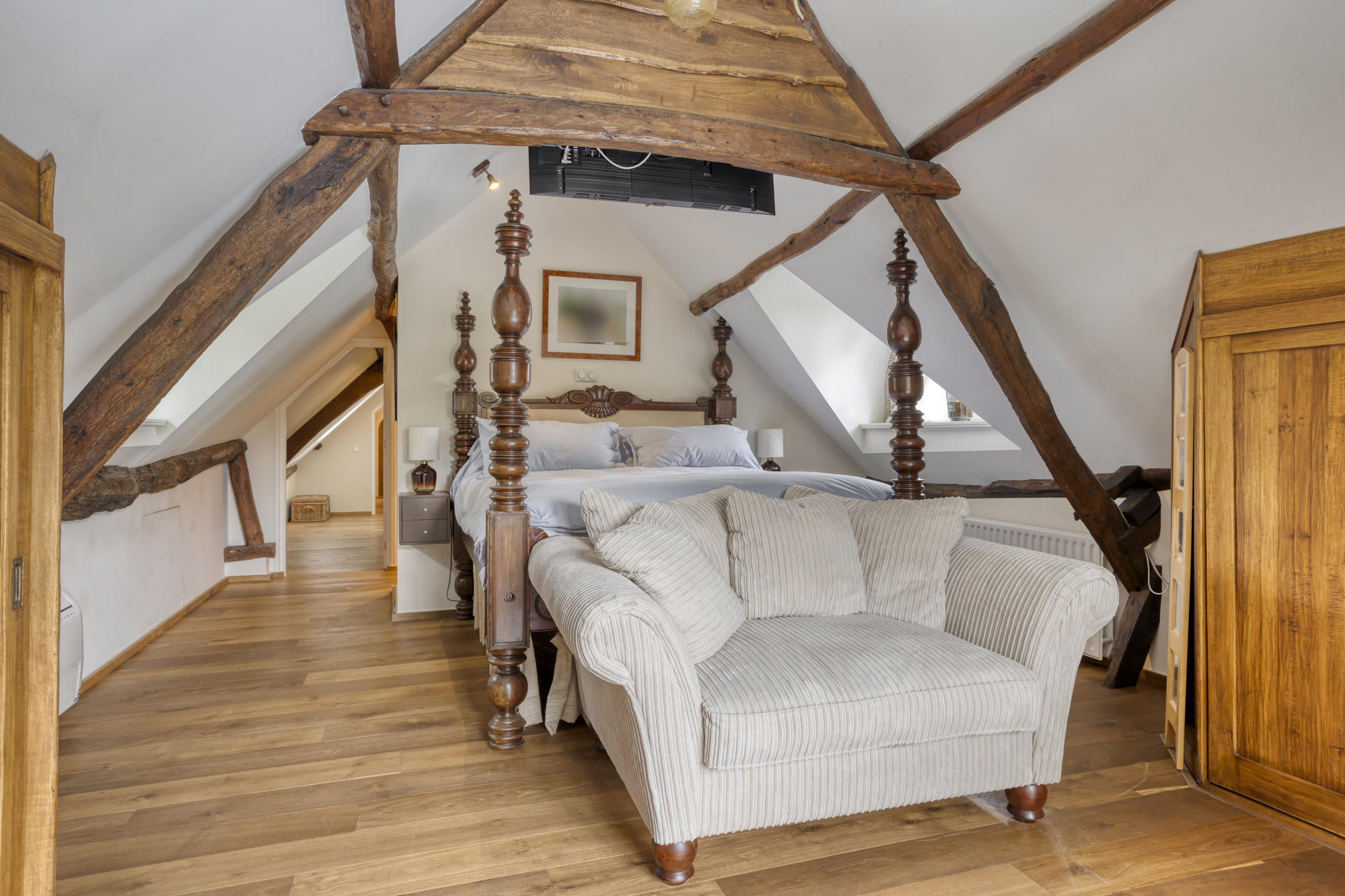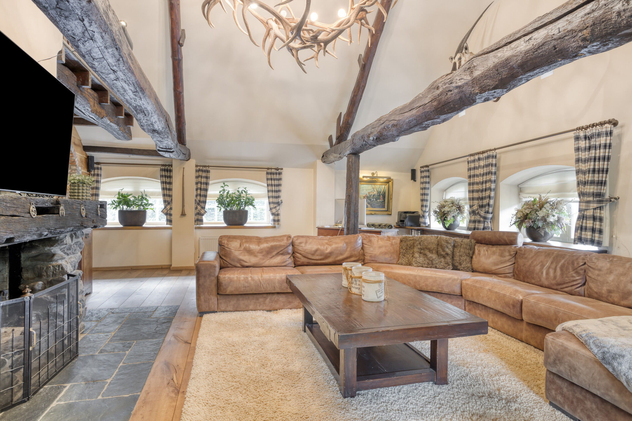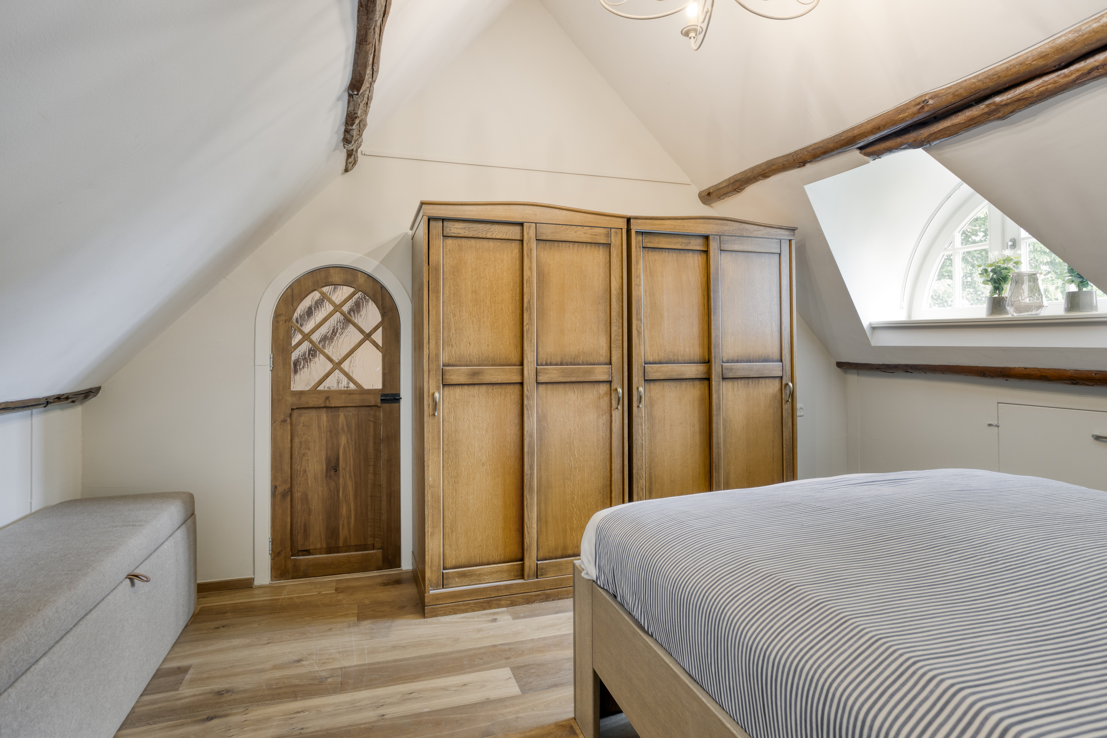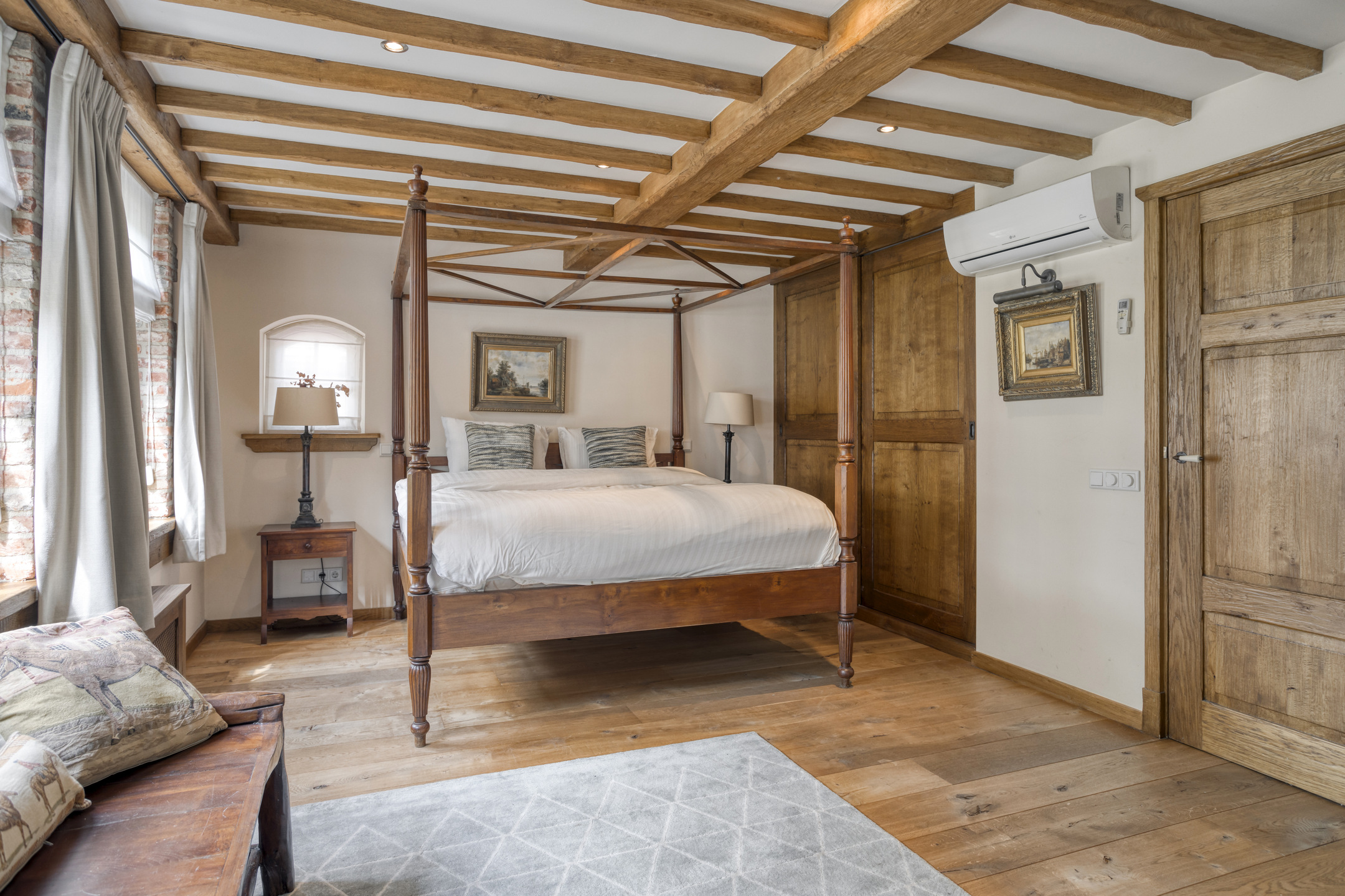 La finca rústica Riethoven ofrece una sensación de privacidad y herencia en una tranquila calle a las afueras de Riethoven, Países Bajos. Esta residencia totalmente renovada ocupa una magnífica parcela de 6.755 m², con 484 m² de espacio habitable que equilibra el carácter restaurado con el confort contemporáneo, e incluye una casa de invitados independiente y un amplio anexo. La finca se realza mediante un techo de paja y detalles cuidadosamente seleccionados, desde la entrada con suelo de mármol y las escaleras de madera tallada hasta las elegantes vigas y los amplios interiores llenos de luz.