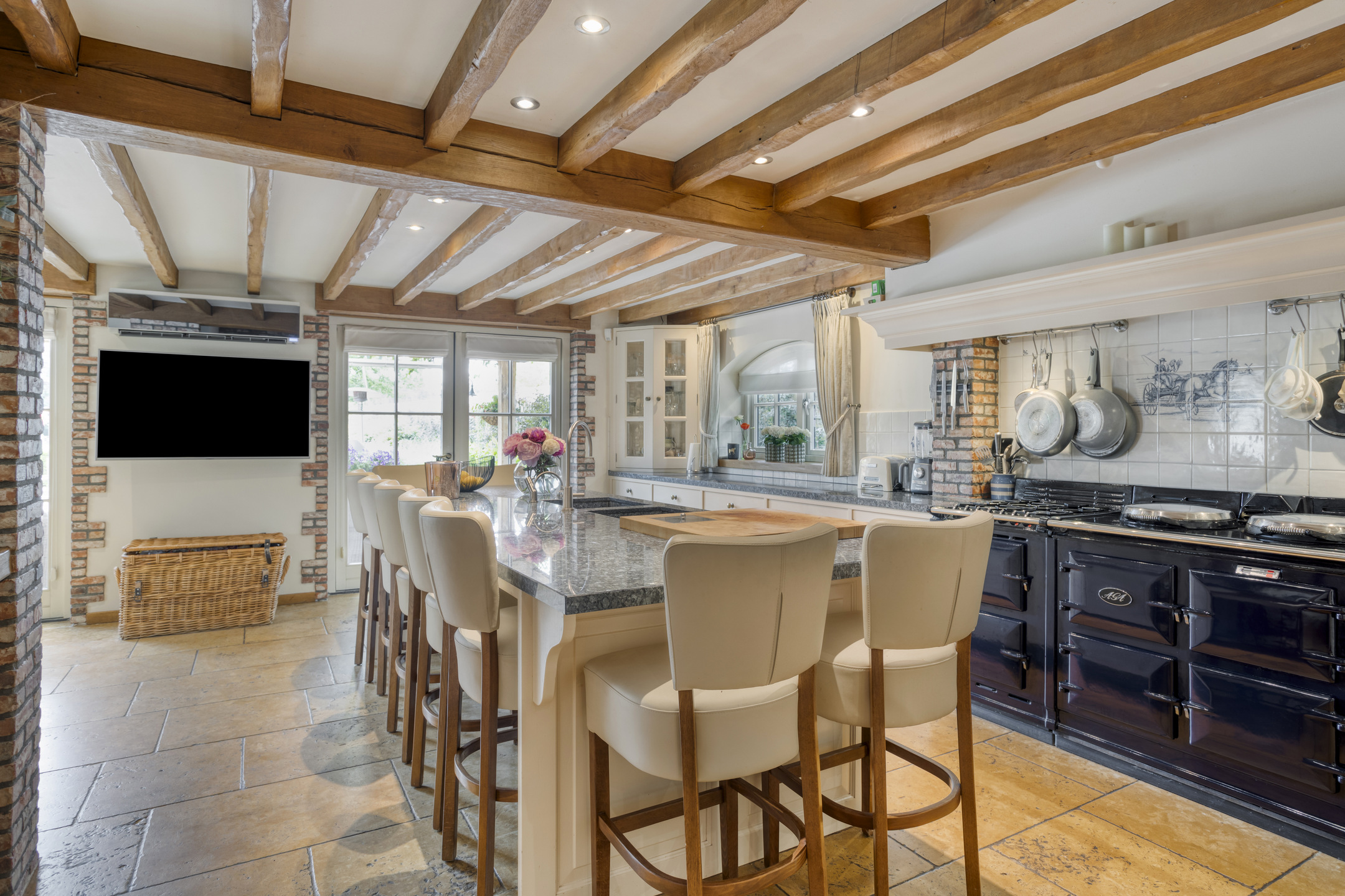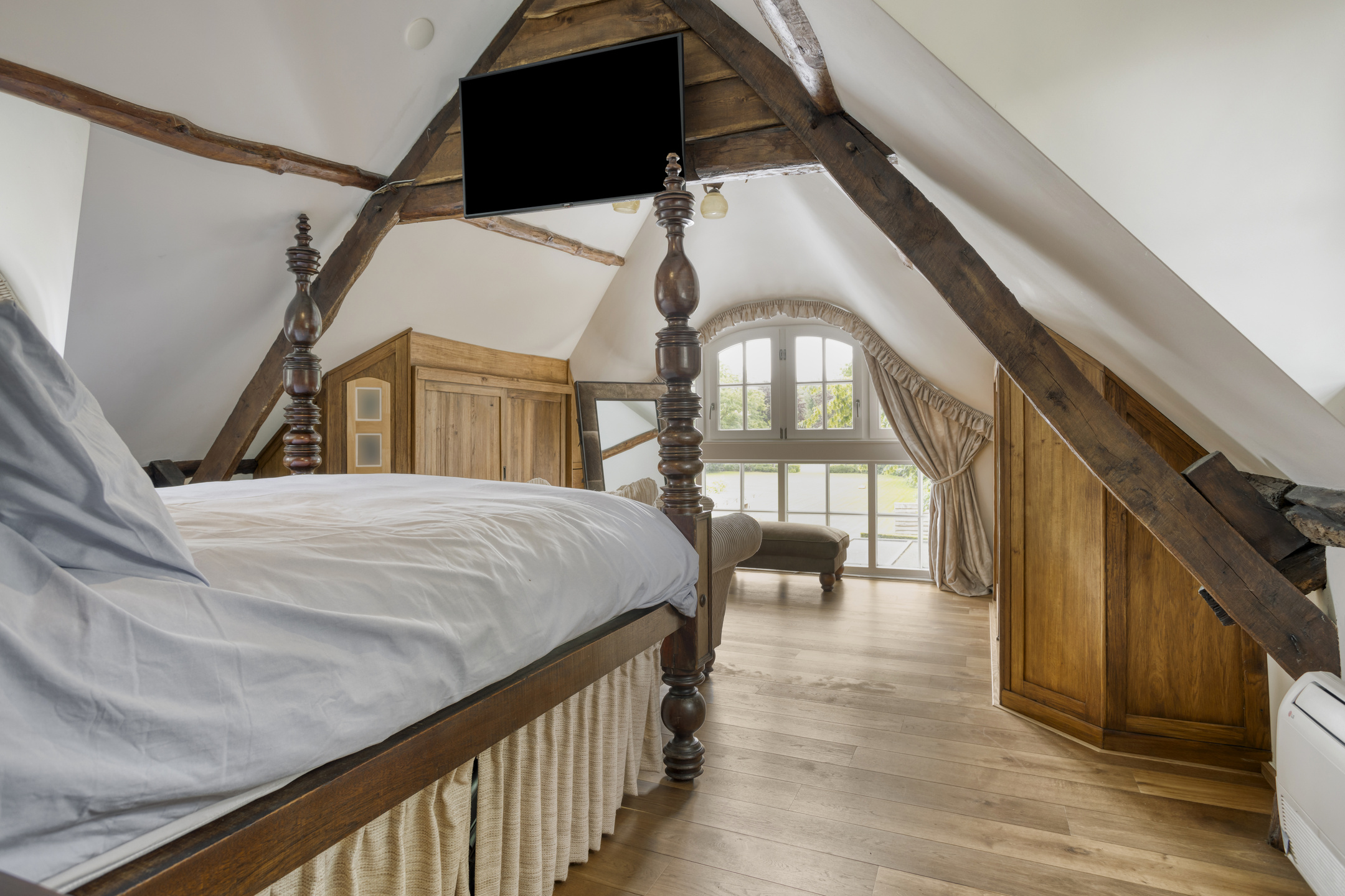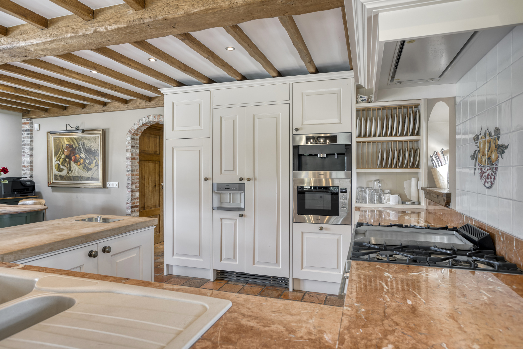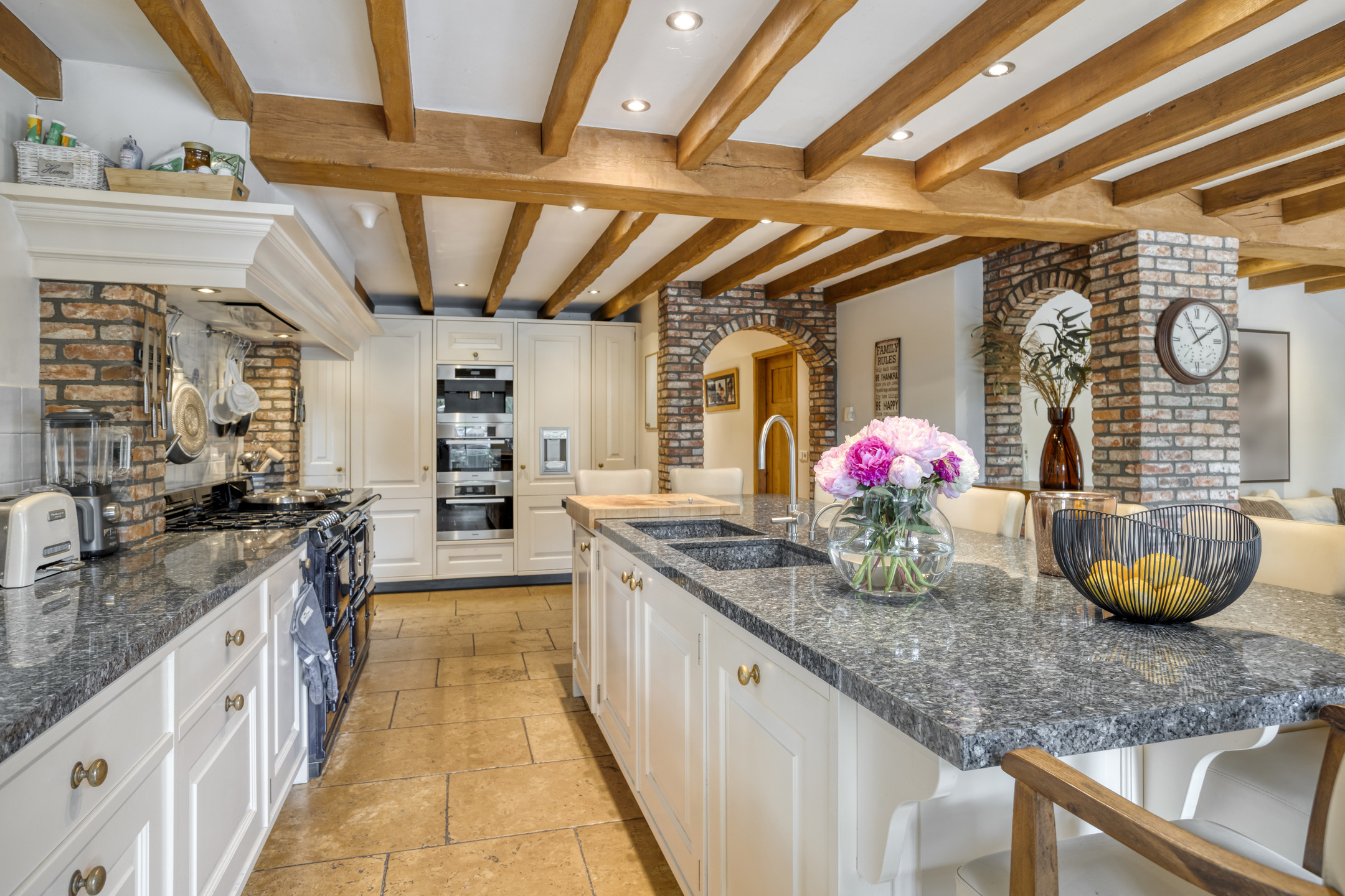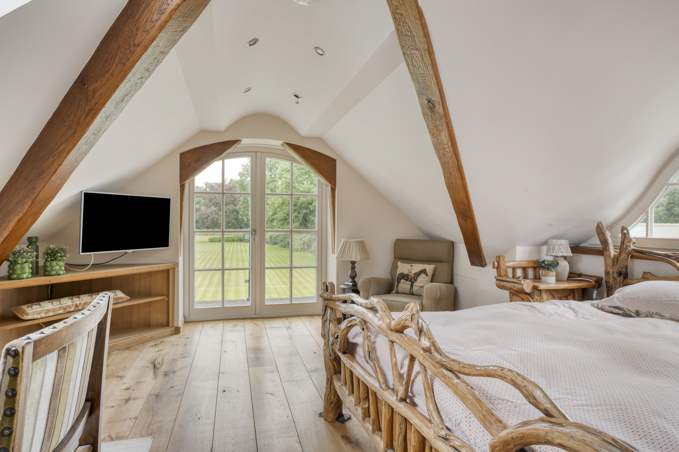 La finca rústica Riethoven ofrece una sensación de privacidad y herencia en una tranquila calle a las afueras de Riethoven, Países Bajos. Esta residencia totalmente renovada ocupa una magnífica parcela de 6.755 m², con 484 m² de espacio habitable que equilibra el carácter restaurado con el confort contemporáneo, e incluye una casa de invitados independiente y un amplio anexo. La finca se realza mediante un techo de paja y detalles cuidadosamente seleccionados, desde la entrada con suelo de mármol y las escaleras de madera tallada hasta las elegantes vigas y los amplios interiores llenos de luz.