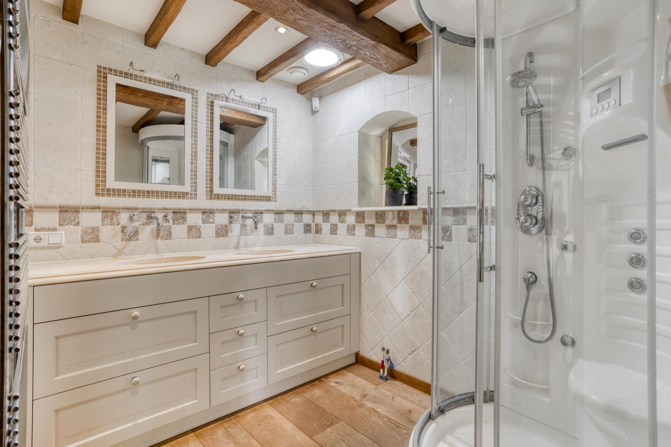 La casa principal consta de un acogedor salón con chimenea de leña, un refinado comedor, una amplia cocina con superficies de mármol y una isla destacada, una bodega, cuatro dormitorios tranquilos y dos baños revestidos en mármol. El aire acondicionado, la calefacción por suelo radiante parcial y el sistema de alarma aumentan el confort y la seguridad. La casa de invitados, con techo de paja y su propia terraza, ofrece dos dormitorios adicionales y dos baños, proporcionando autonomía y comodidad a los visitantes o la familia extendida.