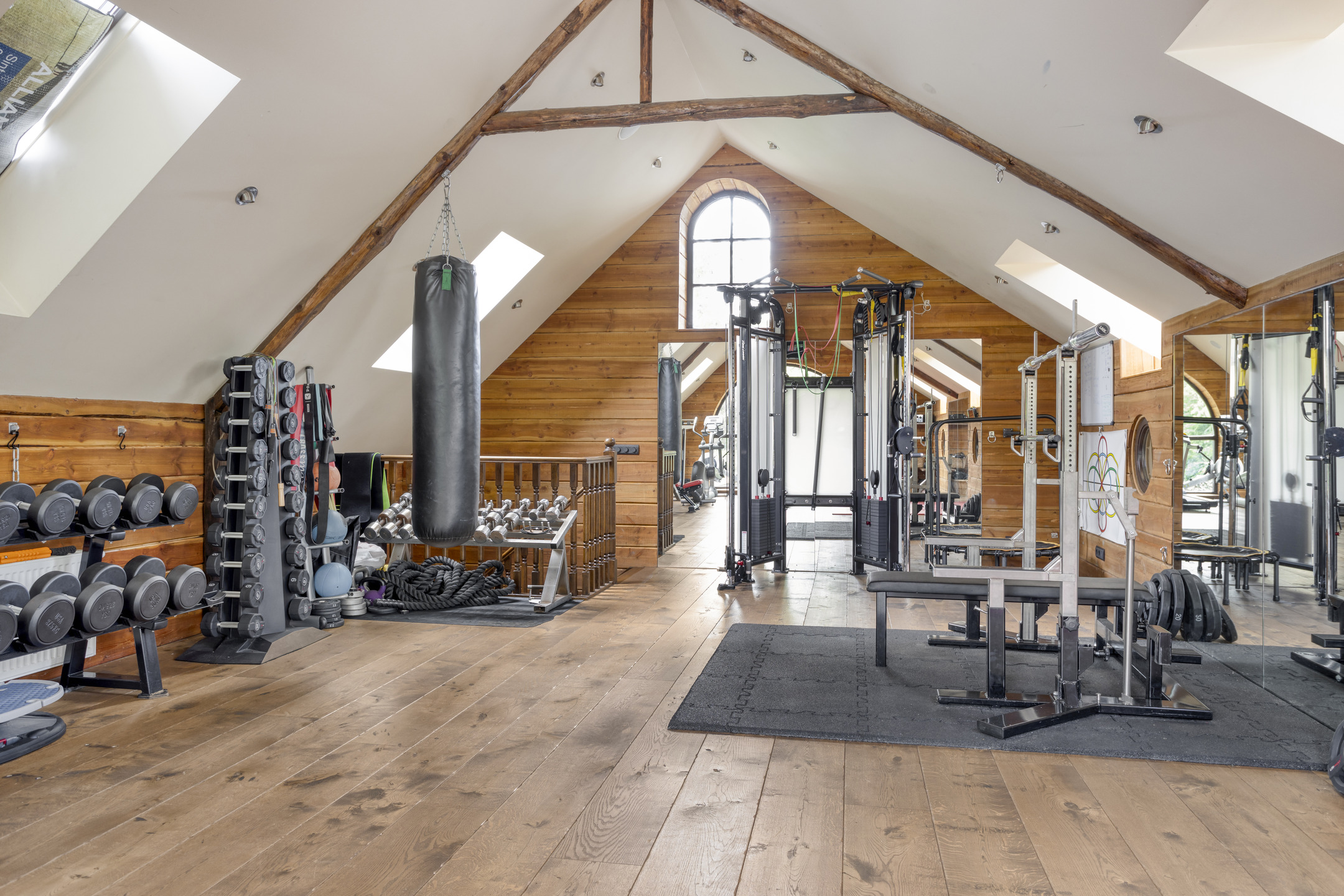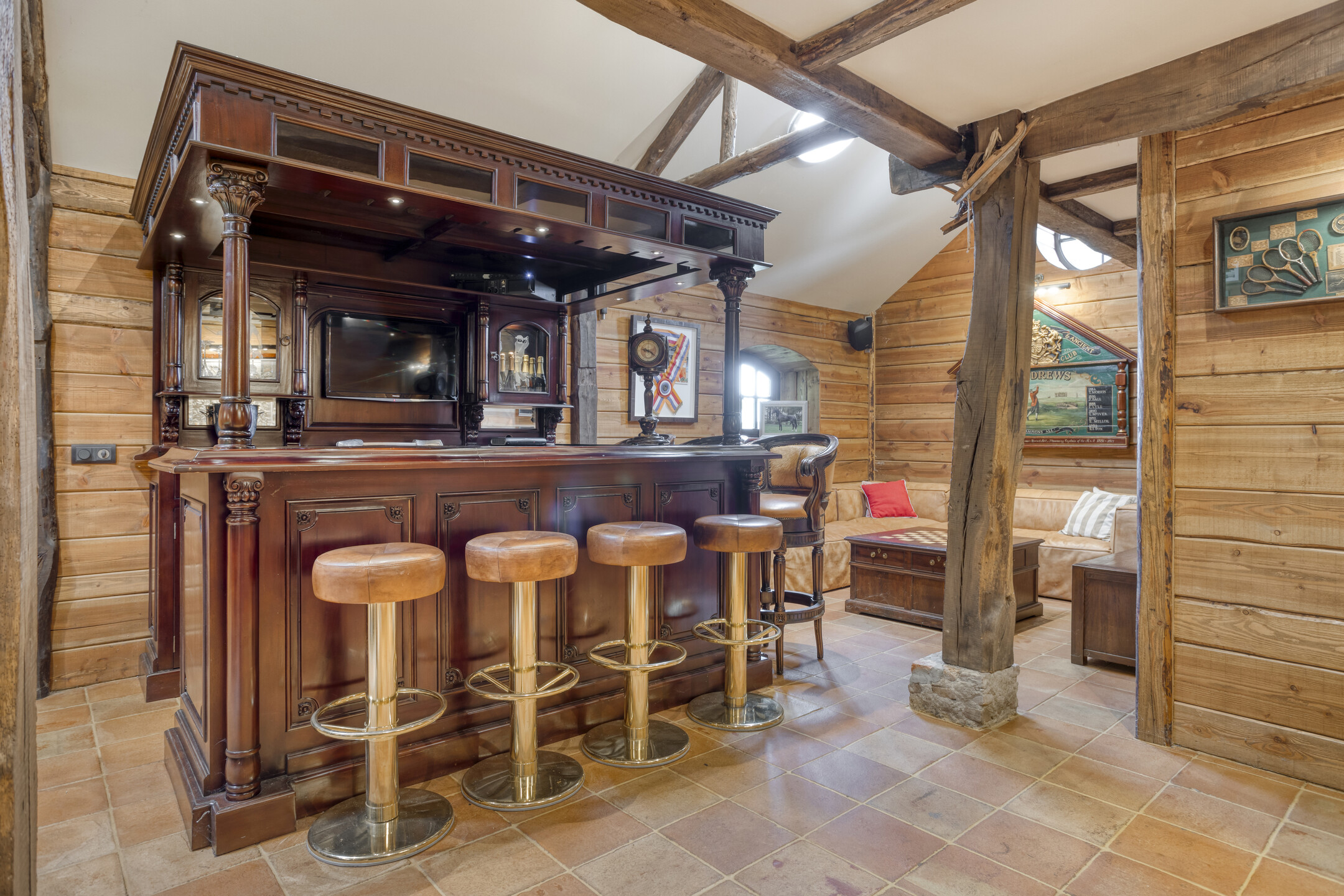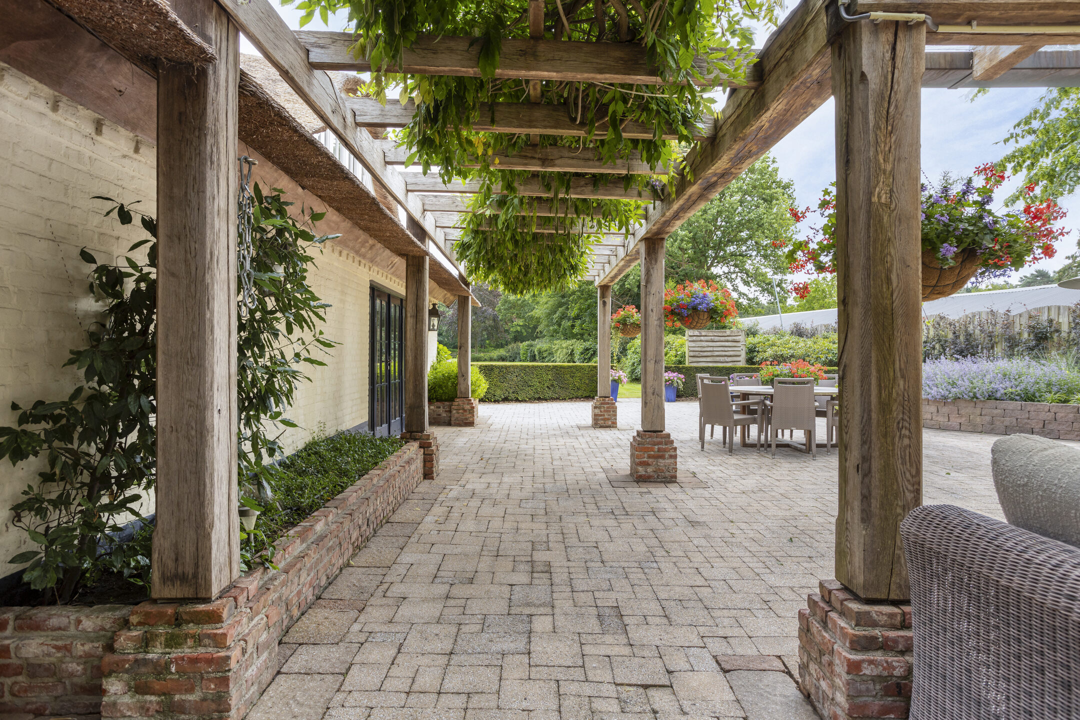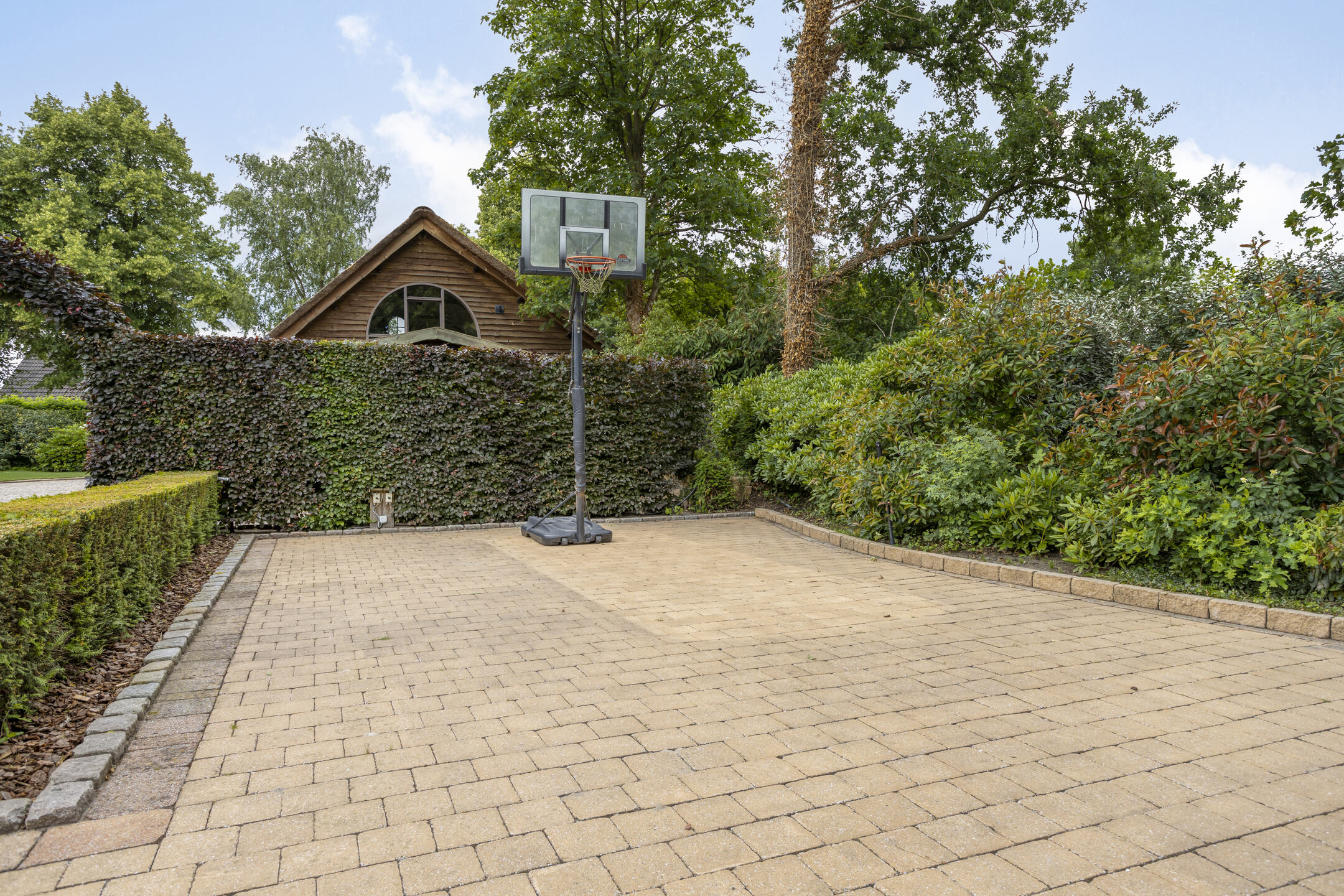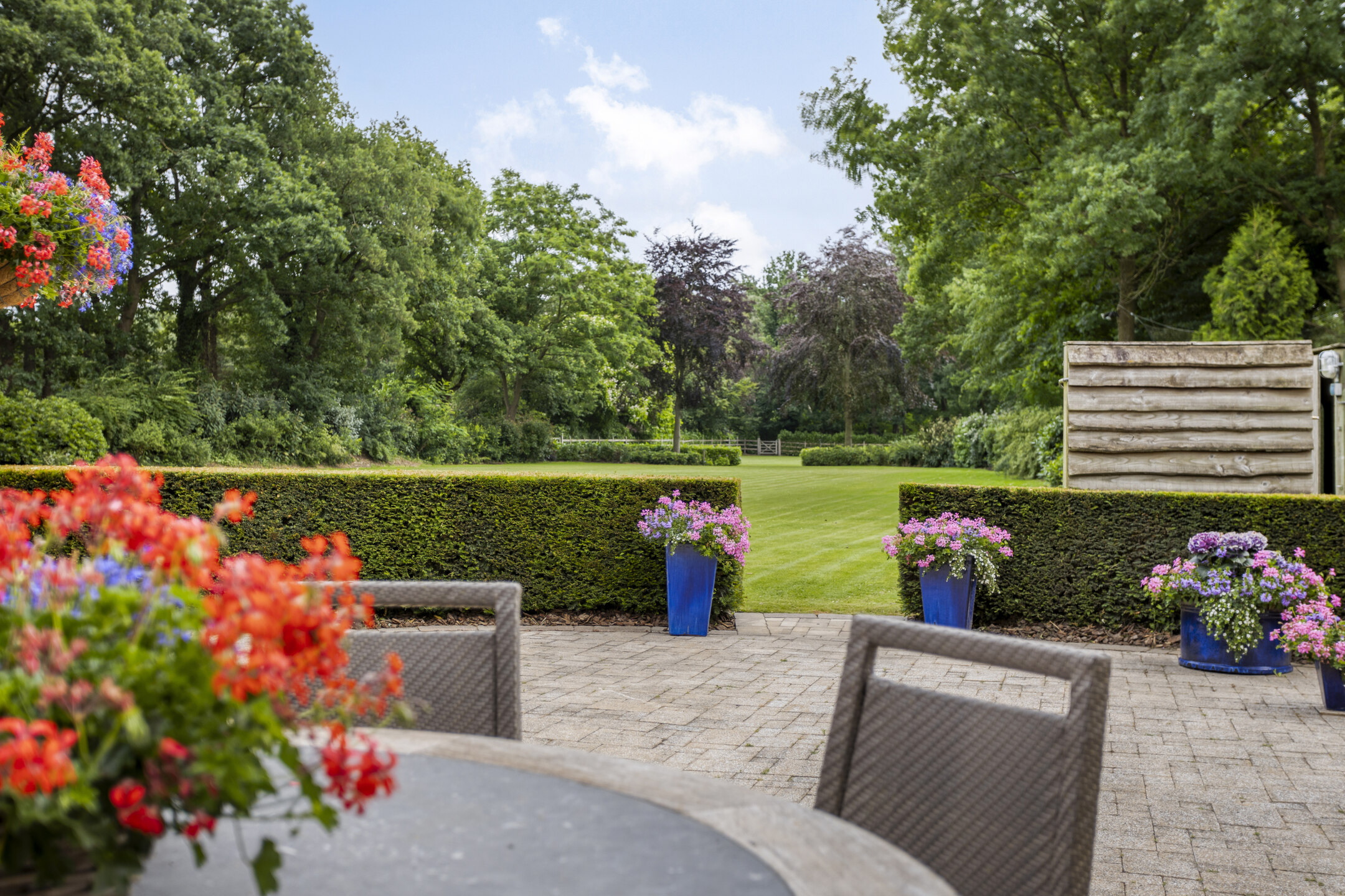 El anexo, antiguamente un garaje, alberga un gimnasio y una sala de relajación, intensificando la sensación de retiro. La propiedad también cuenta con una cochera para varios vehículos con punto de carga, una discreta cancha de baloncesto y terrenos consolidados, ajardinados con césped, terrazas y abundante vegetación. El jardín, de estilo parque orientado al este, garantiza privacidad permanente, enmarcado por árboles y cielos abiertos. Las reservas naturales y las rutas ciclistas se encuentran muy cerca, mientras que los servicios dinámicos de Eersel y la estratégica conexión con Eindhoven, el Campus de Alta Tecnología y la A67 sitúan la vida urbana y el acceso global al alcance de la mano.