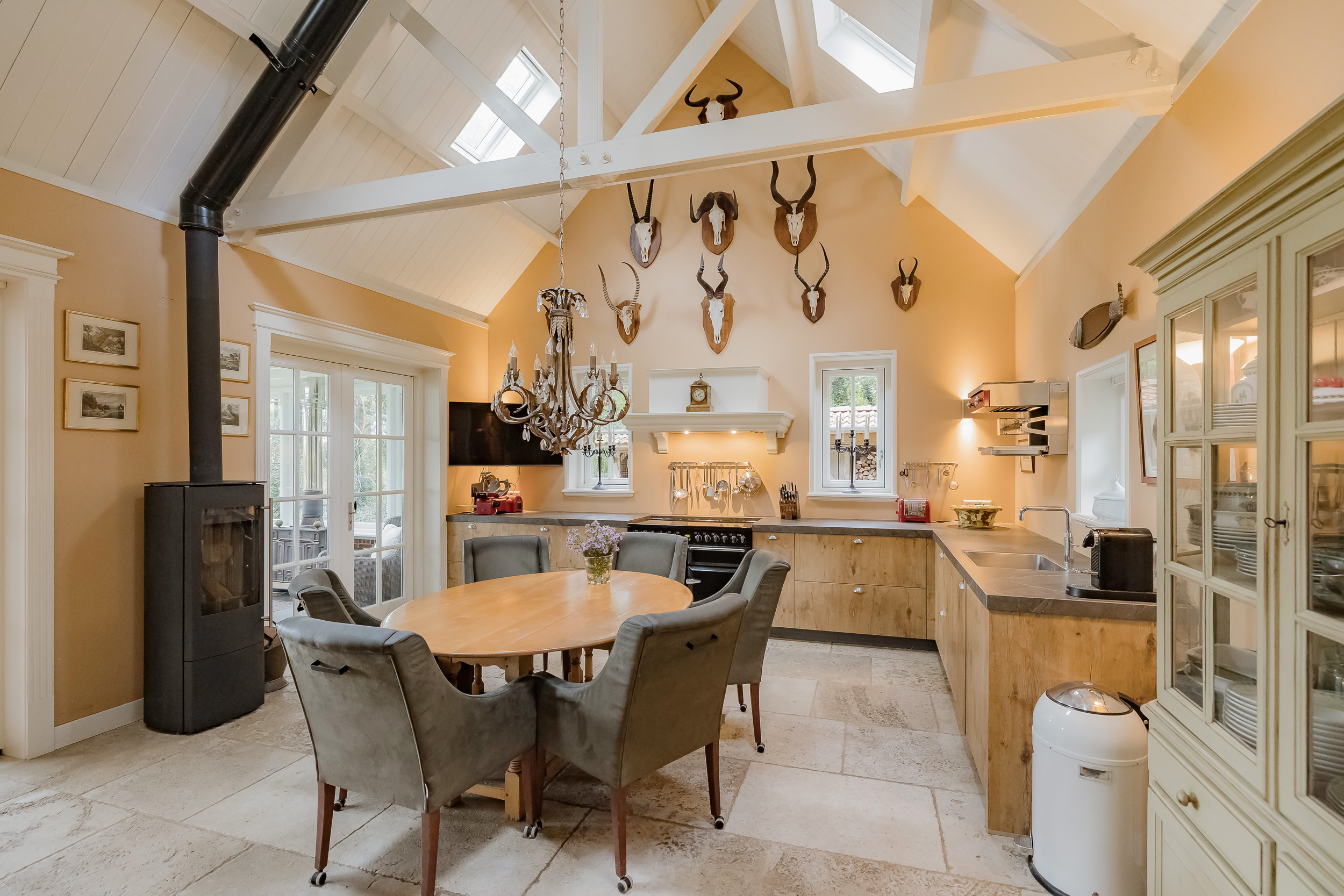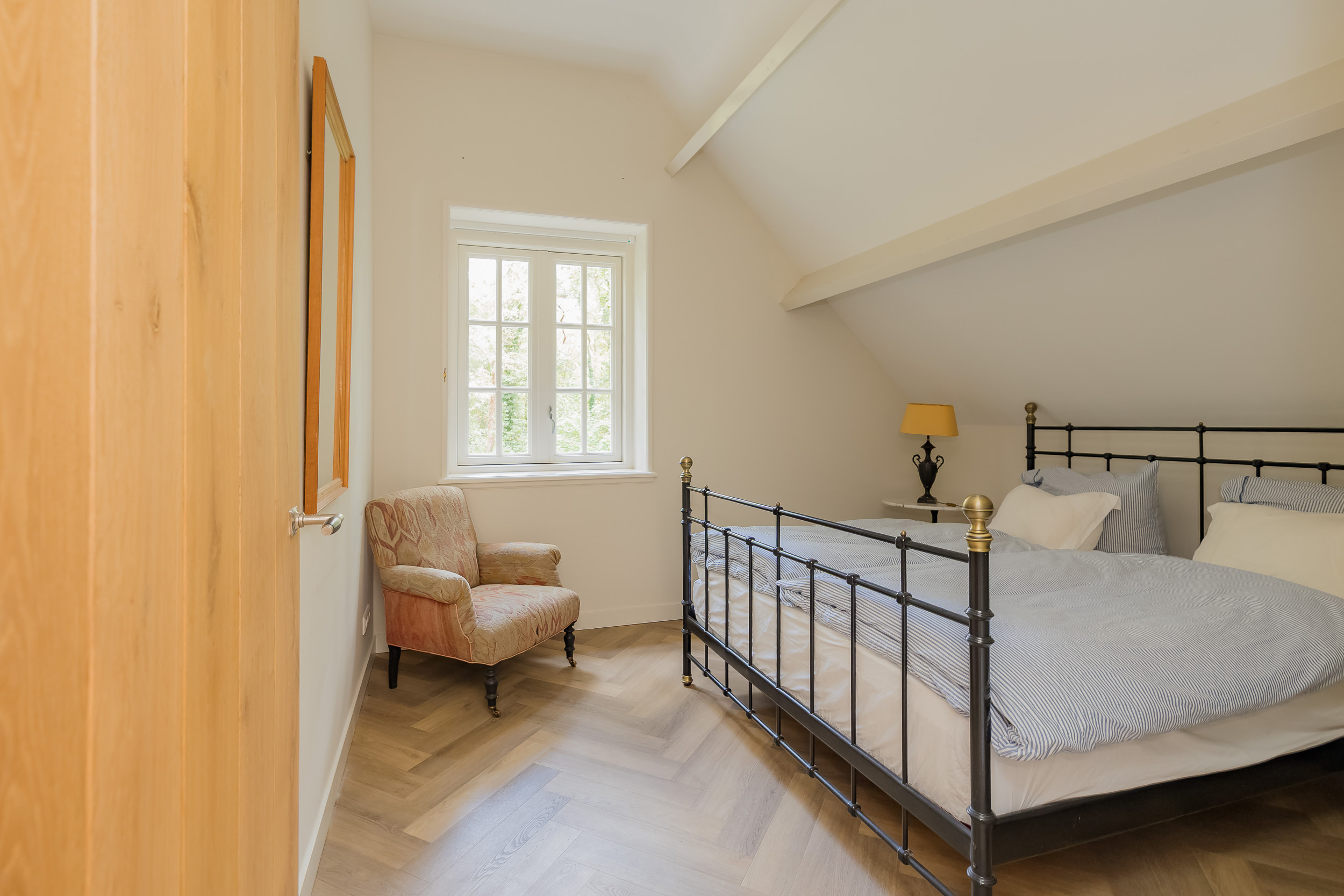 El ritmo espacial es generoso pero equilibrado. Un impresionante vestíbulo con escalera y ascensor permite el acceso a todos los rincones del hogar. El salón, con chimenea y suelo radiante, se abre a una veranda que da a un bosque maduro, estableciendo un diálogo armónico entre el interior y el paisaje. La acogedora cocina cuenta con una cocina de inducción AGA, techos altos, entreplanta y acceso directo al jardín. La planta superior se llena de luz natural gracias a lucernarios y ventanas abuhardilladas; la suite principal incluye vestidor y un lujoso cuarto de baño. Dos dormitorios adicionales y un segundo baño ofrecen comodidad a familiares o invitados.