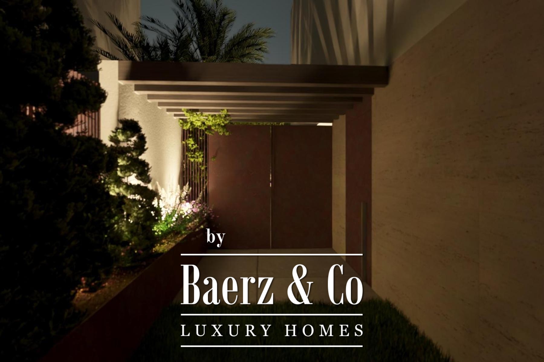 La planta baja da la bienvenida con un vestíbulo de entrada, una zona de estar, cocina y comedor, y una escalera interior conduce a las áreas privadas superiores. La primera planta está compuesta por un dormitorio principal, dos habitaciones infantiles y dos baños, garantizando privacidad y un flujo natural para la vida familiar. La segunda planta se extiende hacia el exterior, ofreciendo una terraza cubierta y descubierta, piscina y zonas técnicas. Paredes de cristal sin marcos, parquet de roble en espiga y barandillas de acero Corten proyectan una sensación de calidad contenida en todos los espacios.