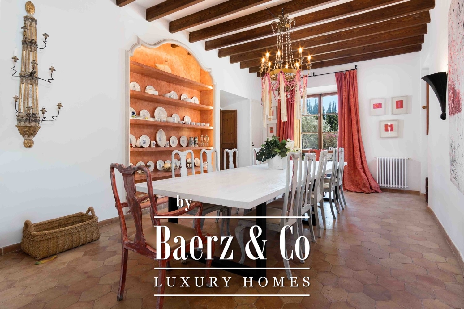 Cette propriété aristocratique à Alaró est imprégnée d'histoire, offrant un bien patrimonial rare au cœur de l’un des quartiers les plus emblématiques de Majorque. Protégée par des murs de pierre, cette ancienne demeure noble de 1 314 m² se niche au sein de 4 447 m² de jardins séculaires, invitant ceux qui recherchent discrétion et authenticité du patrimoine européen. Le domaine comprend la résidence principale aux plafonds vertigineux et finitions artisanales, ainsi que deux villas d’invités indépendantes—l’une avec quatre chambres, l’autre avec cinq—offrant au total onze chambres et dix salles de bains. Chaque espace, enveloppé de terrasses baignées de soleil, de poutres apparentes et d’une élégance feutrée, rend hommage au passé aristocratique tout en ouvrant la voie à de nouvelles inspirations.