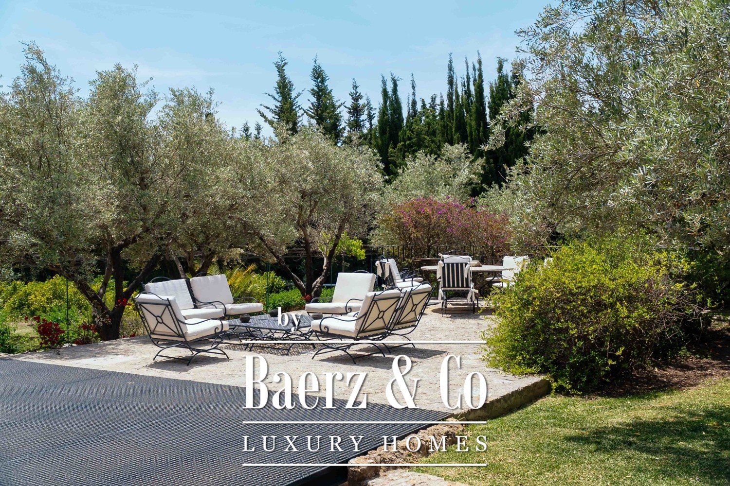 À l’extérieur, une piscine majestueuse s’inscrit dans des jardins méditerranéens luxuriants, évoquant une grandeur discrète. Le pavillon barbecue pour douze personnes et les multiples espaces lounge dessinent un art de vivre tourné vers la convivialité et la contemplation. L’allée pittoresque accueille plus de six véhicules, et la propriété offre de généreux espaces de rangement ainsi que des surfaces adaptables pour recevoir ou réaliser des projets créatifs, qu’il s’agisse d’un atelier privé, d’un espace bien-être ou d’une transformation sur mesure. La climatisation assure un confort absolu en toute saison.