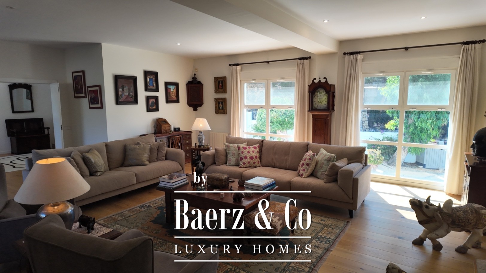 Le cœur de la villa se compose d’un salon de 90 m² doté d’une cheminée et encadré de vastes baies vitrées s’ouvrant sur une terrasse avec vues spectaculaires. La cuisine design, équipée d’appareils haut de gamme, s’accompagne d’un généreux espace repas pour vos réceptions. Quatre chambres et trois salles de bains assurent espace et intimité, tandis que la suite parentale bénéficie d’un accès direct à une large terrasse vitrée et à une vue dégagée.