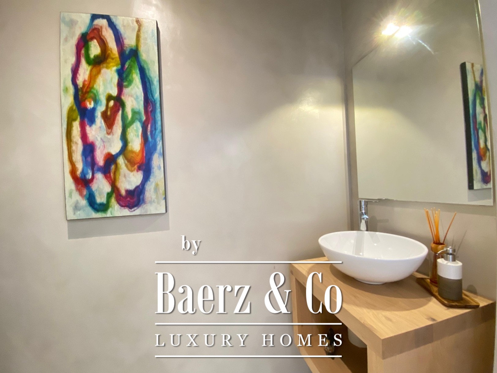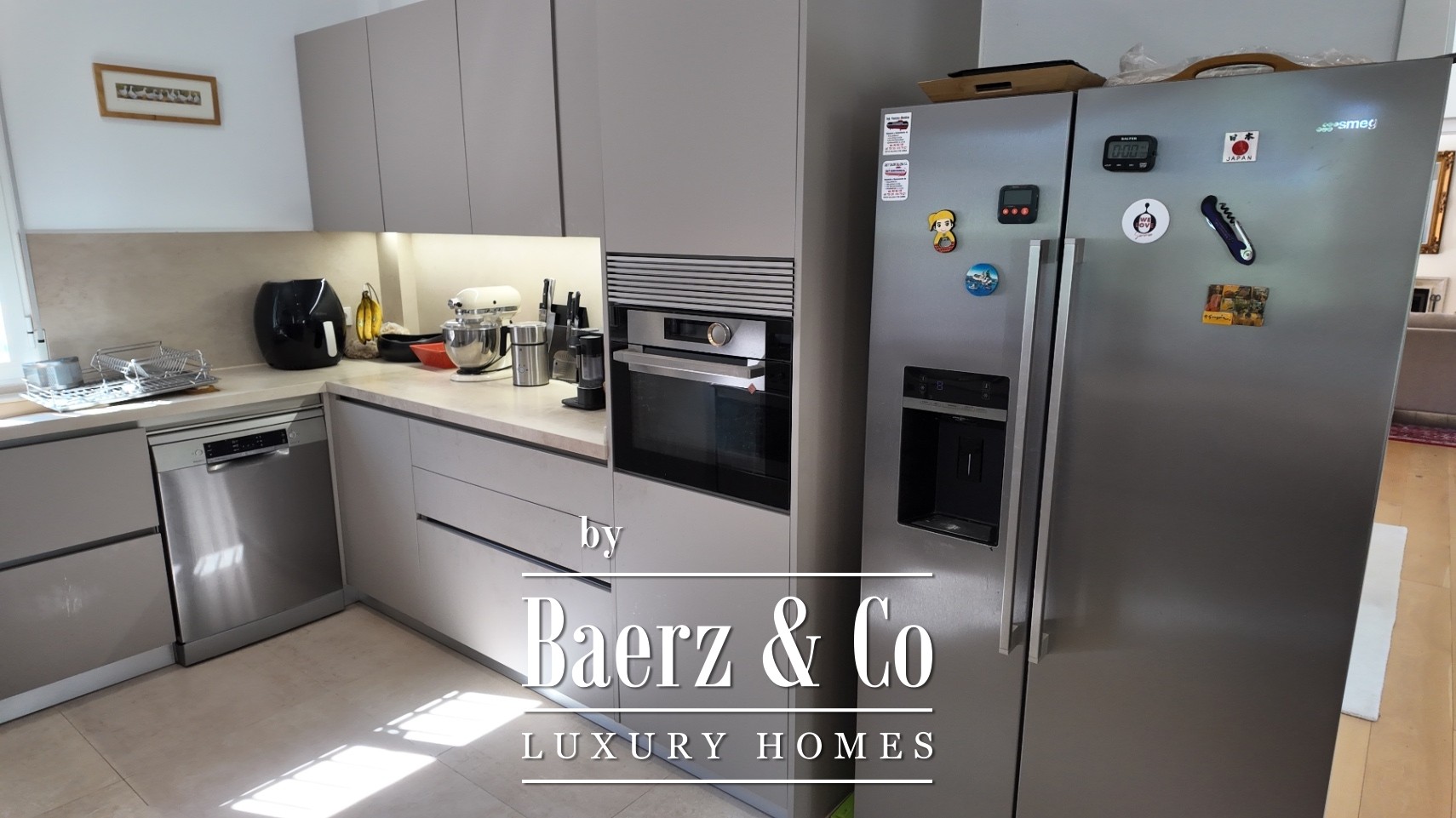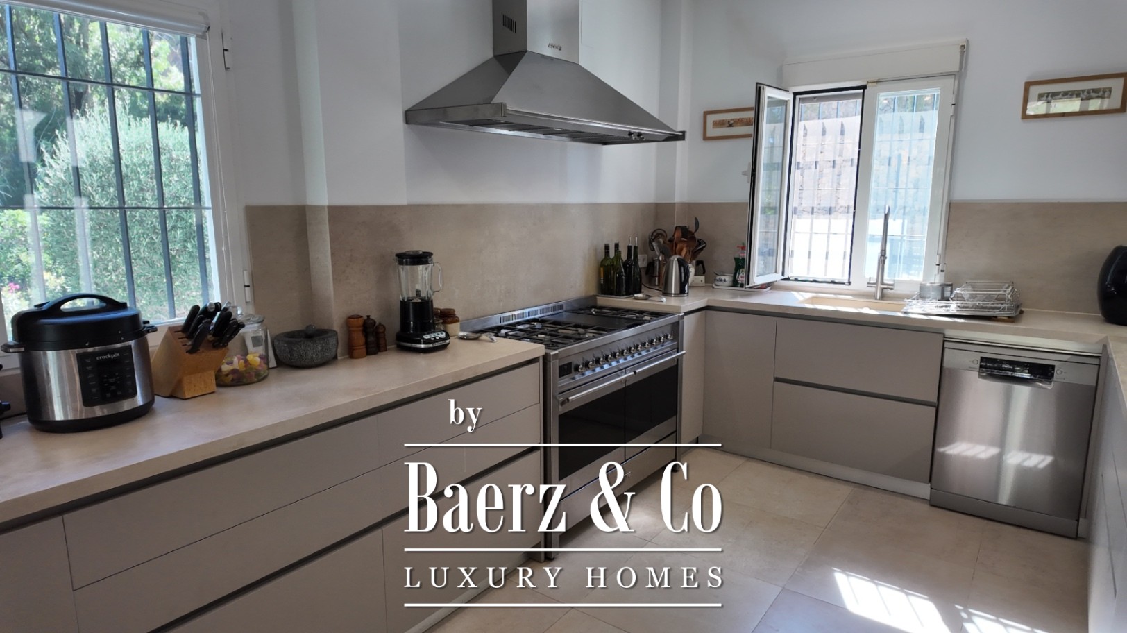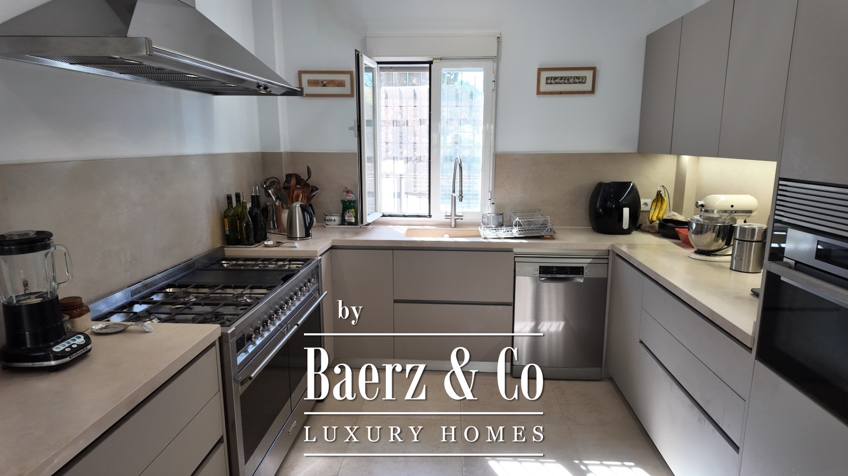 Les jardins paysagers invitent à la détente avec une piscine d’eau salée pré-équipée pour le chauffage, de vastes terrasses et une cuisine d’été entièrement équipée. Un double garage, la climatisation, un chauffage central au gaz, des panneaux solaires avec batteries, du parquet en chêne scandinave, des dispositifs de sécurité et des systèmes d’adoucissement d’eau contribuent au confort et à l’efficacité de la villa.