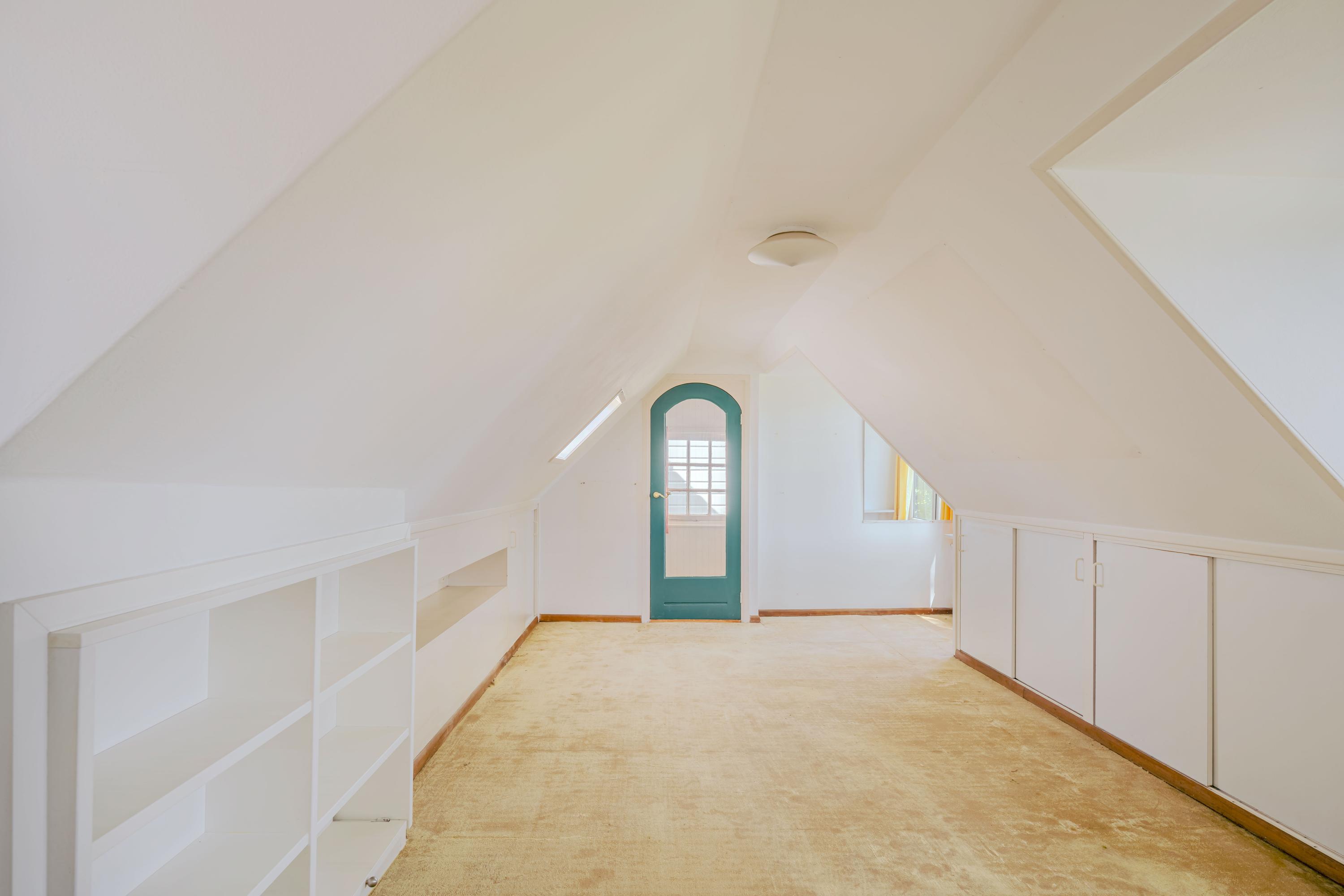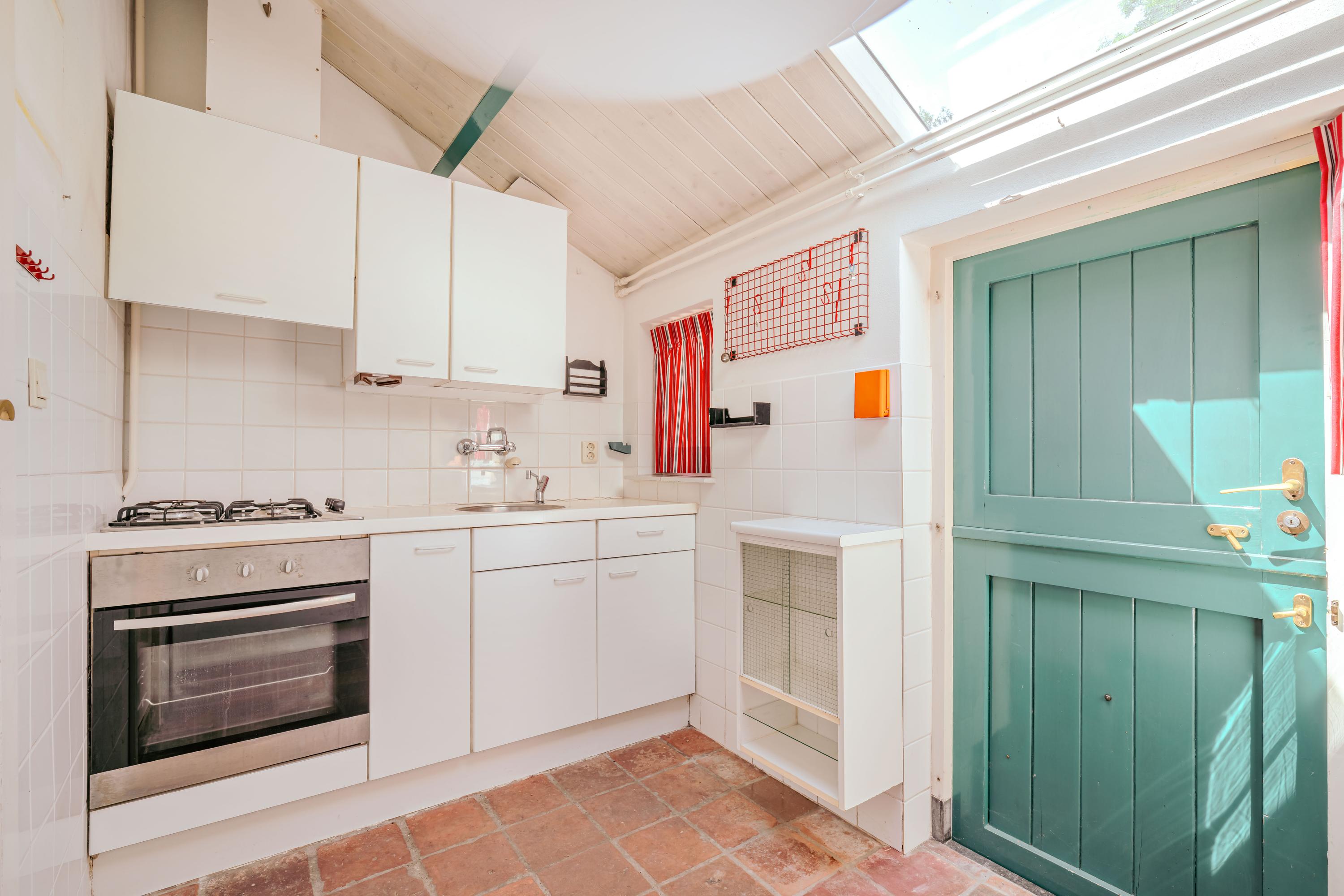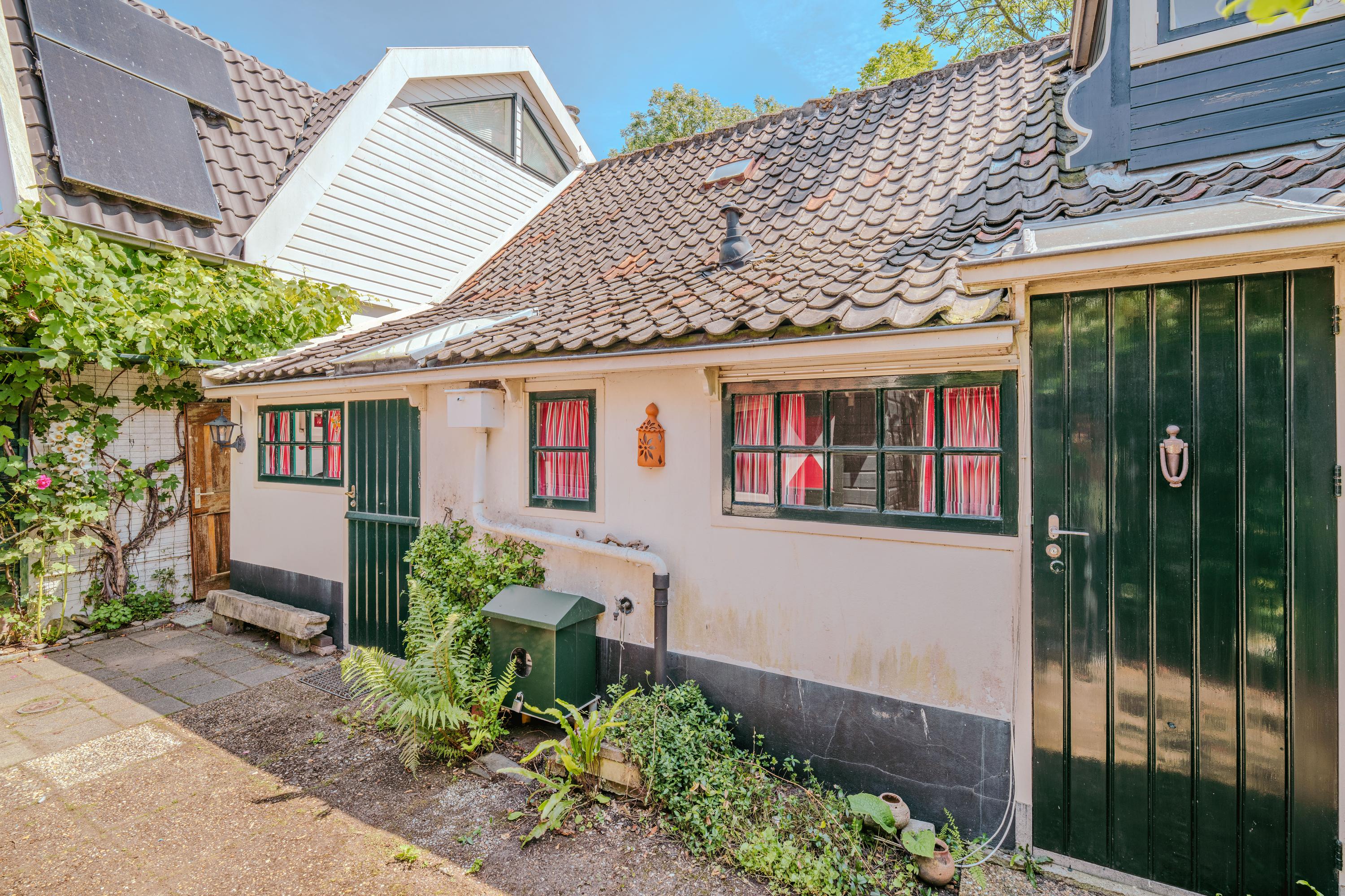 En arrivant par un chemin discret, l’entrée ouvre sur une cour intime entourée d’arbres établis et de deux dépendances polyvalentes. L’une dispose de l’électricité, de l’eau, d’une kitchenette simple et d’un WC à l’étage, idéale pour accueillir des invités, servir d’atelier ou de studio privé. La seconde dépendance, face à un paysage verdoyant, offre un espace de rangement supplémentaire ou des possibilités créatives. À l’intérieur de la résidence principale, le jeu de lumière des fenêtres de toit et les finitions d’origine insufflent une atmosphère chaleureuse et inspirante. Le séjour et la salle à manger, avec vue sur le jardin, invitent au calme, tandis qu’une cheminée structure l’espace. À l’étage, une chambre occupe l’ensemble du niveau, offrant des vues panoramiques sur l’Amstel et des alcôves fonctionnelles sous les combles.