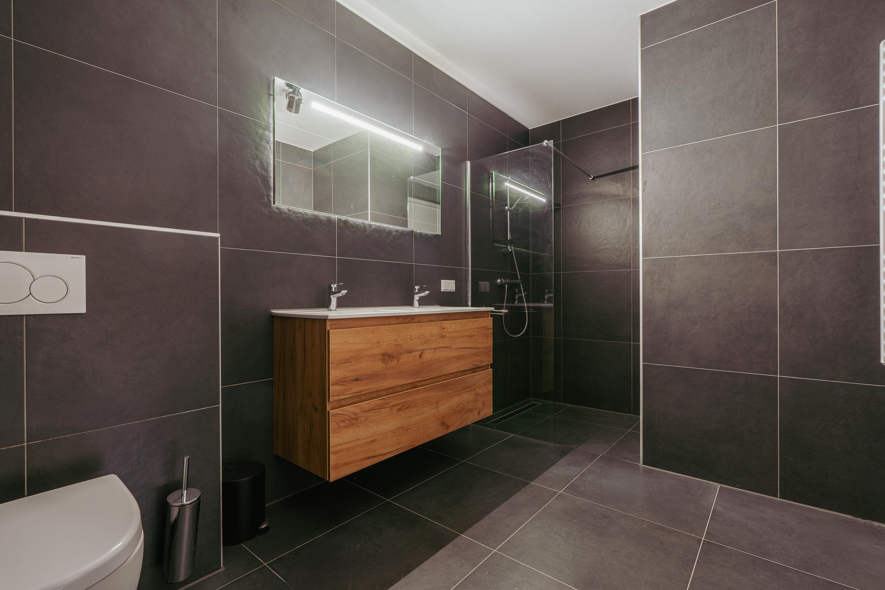 Chaque détail, du vitrage HR++ au chauffage par le sol intégral, jusqu’à la ventilation mécanique et les panneaux solaires, témoigne d’une réelle attention à la durabilité. La résidence comprend deux espaces de stockage intérieurs et bénéficie d’une isolation complète pour plus de tranquillité et d’efficacité. Des places de parking sont proposées à l’achat dans le garage sécurisé en sous-sol, au choix en format standard ou box fermé. La copropriété bénéficie d’un ascenseur, de bornes de recharge électrique et s’inspire de la sérénité du Shinrin-Yoku, ou « bain de forêt ».