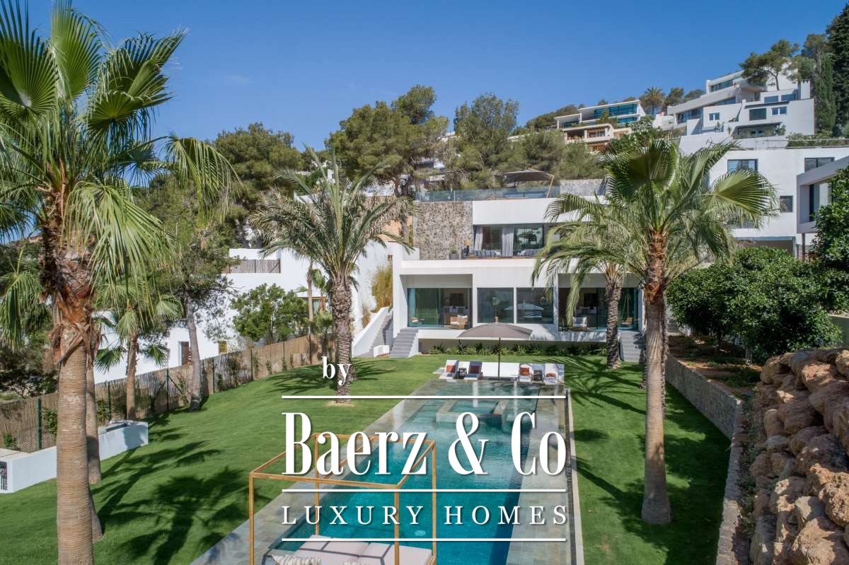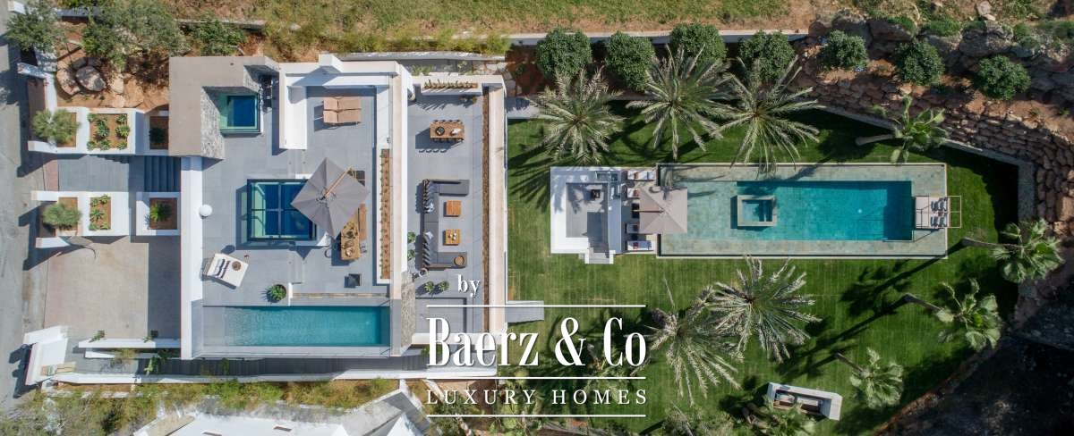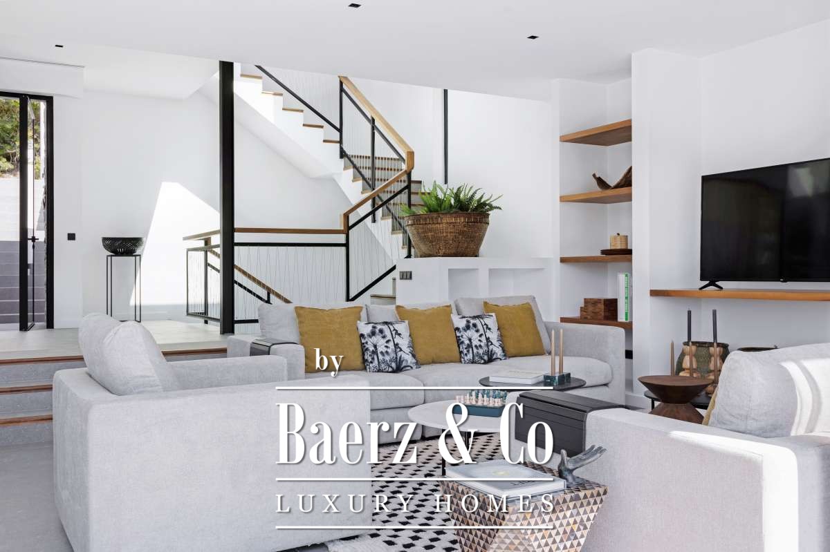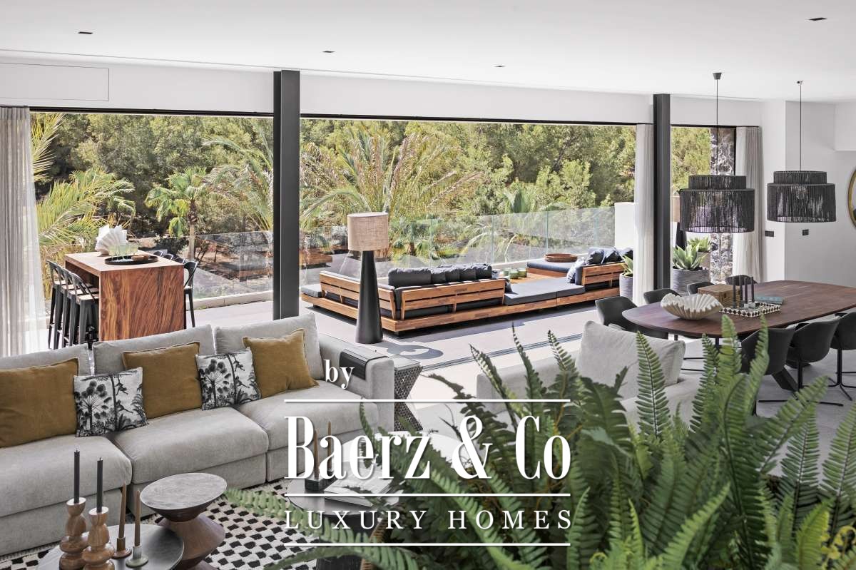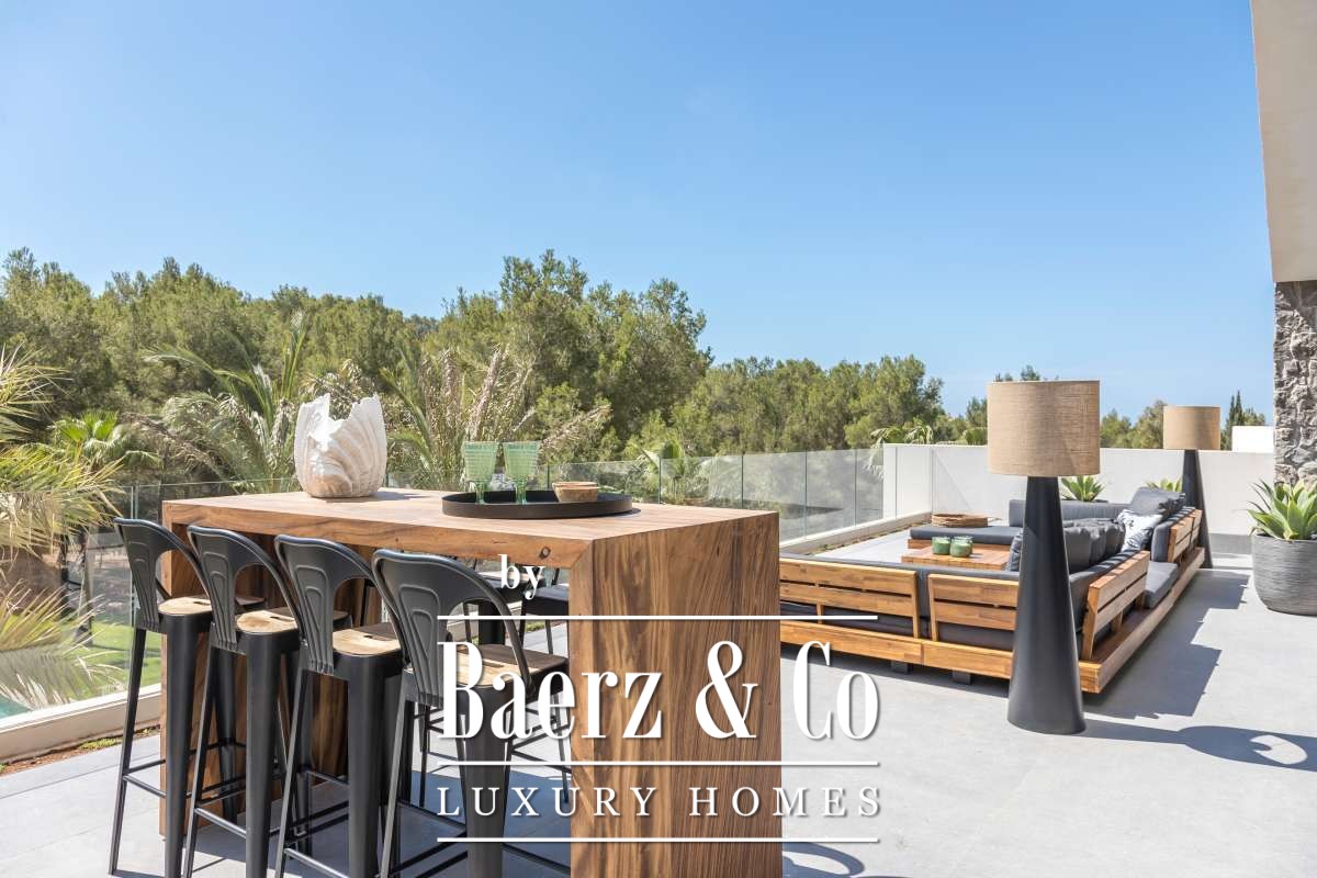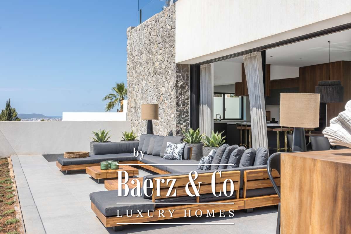 La villa moderne Can Furnet invite à un art de vivre raffiné au sein de l’un des quartiers résidentiels les plus prisés d’Ibiza. Édifiée en hauteur, cette demeure de 426 m² conçue par Blakstad offre des vues spectaculaires sur Dalt Vila. Le tout s’étend sur un terrain paisible de 1 404 m², réunissant une intimité rare et l’accès rapide à l’effervescence culturelle d’Ibiza, la marina élégante de Botafoch et la plage sablonneuse de Talamanca, chacune accessible en quelques minutes.
