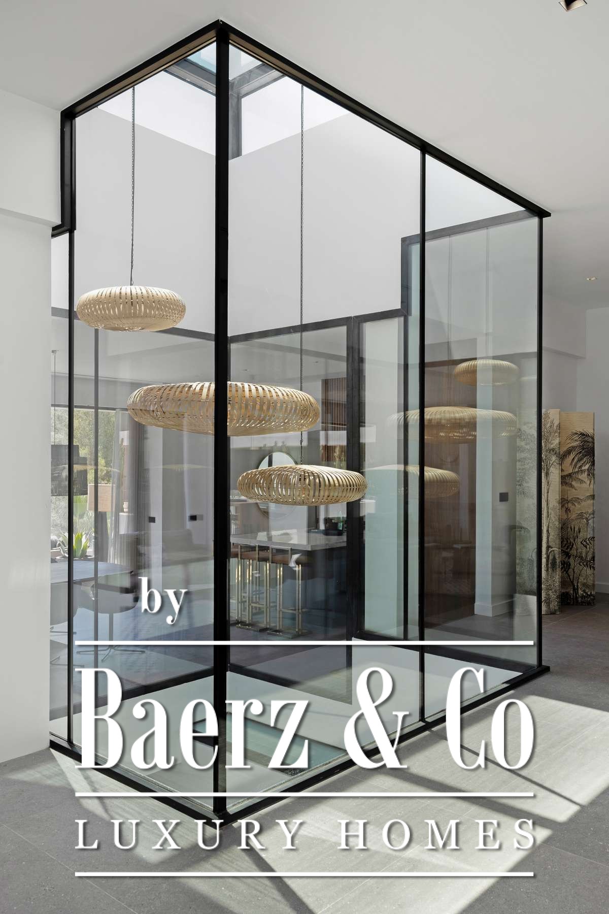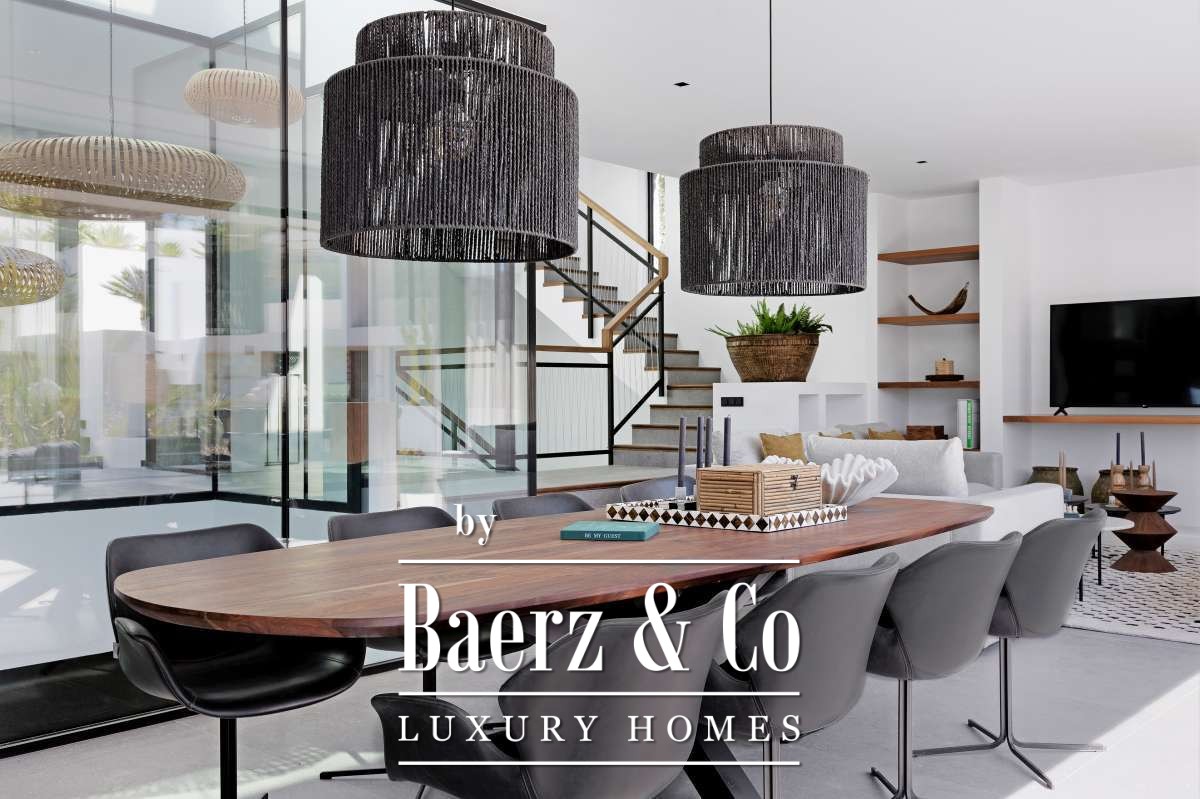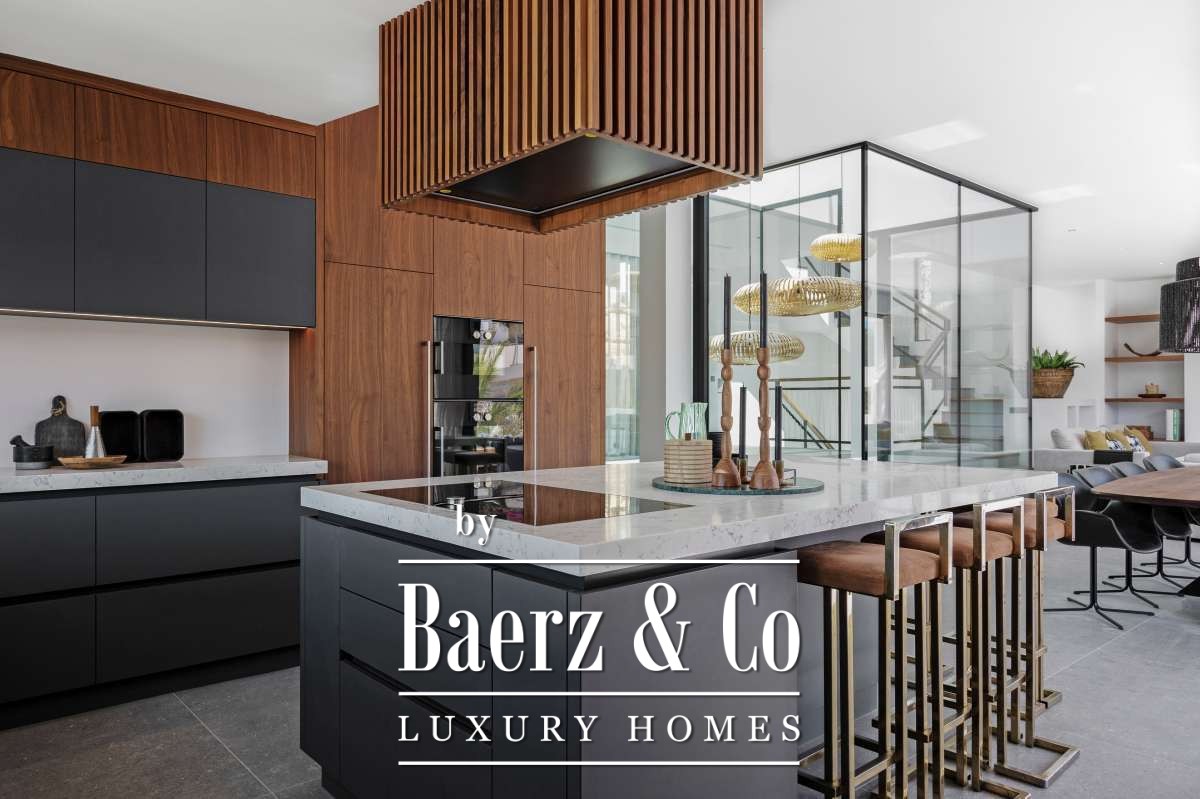 La villa associe des lignes architecturales épurées à des touches balinaises, conjuguant modernité et chaleur. Un puits de lumière vitré laisse entrer la lumière naturelle, illuminant les vastes espaces de vie et de réception où les baies vitrées pleine hauteur ouvrent sur des jardins luxuriants. La cuisine, parfaitement équipée avec bar, domotique intégrée et finitions sophistiquées, sublime le quotidien, du café du matin aux moments partagés entre amis.