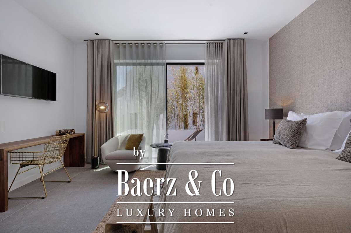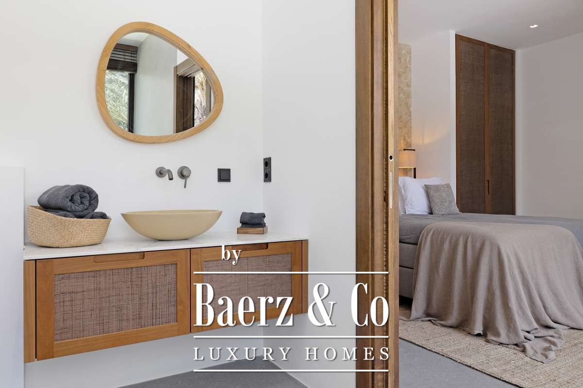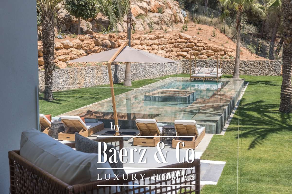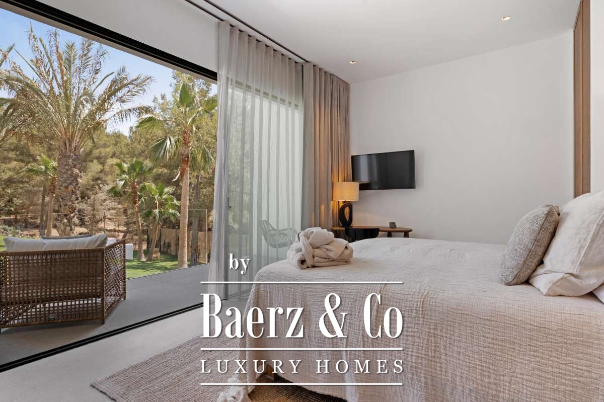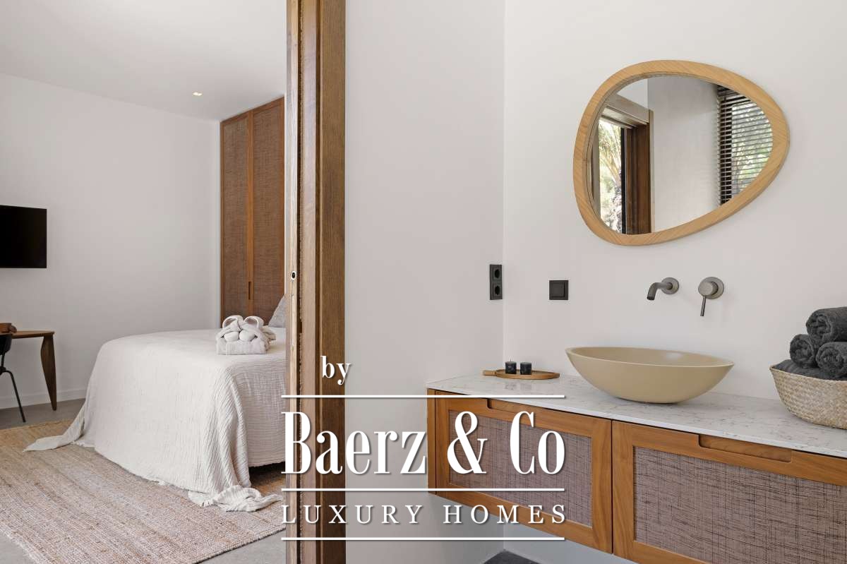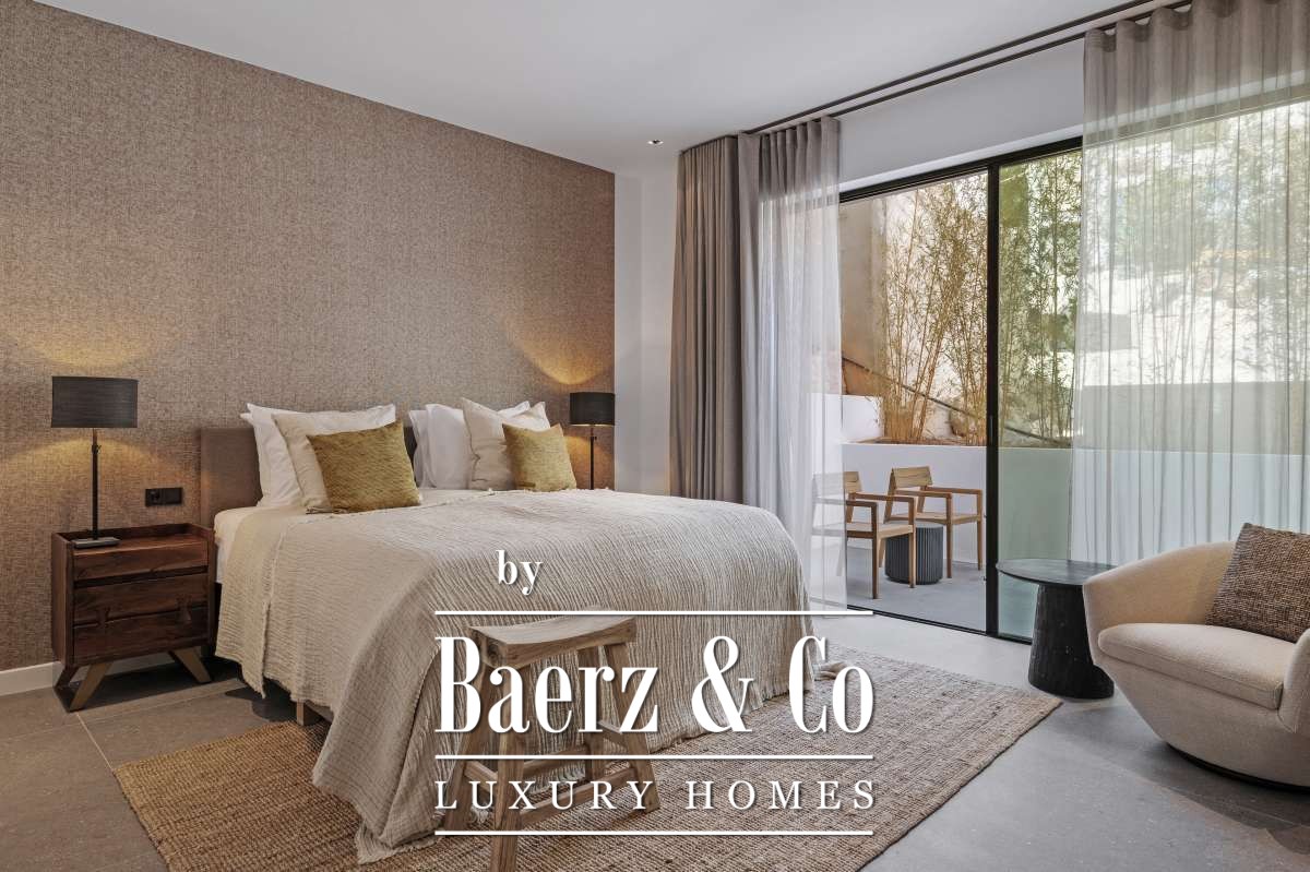 L’art de vivre en extérieur caractérise Can Furnet. La piscine principale avec jacuzzi intégré, bordée de palmiers, invite à la détente façon spa. Différentes zones de solarium, un lit balinais et des assises intégrées créent des espaces dédiés à la relaxation. Depuis la terrasse sur le toit, panoramas à couper le souffle et deuxième piscine à débordement s’offrent à vous, idéales pour des réceptions privées ou des soirées paisibles face à la silhouette de Dalt Vila. Parking, clôture sécurisée, finitions soignées et livraison clés en main entièrement meublée garantissent un confort immédiat à ceux qui recherchent une villa exclusive au cœur animé d’Ibiza.