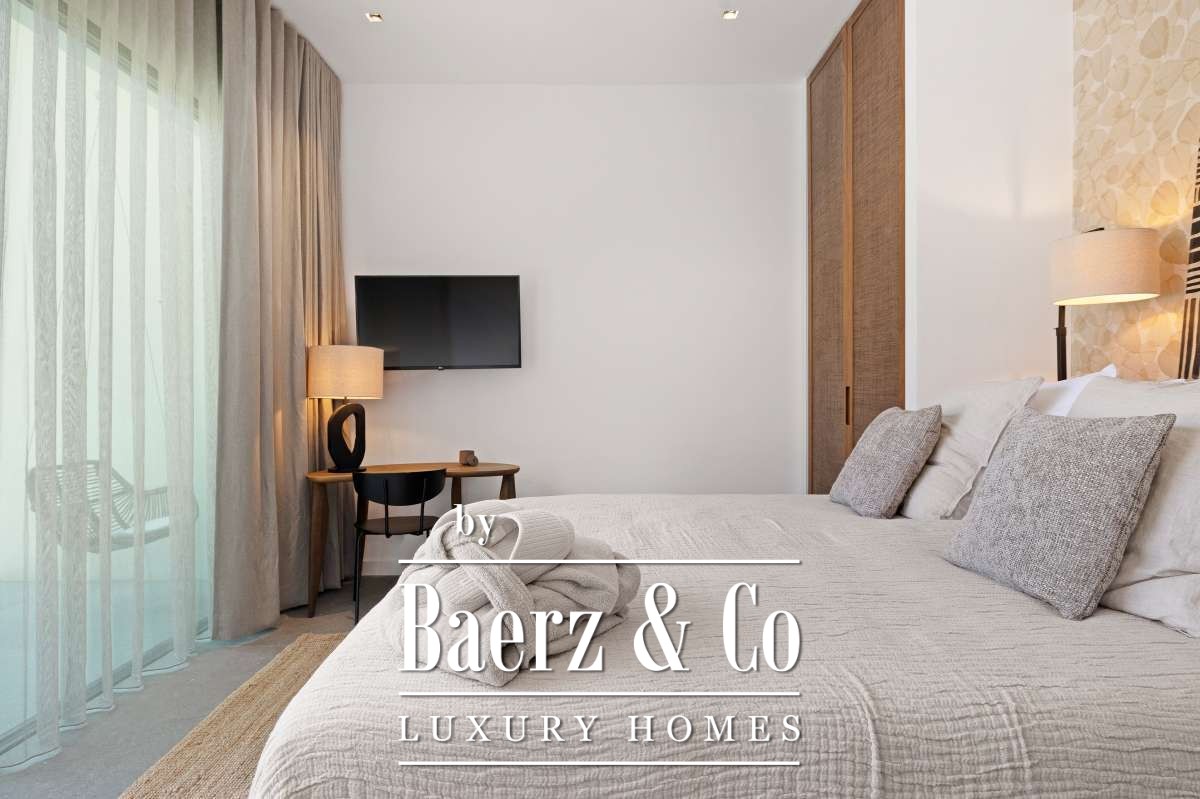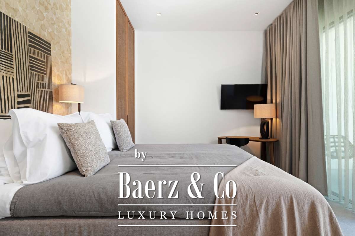 Les cinq chambres en suite, toutes situées au niveau inférieur, bénéficient de balcons et terrasses privés, chacun offrant la perspective sur les jardins tropicaux et la piscine. Les suites principales s’apprécient avec vue jardin et accès direct à la terrasse paisible du bassin. Au fil de la villa, chauffage au sol, climatisation, double vitrage et système d’alarme complet apportent confort et sérénité.
