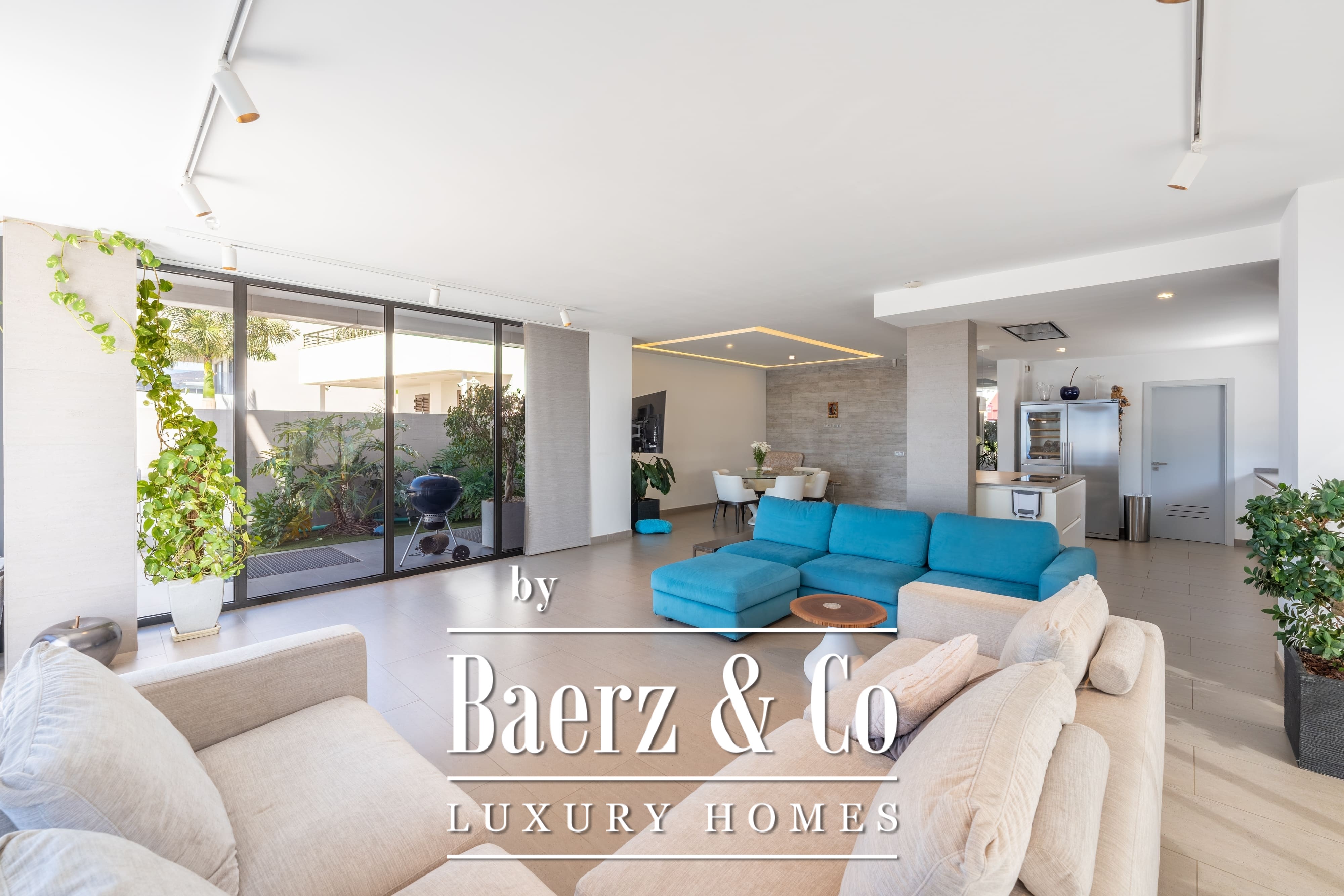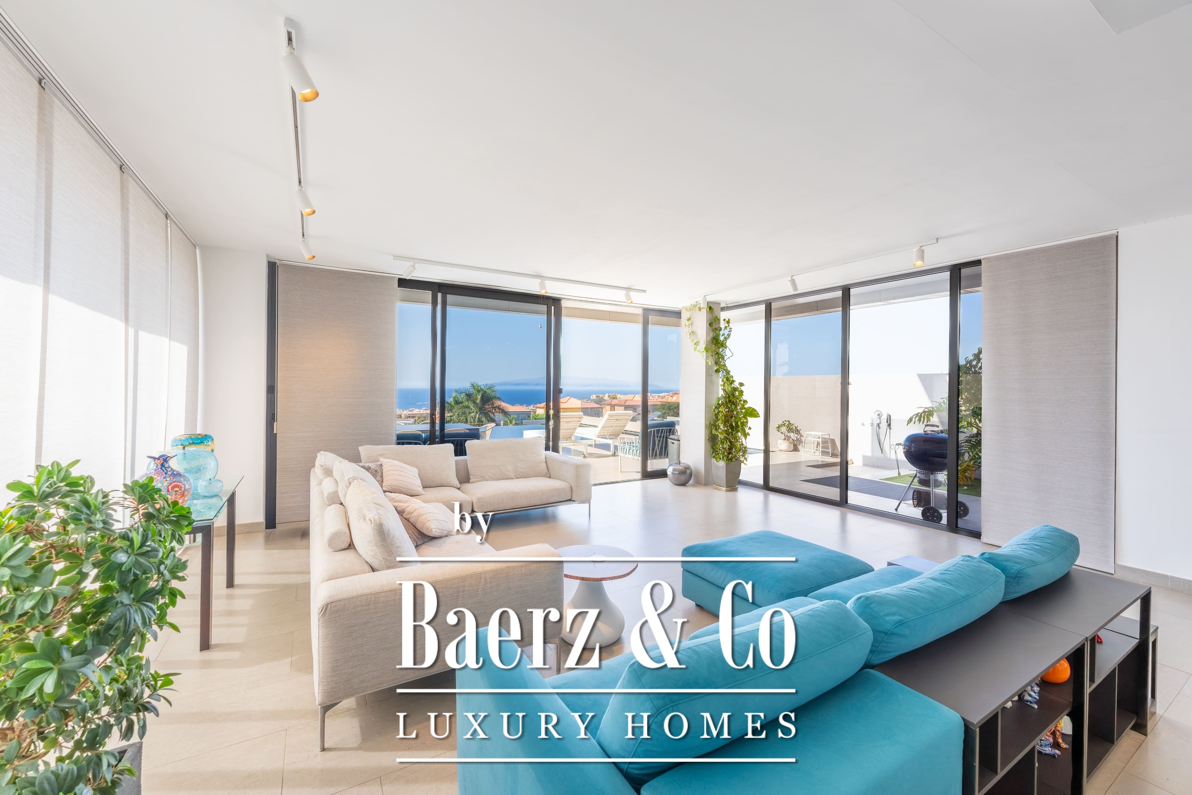 Cette villa moderne de Costa Adeje est nichée au sein du quartier prisé d’El Madroñal, offrant une architecture où la lumière et l’horizon sont omniprésents. Étalée sur 528,51 m², la résidence s’ouvre sur de vastes terrasses encadrant une vue panoramique sur l’océan Atlantique et l’île de La Gomera. Les cinq chambres se répartissent sur trois niveaux, chaque espace baigné de lumière naturelle et d’une atmosphère apaisante. À l’étage supérieur, trois chambres bénéficient d’un accès à une grande terrasse invitant le paysage à l’intérieur; l’étage principal propose une chambre supplémentaire à l’arrière, accédant directement aux espaces de loisirs extérieurs. Le niveau inférieur dispose d’un appartement indépendant comprenant chambre, salle de bains, cuisine équipée et salle de jeux, convenant parfaitement pour l’intimité des invités ou la vie intergénérationnelle.