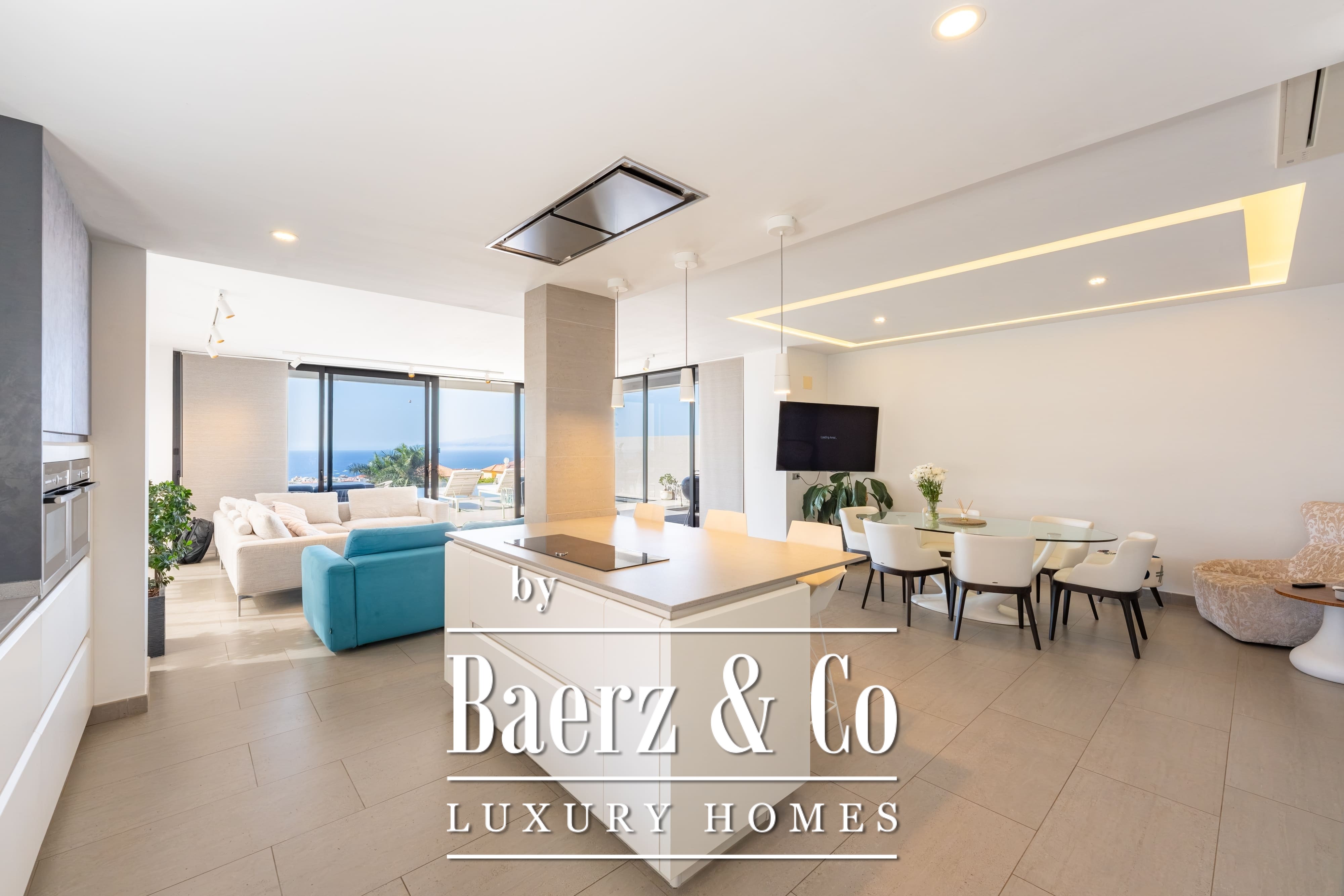 Les différentes terrasses unissent les niveaux, créant ainsi un rythme harmonieux entre intérieur et extérieur, rehaussé par une piscine privée chauffée, des espaces solarium et des coins détente. La villa comprend deux cuisines, des placards intégrés, la climatisation ainsi qu’un garage fermé pour plusieurs véhicules. El Madroñal est réputé pour sa discrétion et sa tranquillité, tout en étant à proximité immédiate d’écoles internationales, de boutiques haut de gamme et de restaurants gastronomiques. Cette villa moderne à vendre à Costa Adeje est proposée meublée, incarnant raffinement, fonctionnalité et privilège dans le sud de Tenerife.