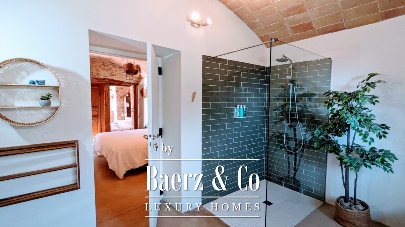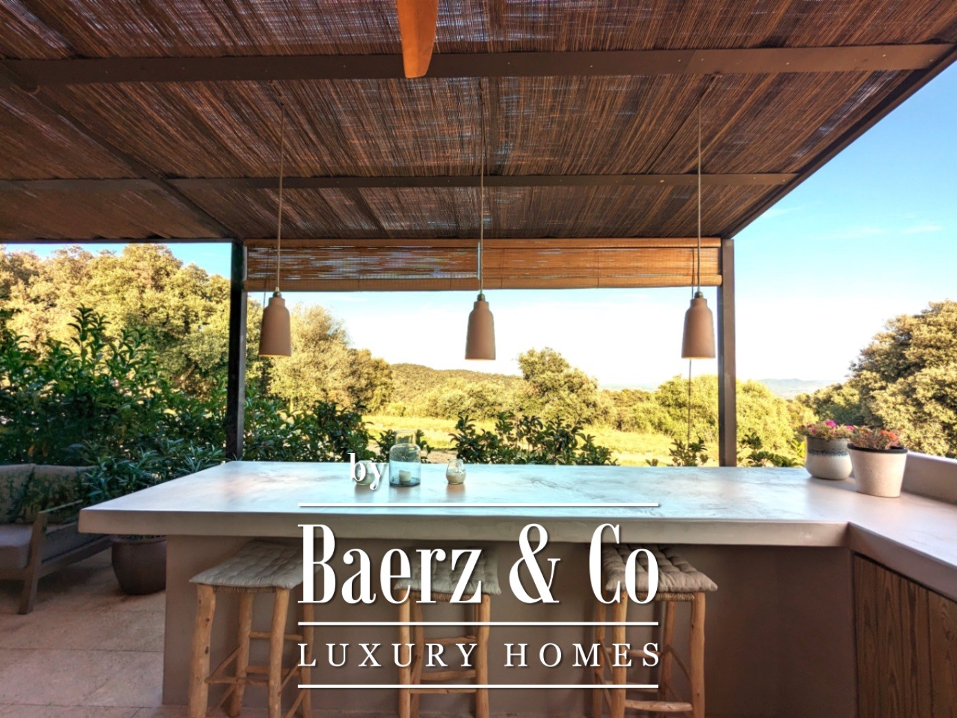 À l’intérieur des 1 000 m² habitables, la maison principale respire grâce à ses plafonds voûtés, son béton poli, sa pierre naturelle et son chêne massif. Des sols en pierre ancienne accueillent l’entrée, menant à des espaces ouverts propices à la sérénité et à la convivialité. Le domaine se divise en trois entités distinctes : la ferme catalane d’origine de 650 m², une résidence privée de 150 m² et un appartement de gardien de 200 m². Les neuf chambres et huit salles de bains comprennent plusieurs suites d’invités avec terrasses privées et accès au jardin. Terrasses couverte et ouverte, cuisine professionnelle et cheminées d’origine transcendent les saisons.