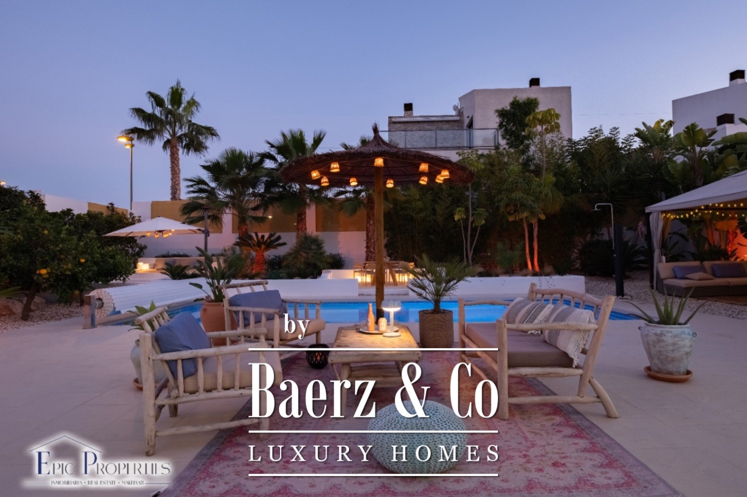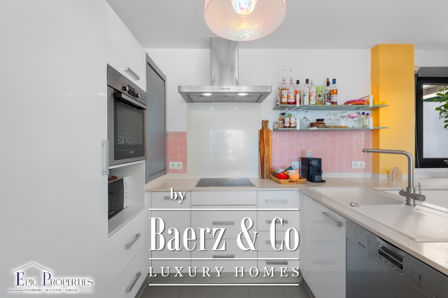 Cette villa Polop se trouve dans un environnement résidentiel paisible, offrant une alliance subtile entre la lumière naturelle, le volume et l’intimité. La maison de 114 m² est intelligemment agencée de plain-pied, sur un terrain de 820 m² qui privilégie à la fois l’isolement et l’ouverture. Les hauts plafonds et les sols en marbre instillent une ambiance raffinée à l’ensemble de l’intérieur spacieux.