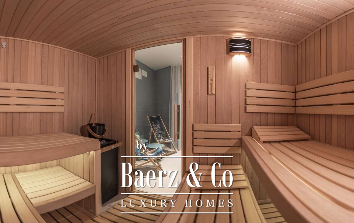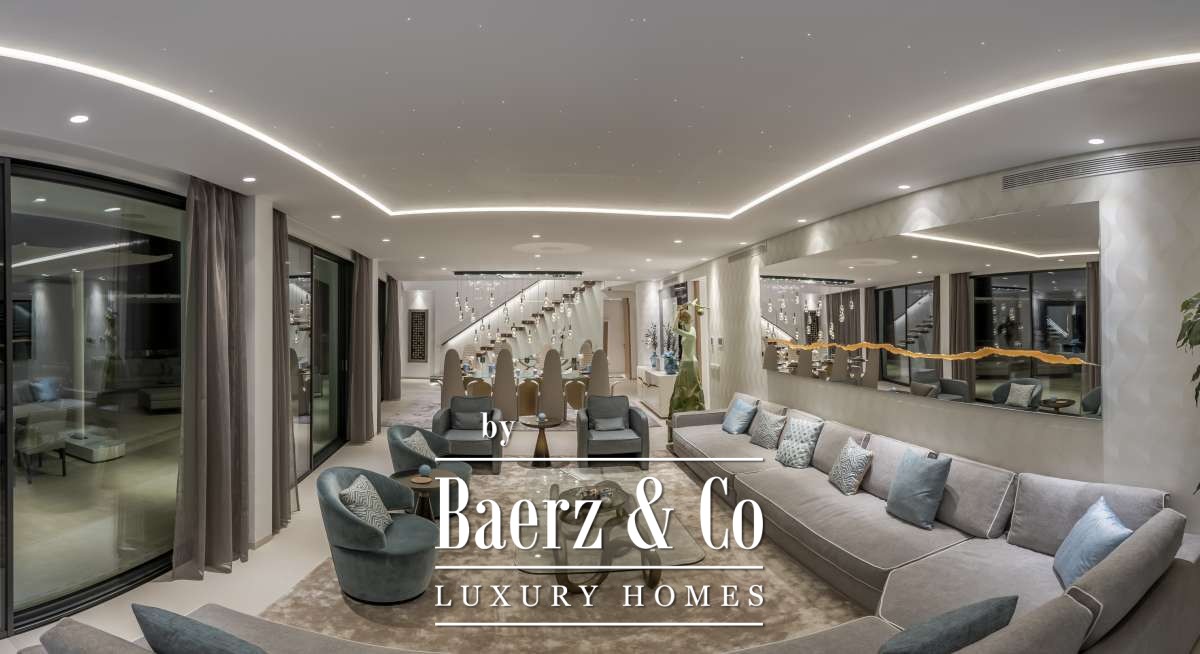 La villa se compose de neuf chambres et onze salles de bains, chacune pensée avec précision pour le confort comme pour l’intimité. La cuisine design, dotée d’appareils Miele, d’une chambre froide et d’un système avancé d’osmose inverse, allie fonctionnalité et luxe discret. La domotique, le chauffage au sol, le réfrigérateur américain et une pompe à chaleur dédiée garantissent un confort tout au long de l’année. Le salon, sublimé par une cheminée raffinée, s’ouvre sur des vues panoramiques, tandis qu’un spa privé, une salle de fitness et de yoga, ainsi qu’une salle de cinéma offrent bien-être et loisirs.