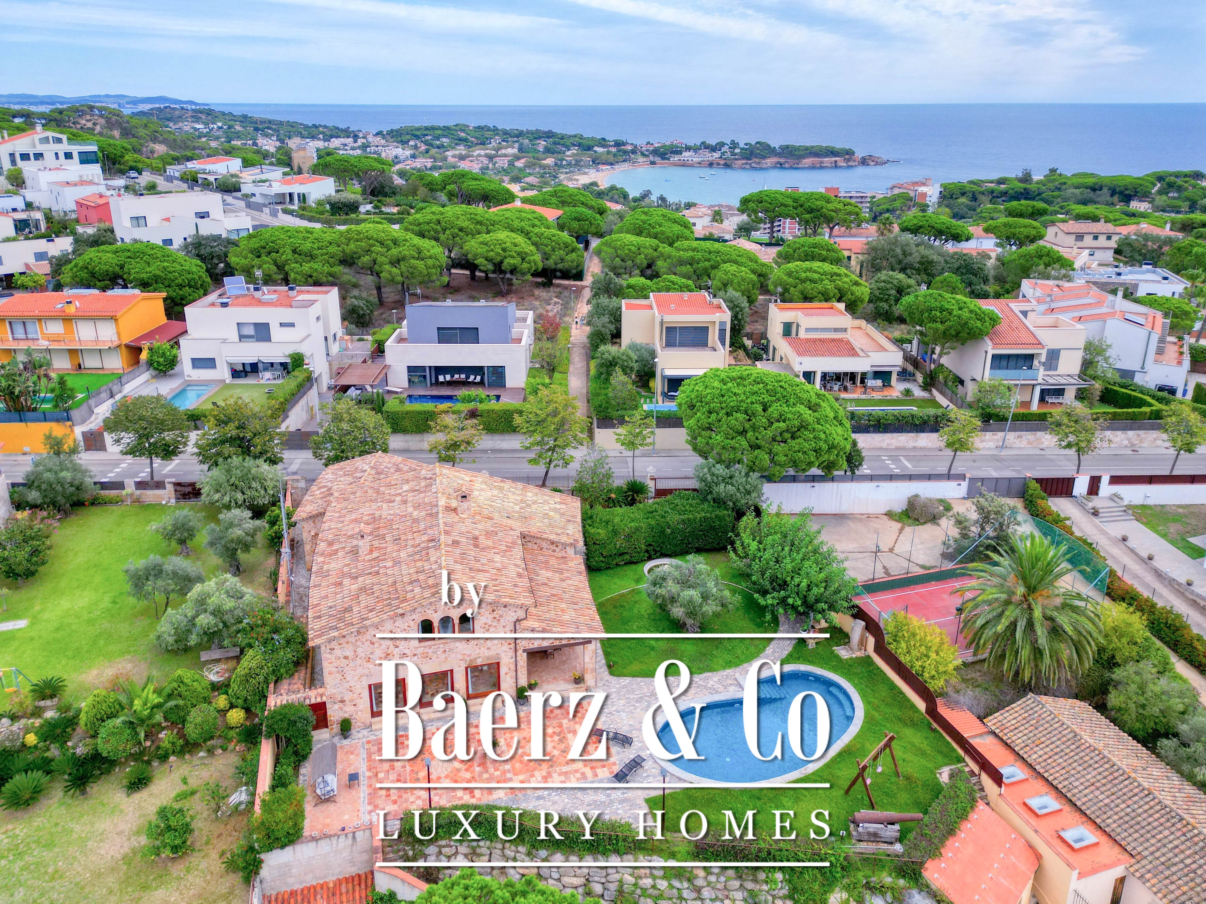 Villa individuelle à Sant Feliu de Guixols, cette propriété allie avec élégance intimité, espace et art de vivre méditerranéen sur la très prisée Costa Brava. Sur un terrain totalement plat de 1 179 m², cette résidence de 520 m² propose une architecture rustique raffinée, mêlant matériaux traditionnels et confort contemporain. La végétation méditerranéenne et les vues dégagées vers la mer instaurent une atmosphère de sérénité profonde et de communion avec la nature.