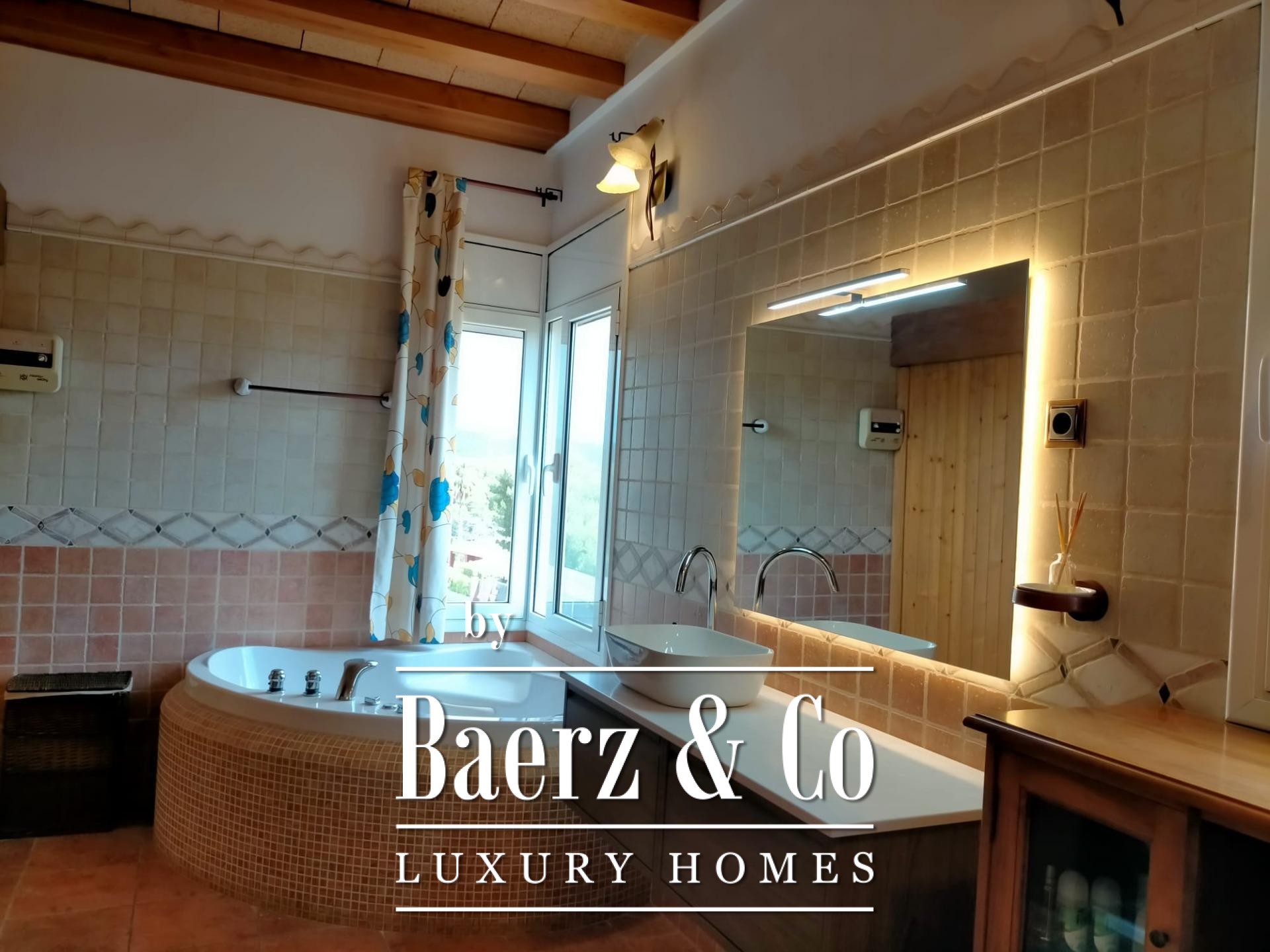 À l’extérieur, un jardin luxuriant planté d’essences méditerranéennes matures, d’une pelouse et d’un olivier ancestral met en valeur une piscine bordée de pierre naturelle et agrémentée d’une cascade, offrant un cadre raffiné pour les après-midis paisibles ou la réception d’invités. Les espaces pratiques incluent un vaste garage privé et un local de rangement, facilitant le stationnement des véhicules et le stockage des effets saisonniers. Climatisation, chauffage, système de sécurité et barbecue complètent le confort général.