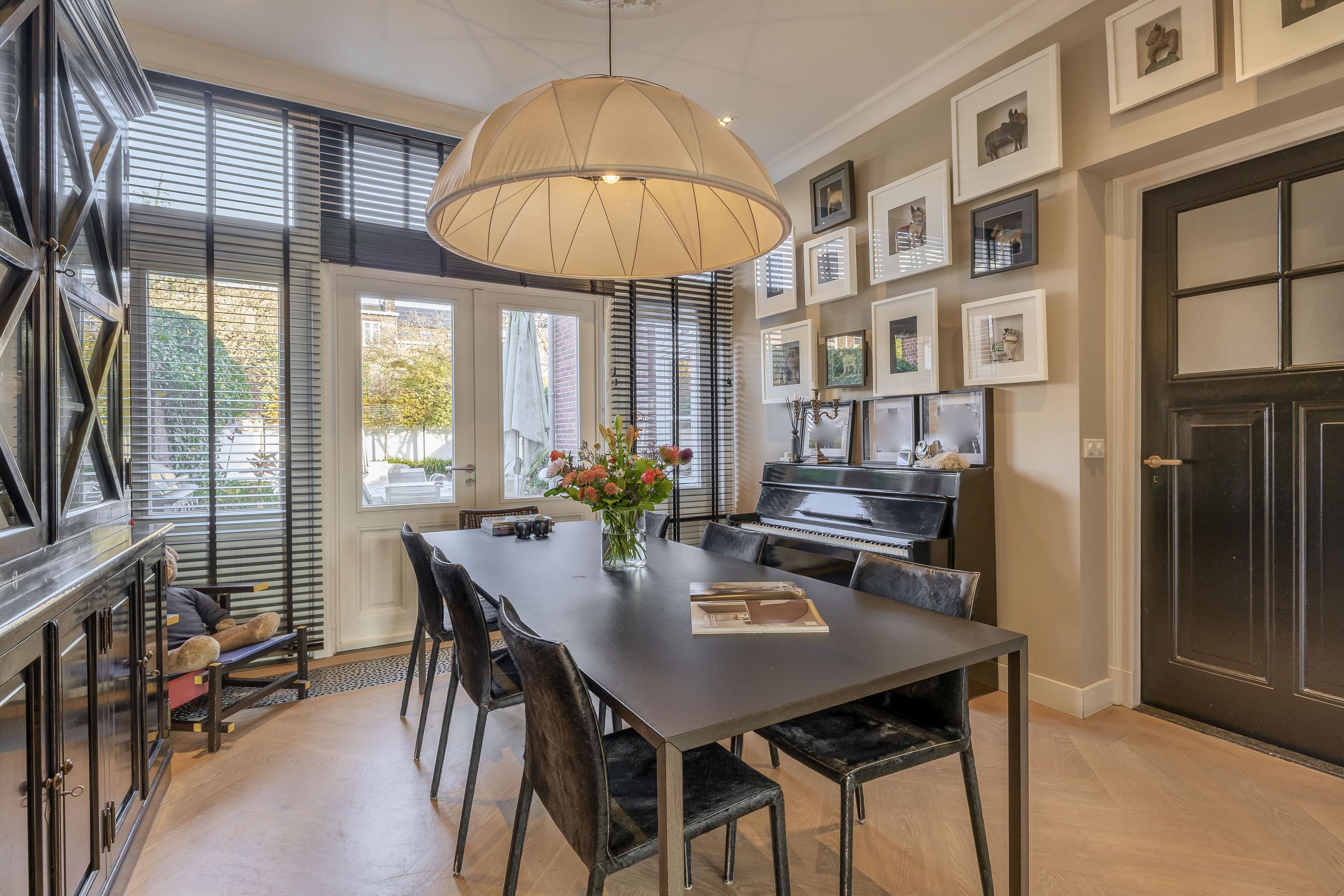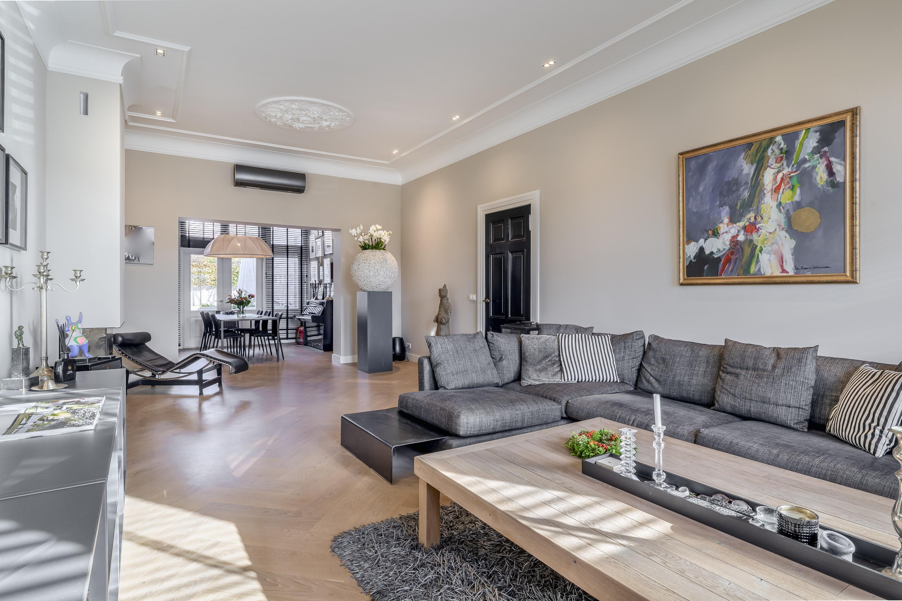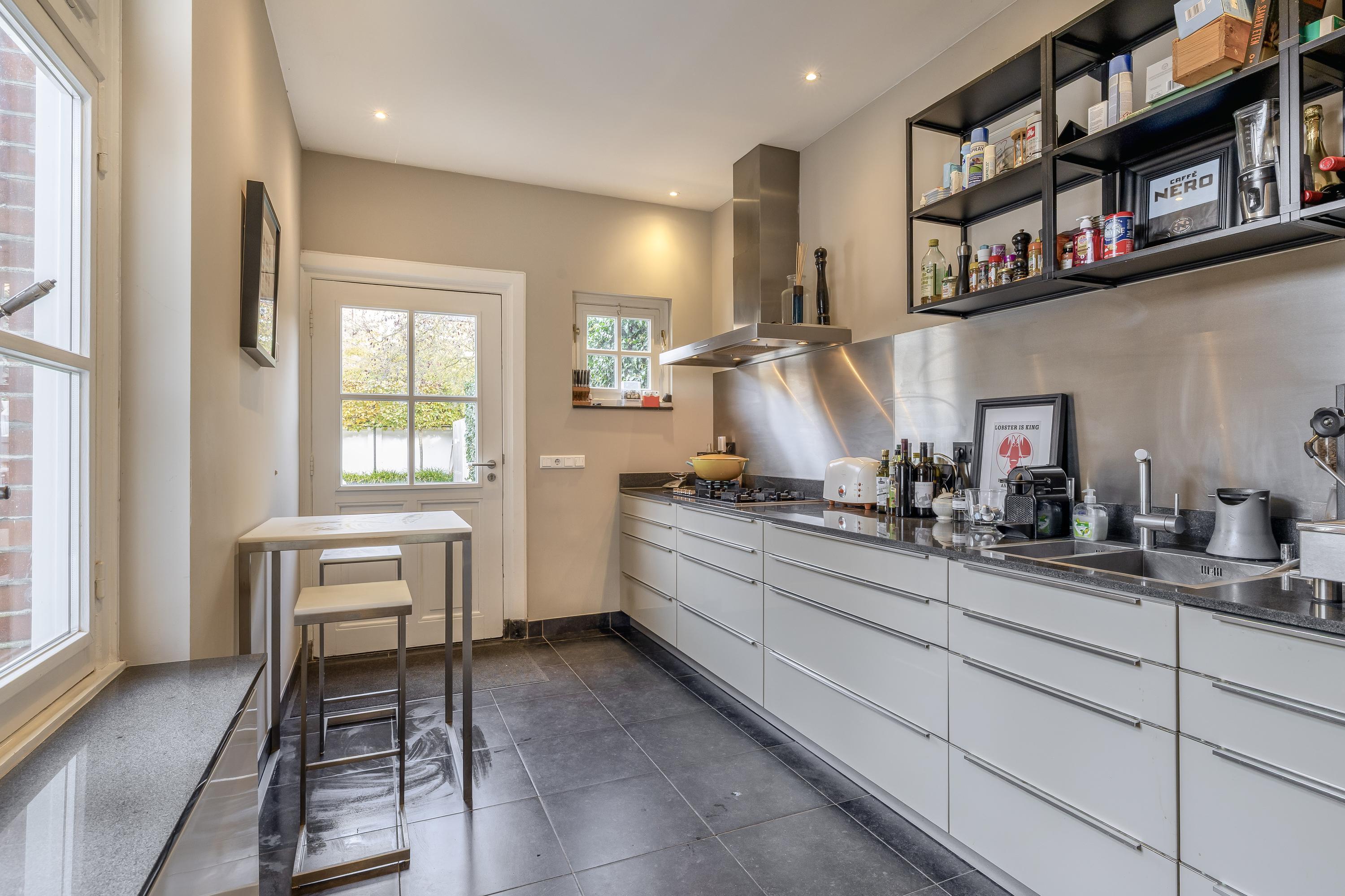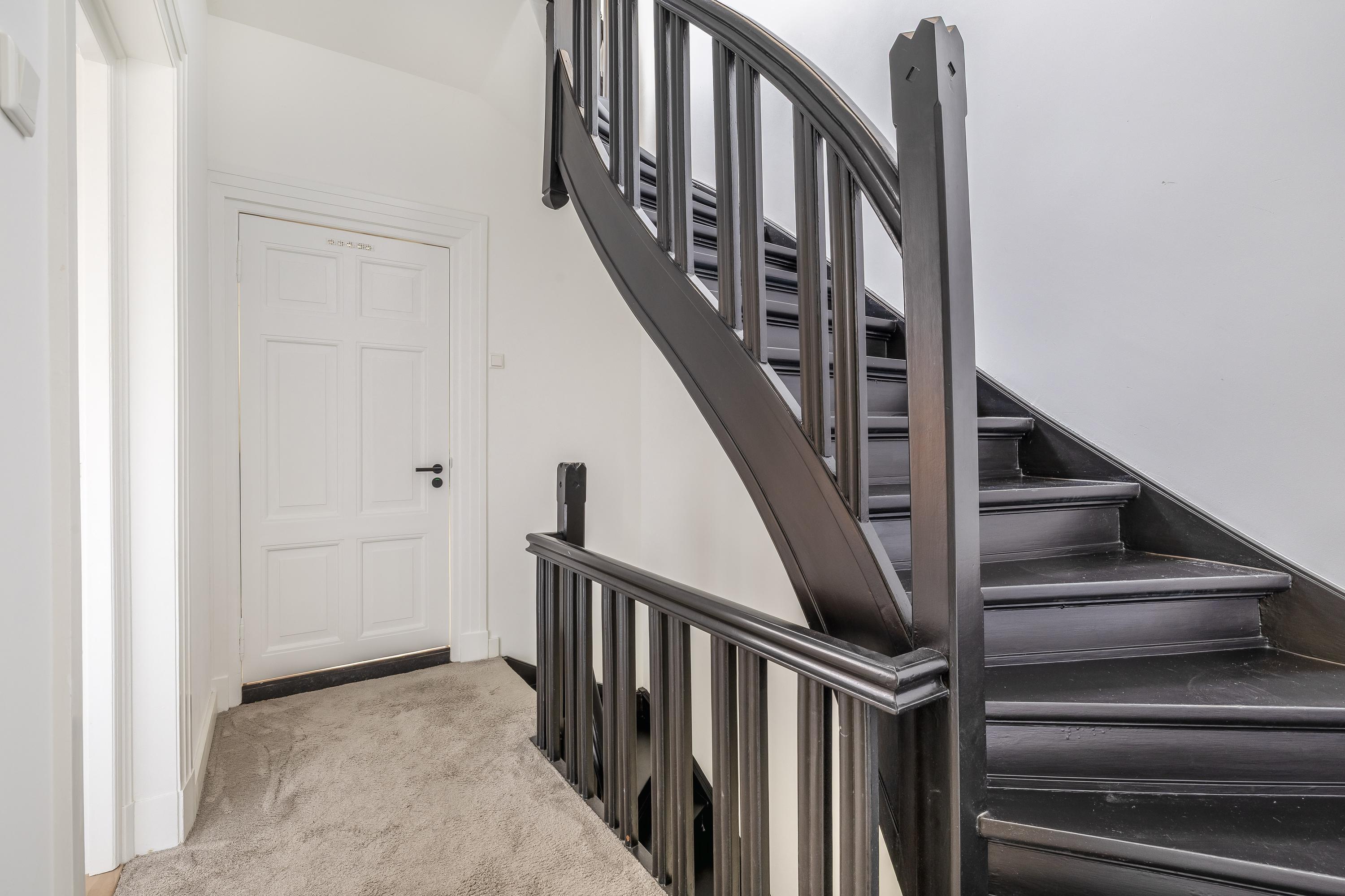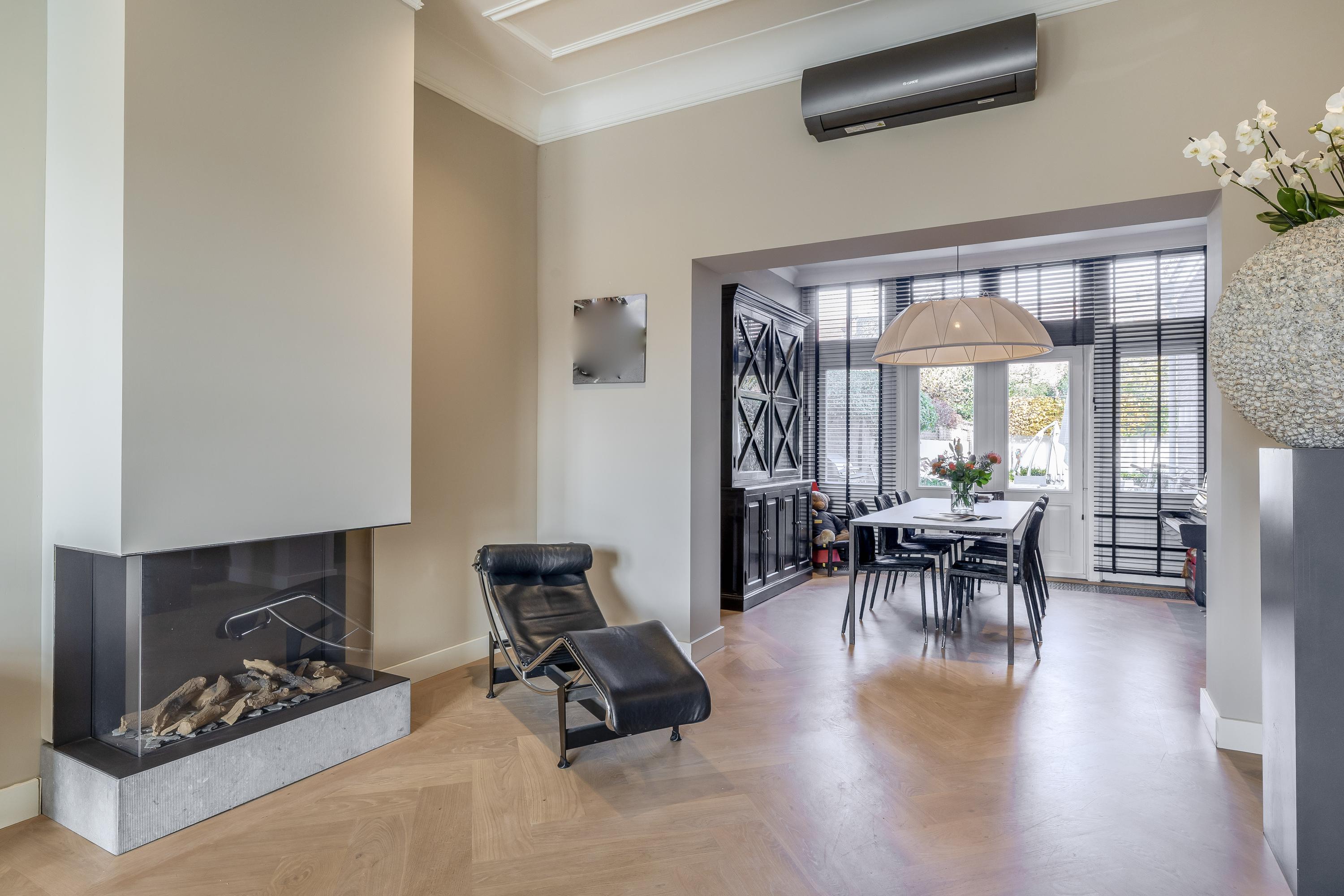 Le niveau principal jouit de vues dégagées sur le Rosarium, sublimées par de hauts plafonds ornés d’éléments d'origine, une cheminée au gaz et une technologie intégrée en toute élégance comprenant climatisation et éclairage modulable. Les portes-fenêtres à l’arrière s’ouvrent sur un jardin conceptualisé par un architecte paysagiste, véritable havre privé composé de plusieurs terrasses, d’un deck en bois Padouk, d'un patio pavé et d’une piscine chauffée, le tout ceint de murs pour une intimité absolue à quelques minutes du centre de Venlo.