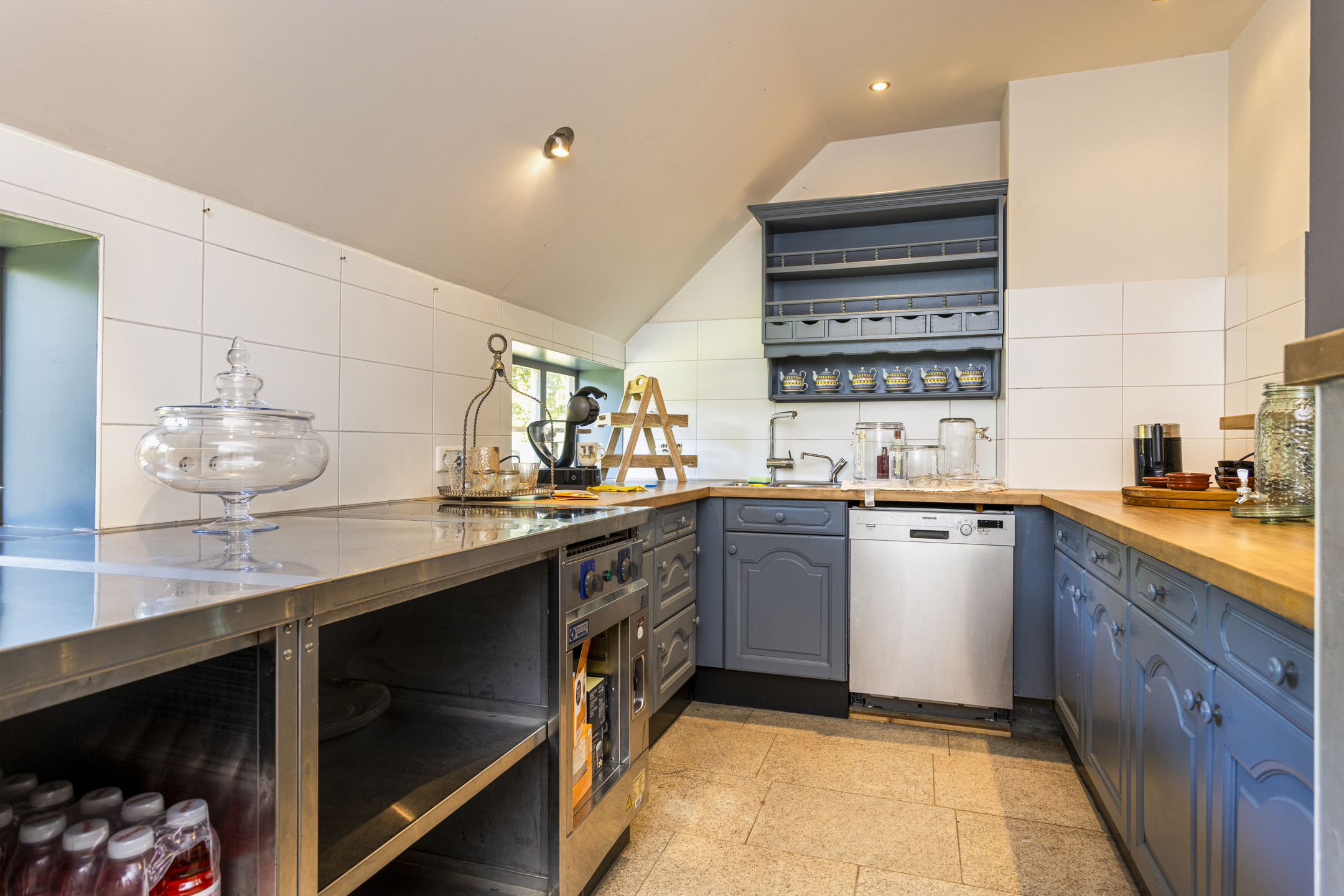 De schöppe was in haar vorige leven een goedbezocht horeca-etablissement. Nu is het een heerlijke plek om tot rust te komen, bij de houtkachel te zitten met vrienden of toch uw levensverhaal aan het papier toe te vertrouwen. Of wellicht om toch weer commerciële activiteiten te ontplooien, want de keuken is er klaar voor. Op het dak liggen de zonnepanelen.