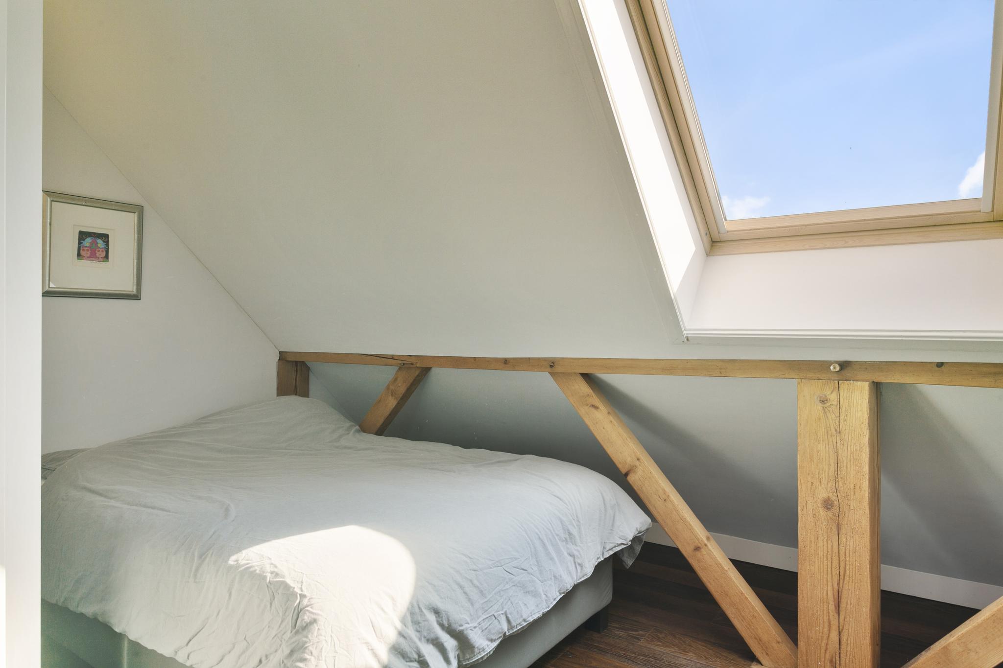 Rechts de ouderslaapkamer (50 m²), met een ruime inloopkast en een prachtige badkamer met ligbad, WC, 2 wastafels en inloopdouche. Aan beide zijden veel extra bergruimte.