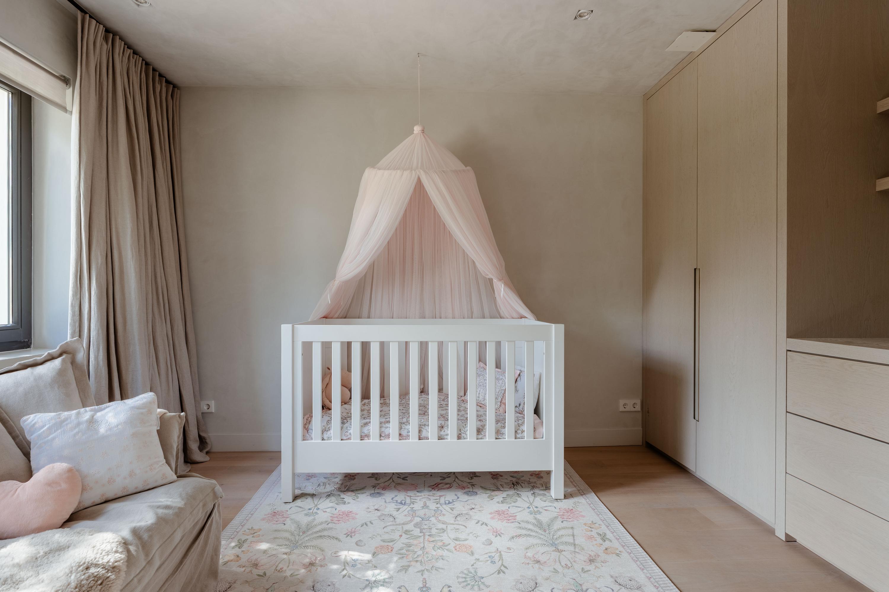 Op de tweede verdieping bevinden zich nog eens twee slaapkamers, beide voorzien van maatwerkkasten. Een van de kamers beschikt over een speciaal ontworpen inbouwkast met kindvriendelijke indeling. De derde badkamer, wederom in Piet Boon-design, is uitgevoerd met 120x120-tegels, inbouwkranen en een strak vormgegeven wastafelmeubel.