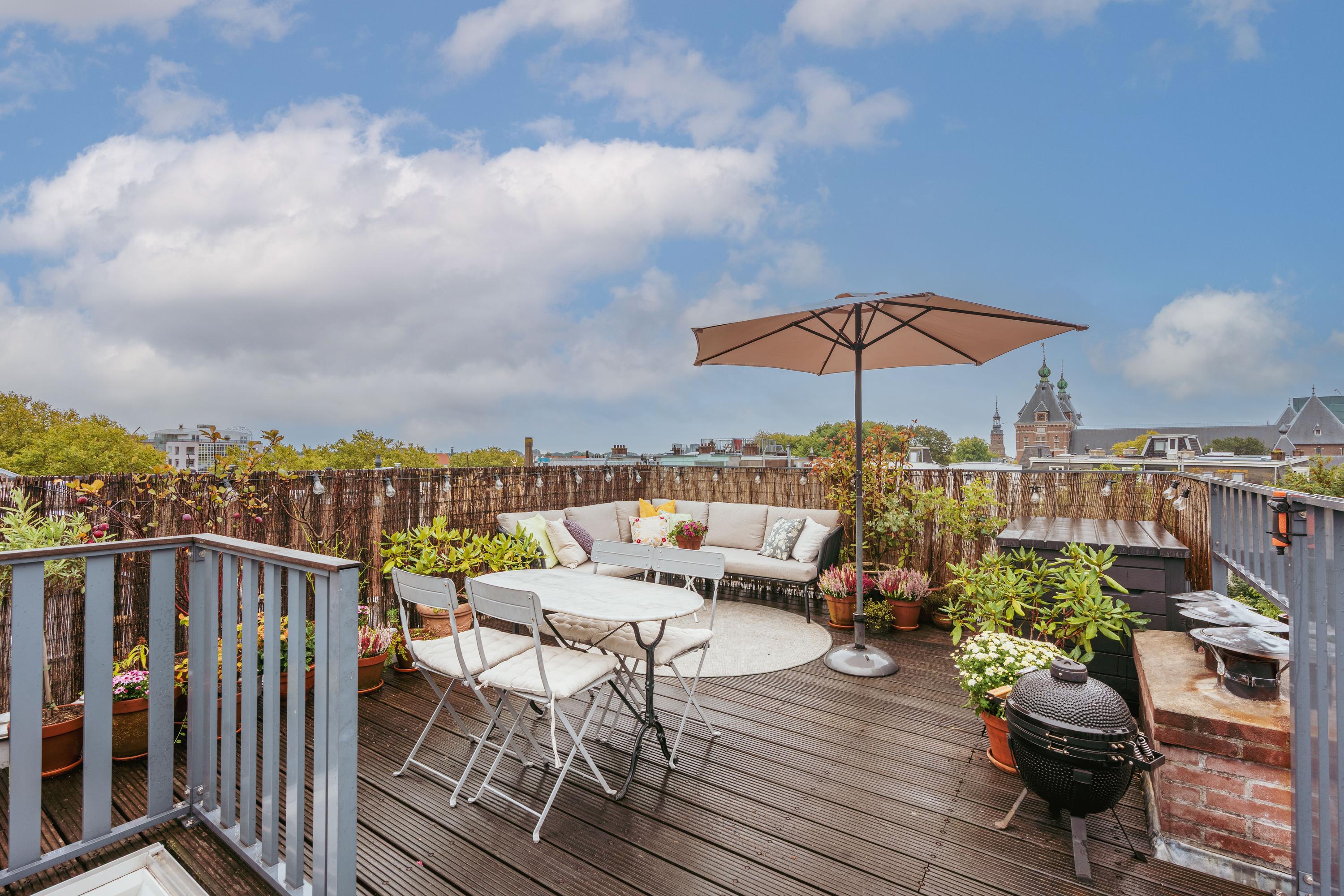 Het absolute hoogtepunt is het royale dakterras van ca. 26 m² met panoramisch uitzicht over Amsterdam en Artis, een zeldzaam bezit in deze buurt. Hier ervaart u rust, ruimte en groen, midden in de stad.