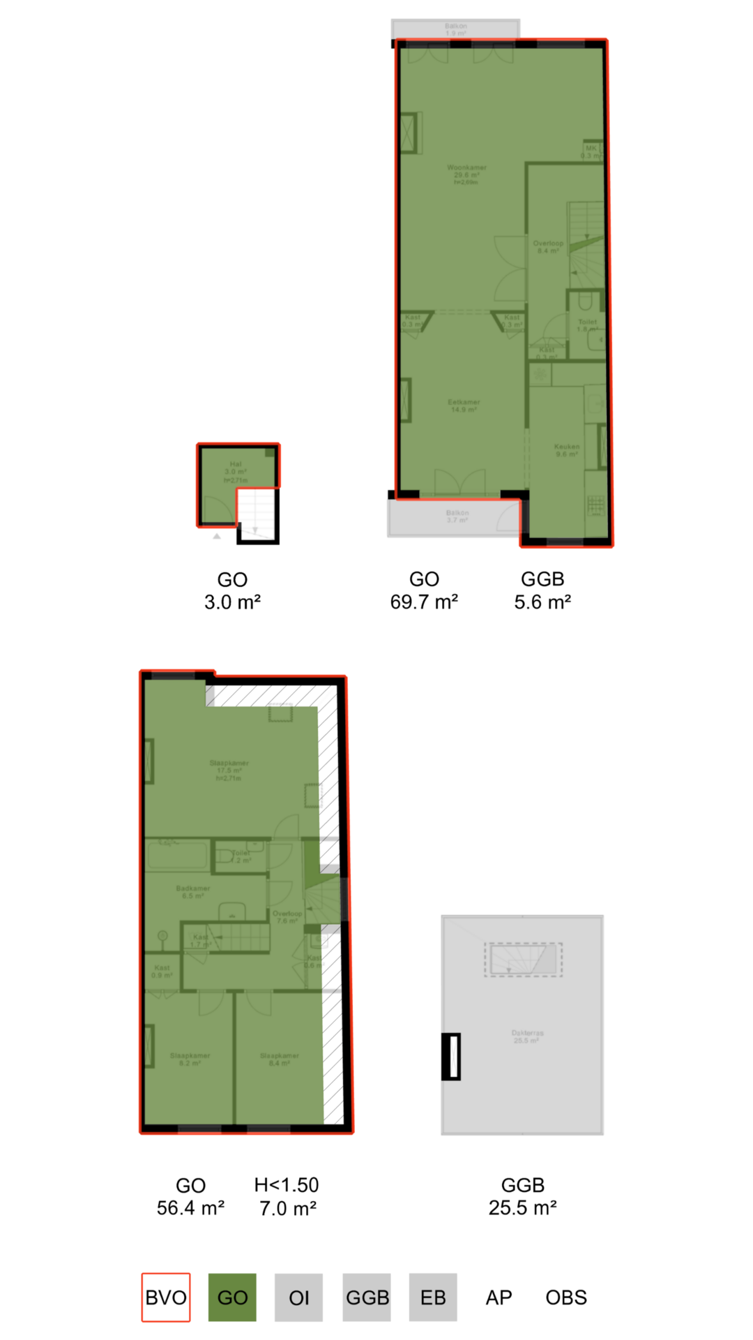 - 3 slaapkamers;