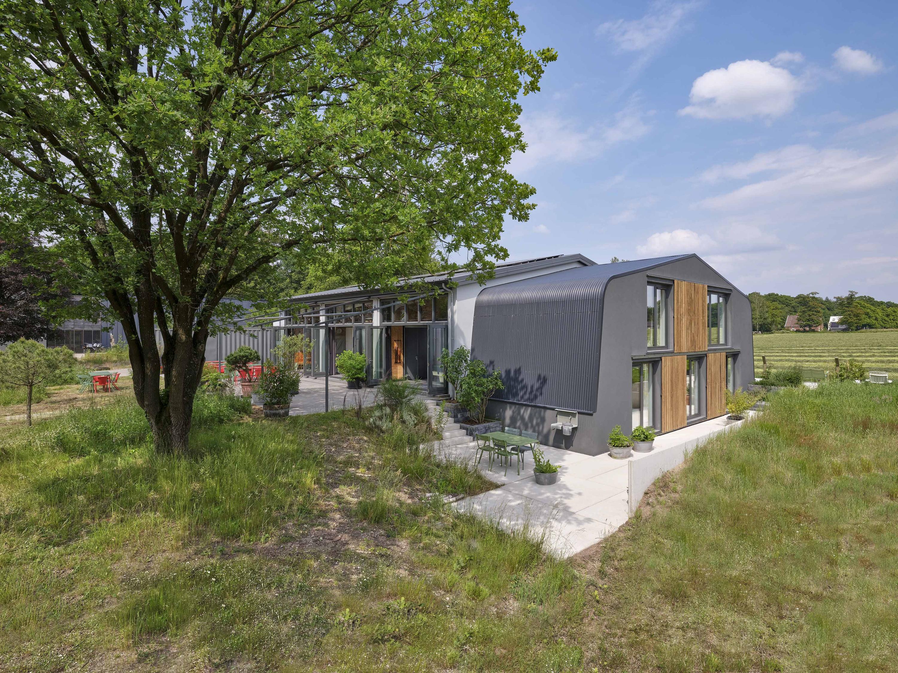 De hangar is compleet gerenoveerd en de woning is nieuw gebouwd en voldoet aan de eisen van moderne techniek en duurzaamheid. Op het dak zijn 24 stuks zonnepanelen geplaatst in combinatie met een warmtepomp.