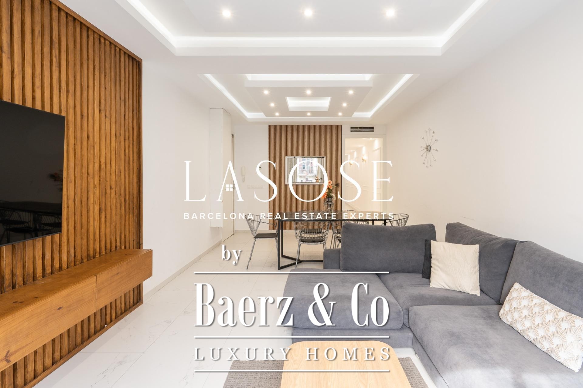 Appartement Barcelona Eixample Esquerra onderscheidt zich door zijn adres aan een exclusieve straat in het hart van de Consell de Cent. Deze woning van 109 m² is in 2022 gerenoveerd, waarbij hedendaags design samenkomt met verfijnd vakmanschap en hoogwaardige materialen. De zuidelijke oriëntatie zorgt ervoor dat daglicht elk hoekje bereikt en de elegante texturen en open ruimtes subtiel tot hun recht komen.