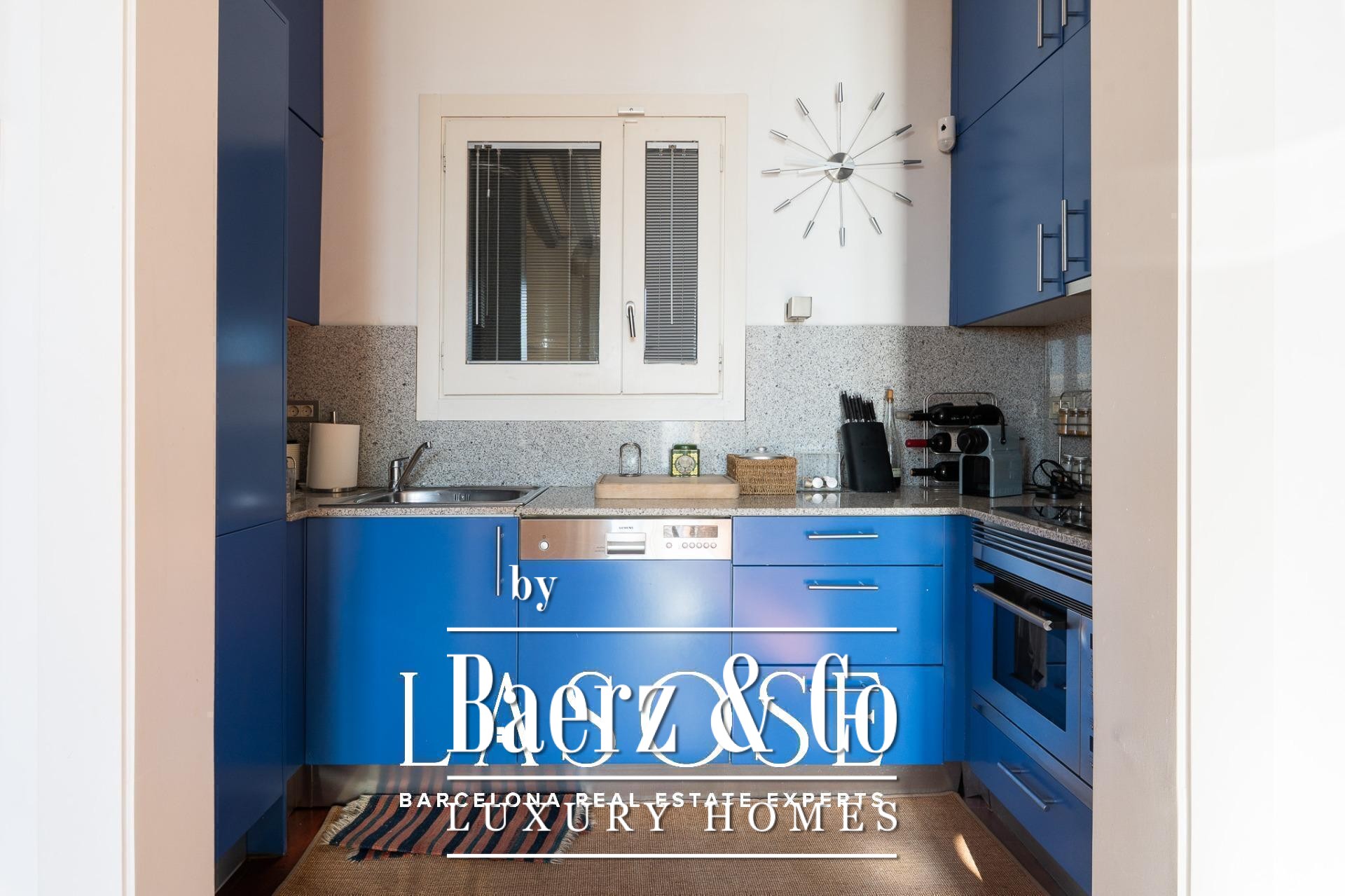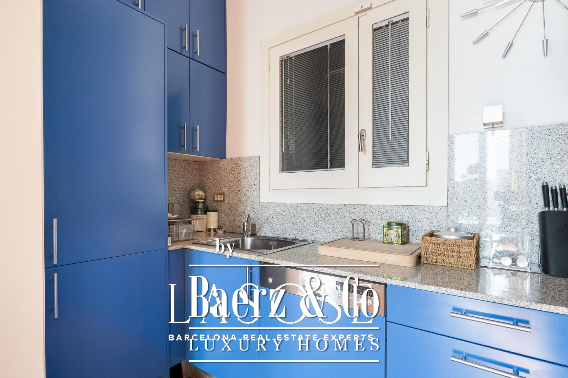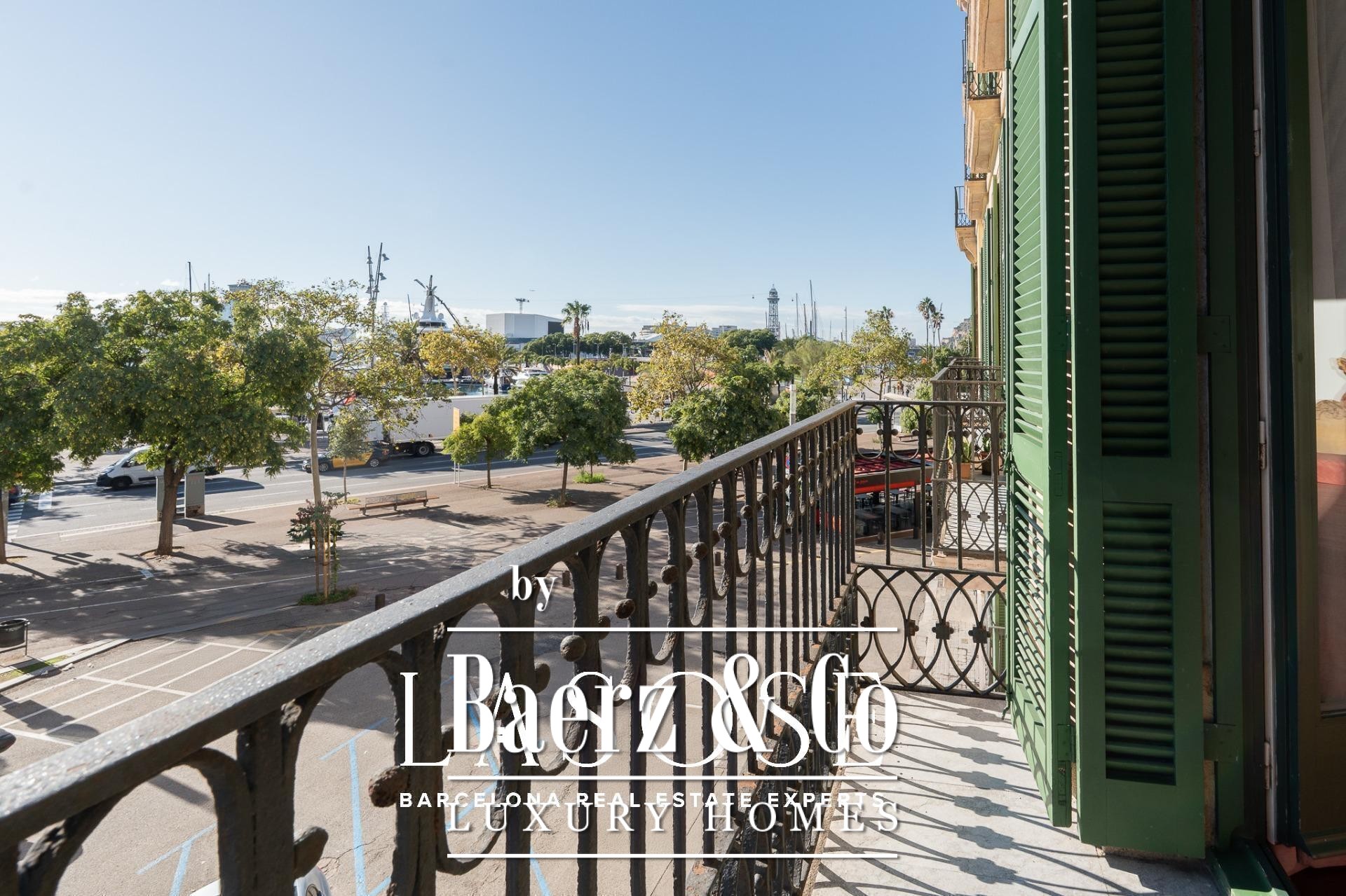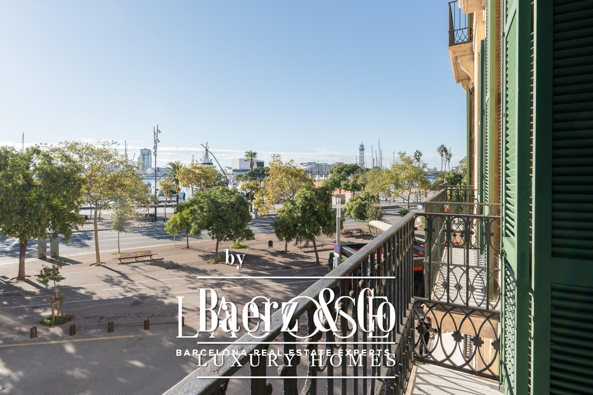 Apartment Barcelona bevindt zich in een historisch pand met uitzicht op de jachthaven van de stad. Deze woning van 122 m² beslaat een voorname locatie aan de Carrer Llauder en biedt een uitzonderlijke combinatie van karakteristiek erfgoed en hedendaags wonen. Binnen ontvouwt zich een ruimte met plafonds van 3,8 meter hoog, zichtbare houten balken en Catalaanse gewelven, verrijkt met met de hand beschilderde details. Smeedijzeren balkons omlijsten het open zeezicht en het groen van Las Ramblas de Mar, waardoor iedere kamer baadt in mediterraan licht.