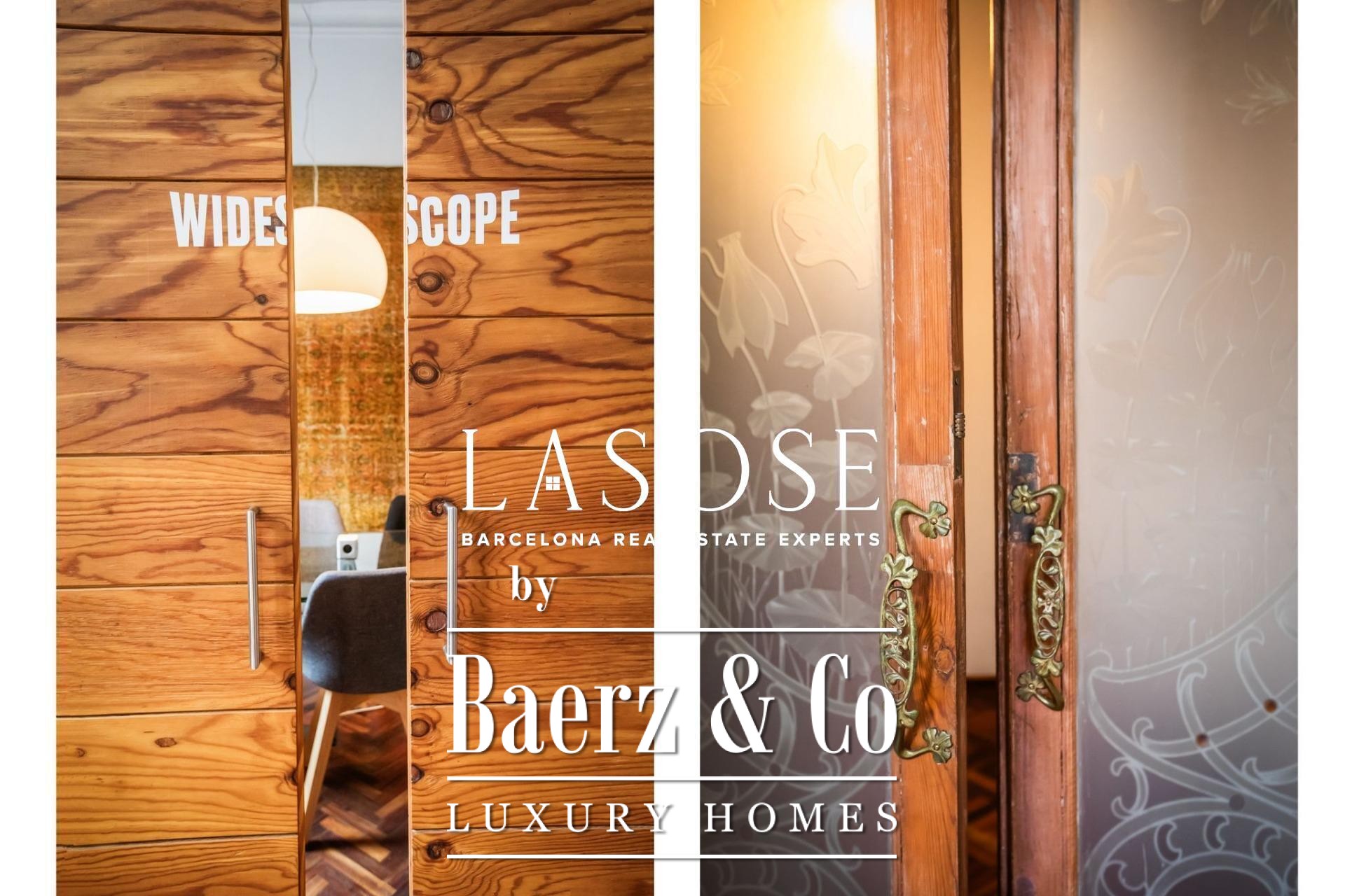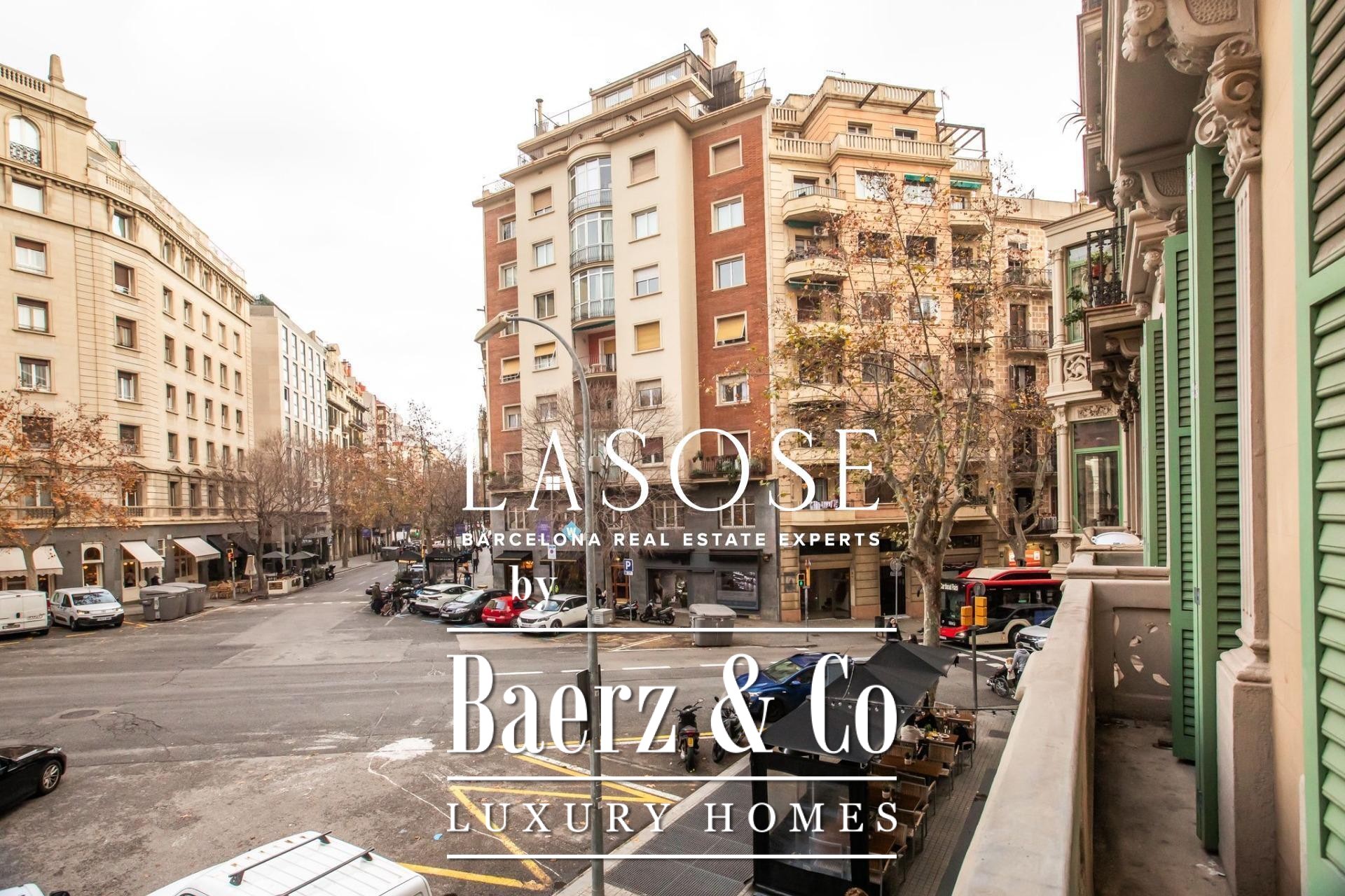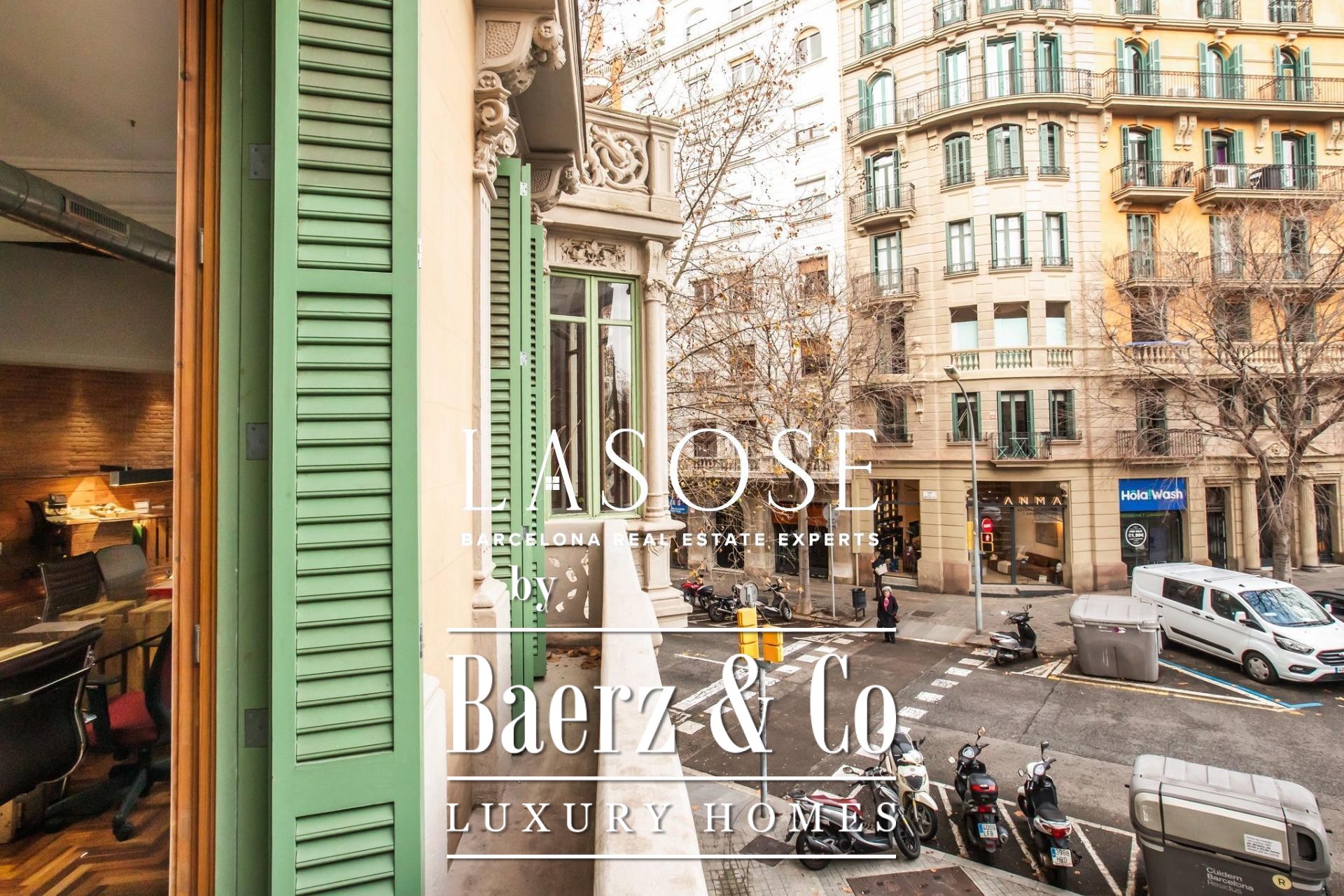 Appartement Barcelona in Eixample Esquerra bevindt zich op de bel-etage van een karakteristiek modernistisch pand uit 1900, waar erfgoedarchitectuur en een royale ruimtelijke indeling samenkomen. Deze woning biedt een intern woonoppervlak van 179 m² en 4 m² aan balkons. Drie balkons aan de straatzijde en een klassieke erker vullen de hoofdwoonkamer met daglicht, wat zowel grandeur als openheid weerspiegelt. De plafonds reiken tot 3,5 meter en zijn voorzien van de originele volta catalana, waarmee het authentieke karakter van de bouwperiode behouden blijft.