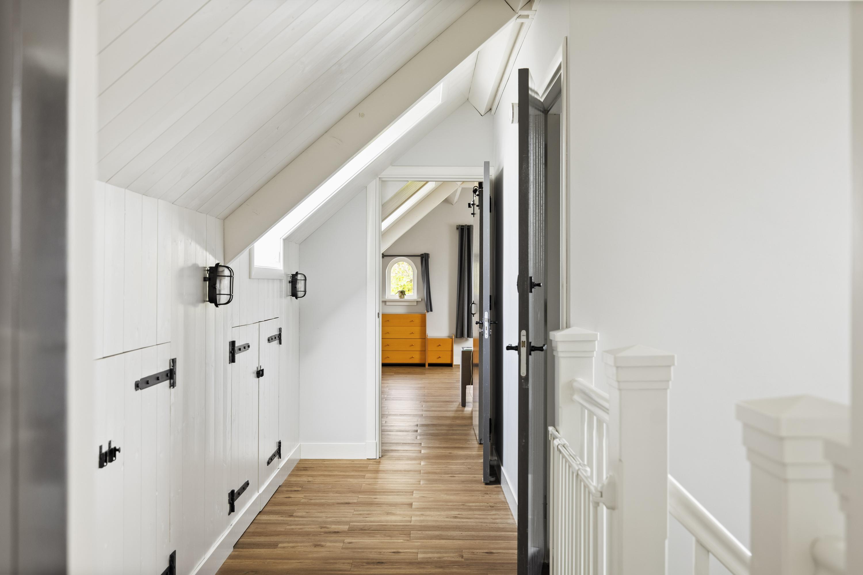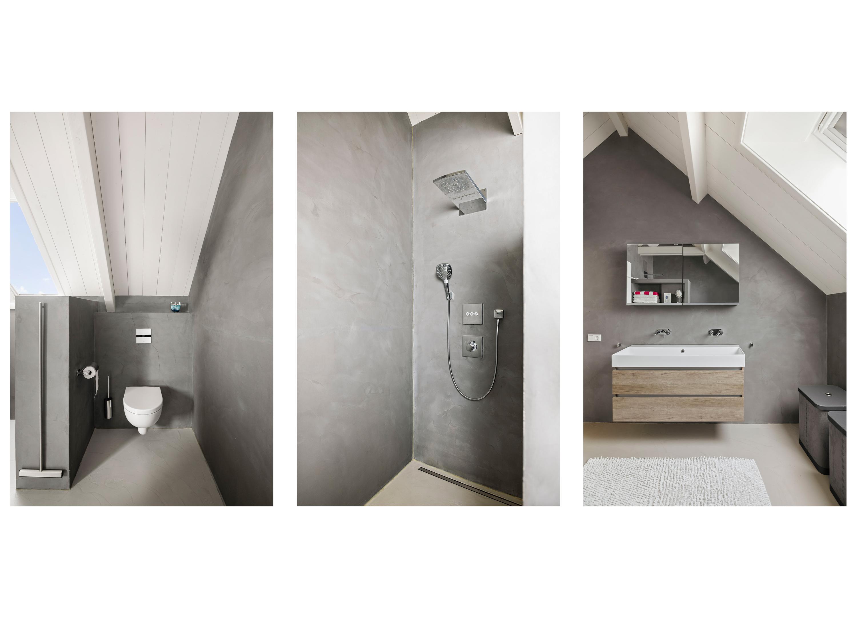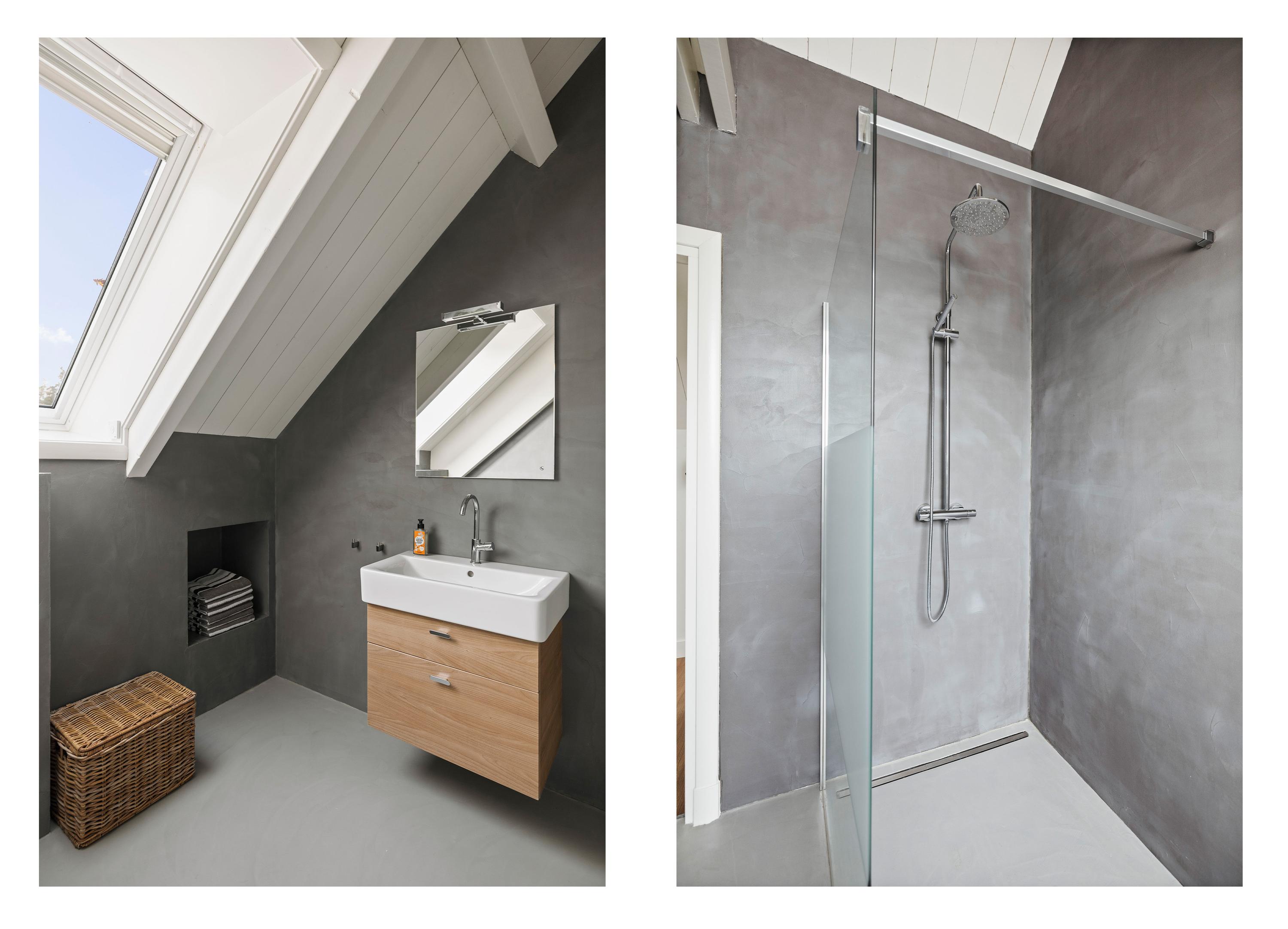 Boven een riante overloop met véél bergruimte en twee heerlijke slaapkamers, eveneens met veel bergruimte en elk een eigen badkamer. De wanden met beton ciré geven de ruimtes een chique en eigentijdse uitstraling. De badkamers zijn beide voorzien van een riante inloopdouche, wc’s met no-touch spoelsysteem (Wisa) en wastafel (Grohe Sphinx).