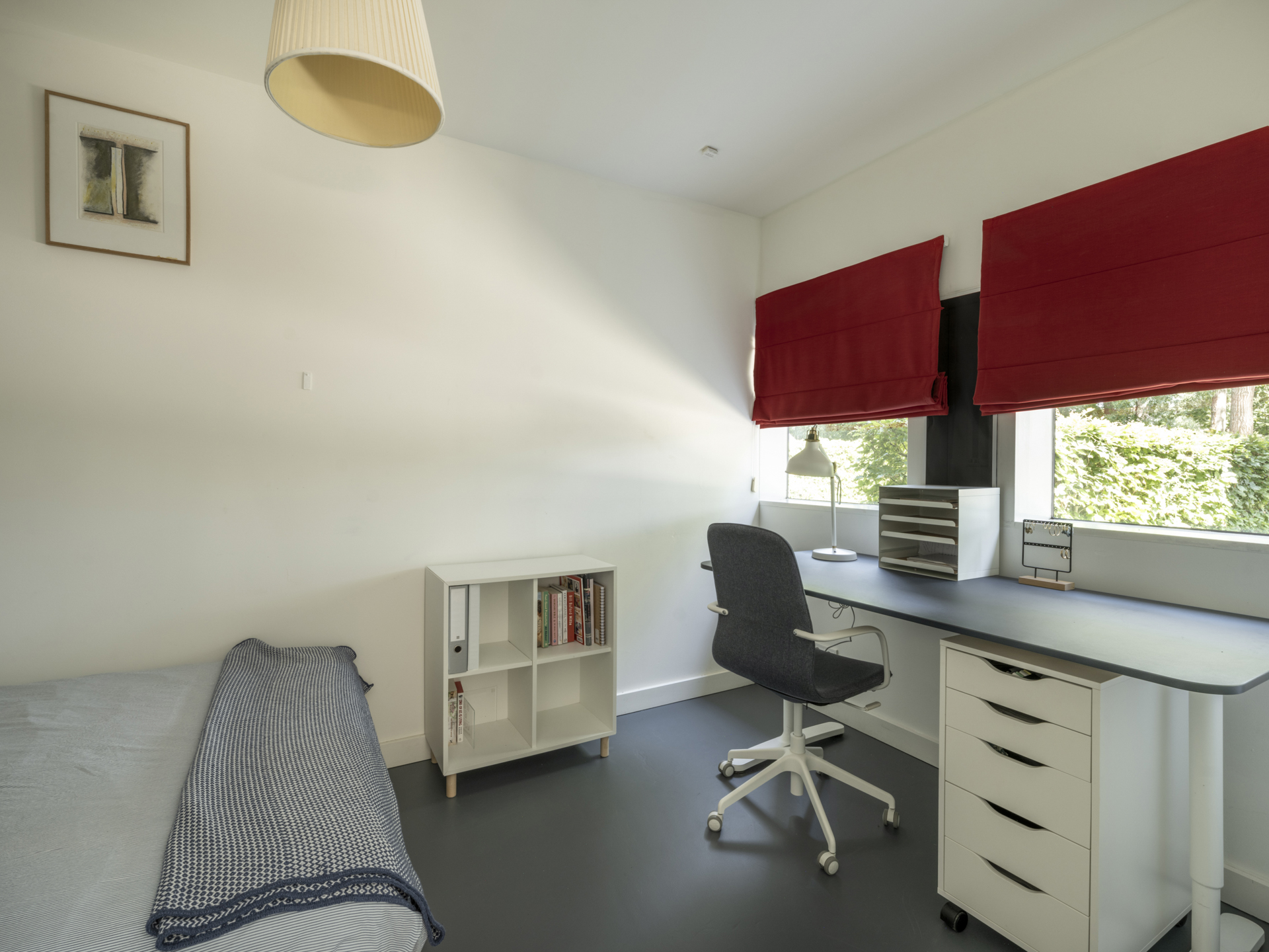 Deze ruimte heeft naast een zelfstandige entree ook een deur die rechtstreeks op de sfeervolle binnentuin uitkomt. Ook in deze kamer is een prachtige daglichttoetreding verwezenlijkt. De ruimte is voorzien van airconditioning.