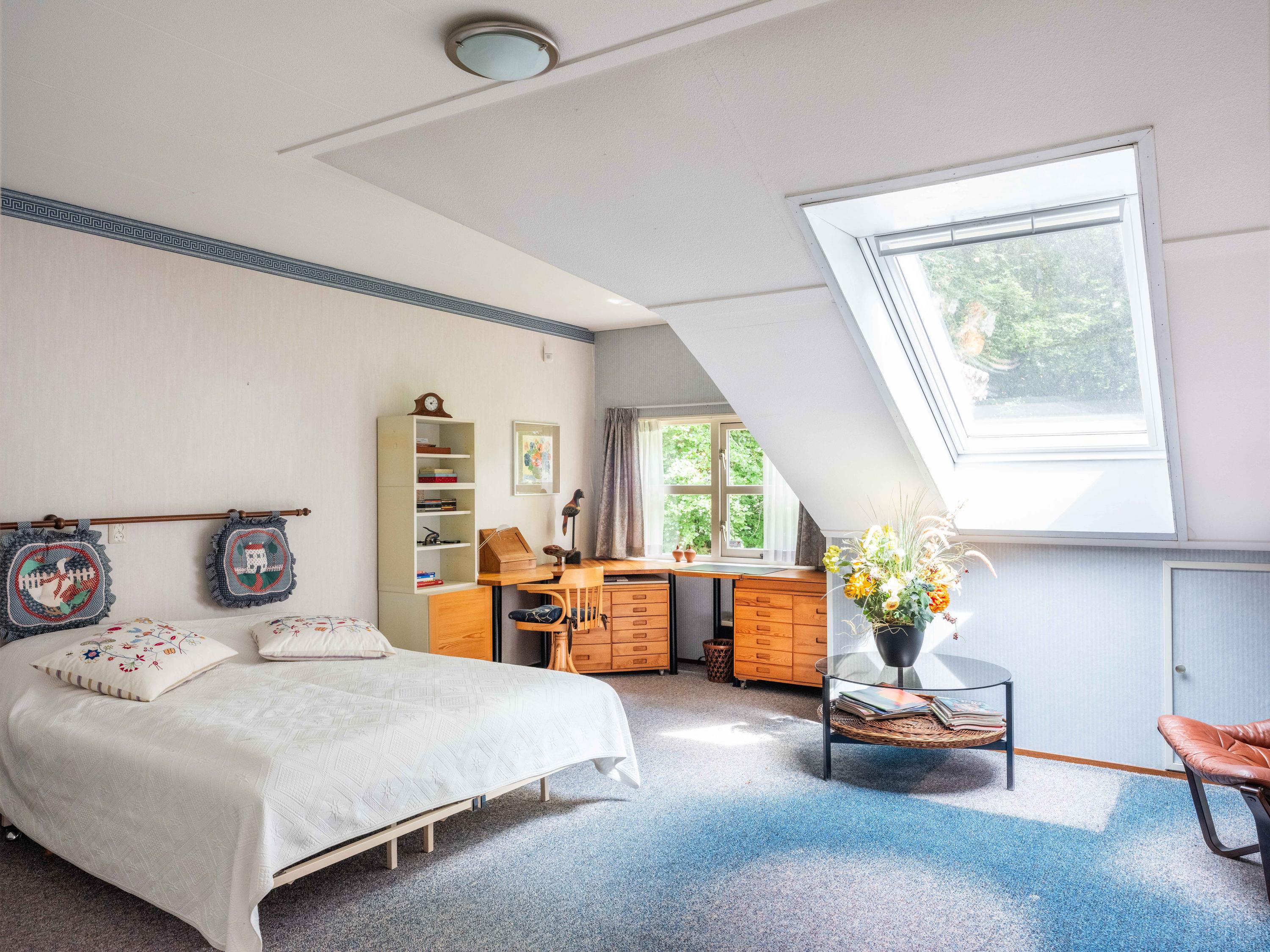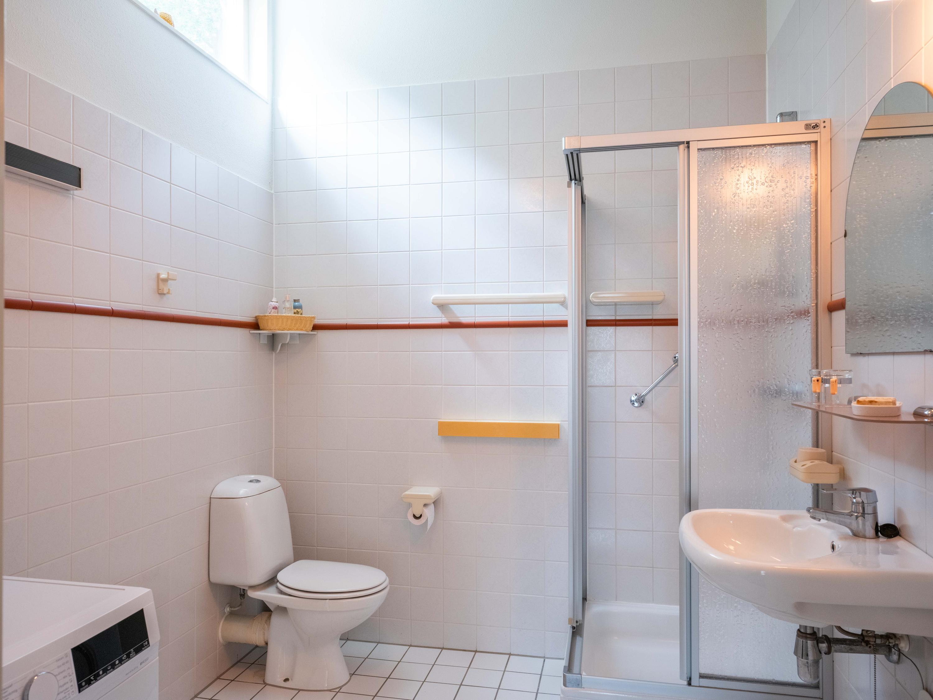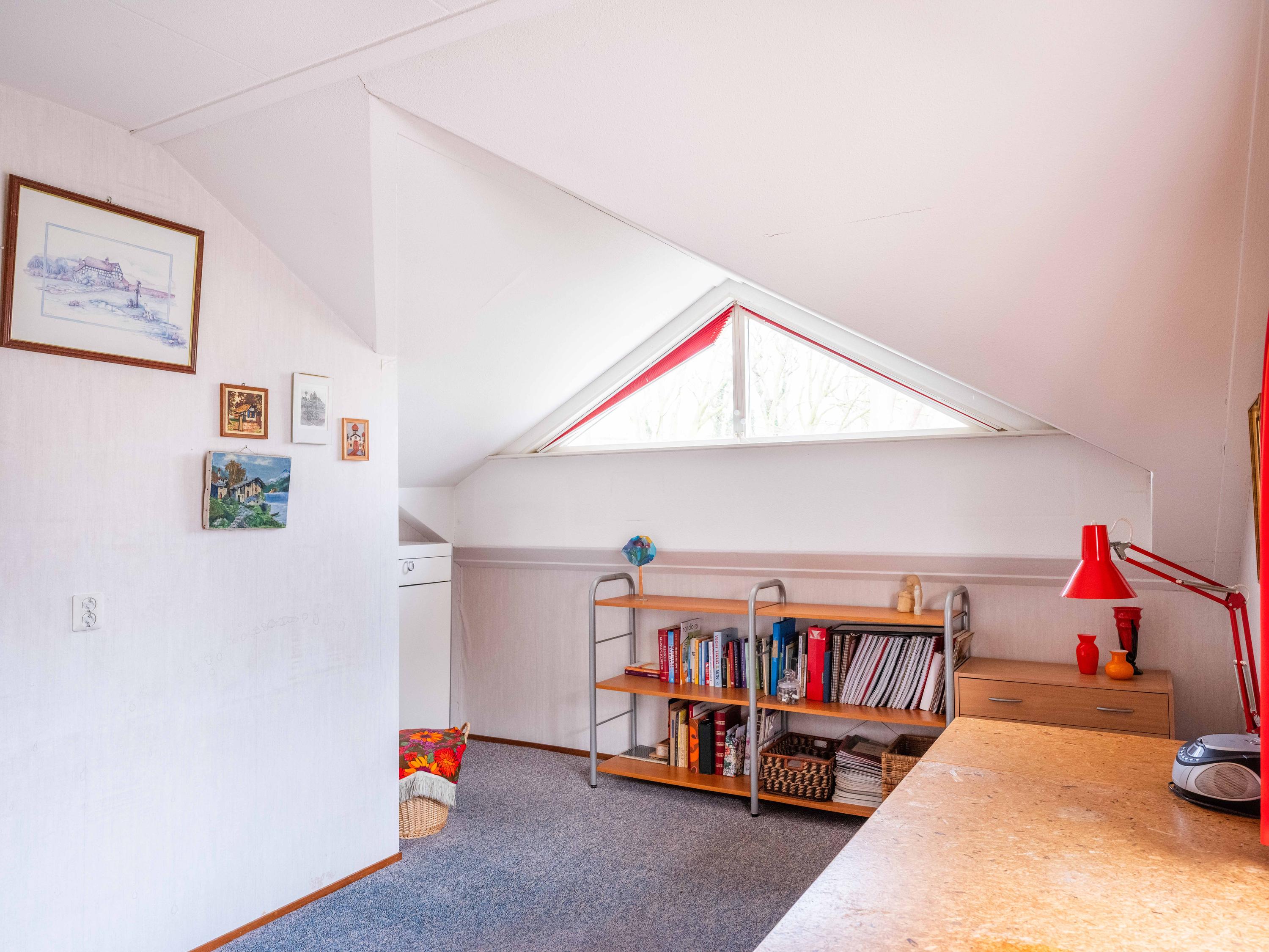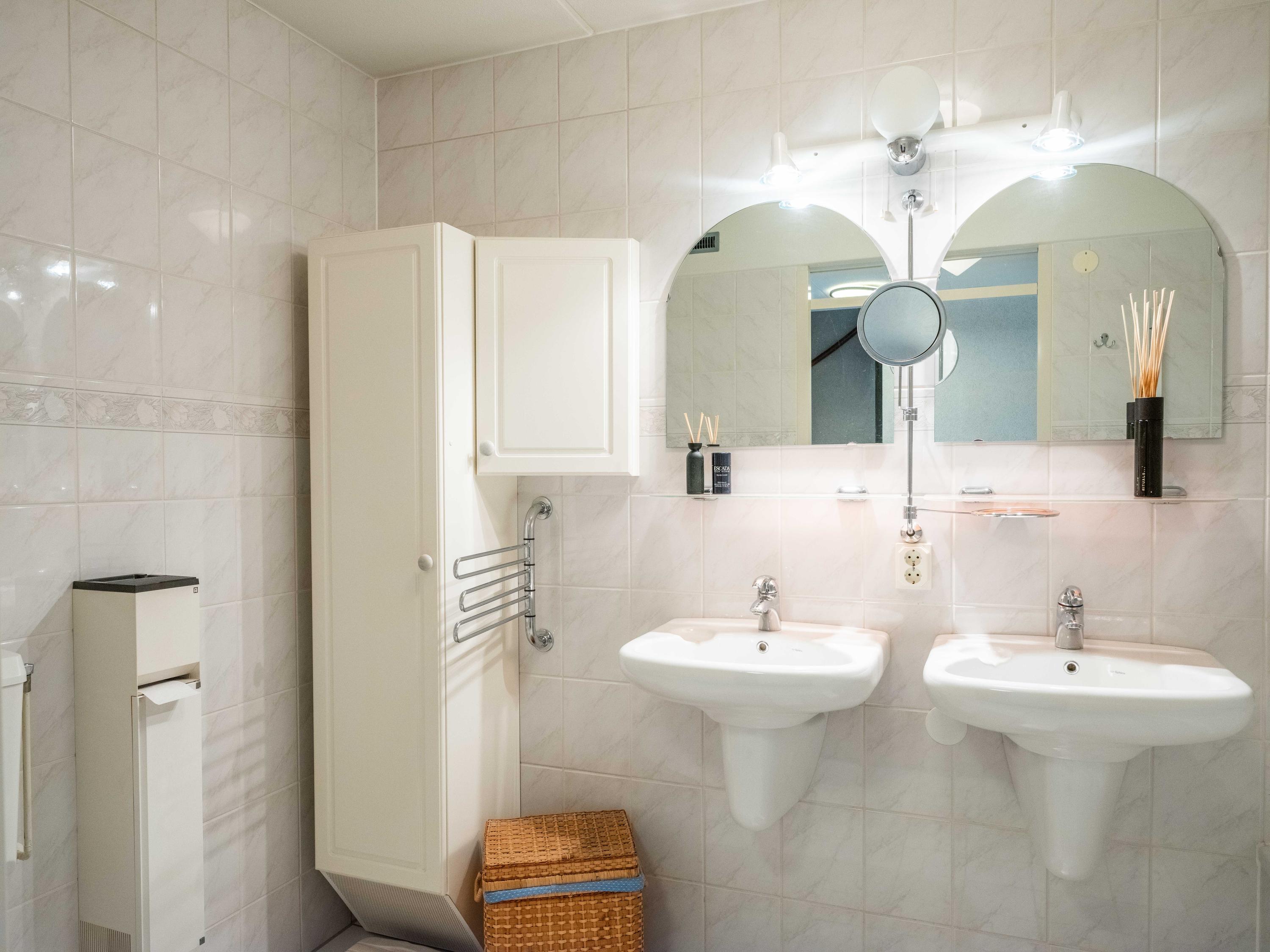 Op de begane grond vindt u verder een ruime kamer aan de tuinzijde, te gebruiken als kantoor, maar ook uitstekend geschikt als slaapkamer. De badkamer op de begane grond is voorzien van een ligbad met douche, dubbele wastafel en toilet.