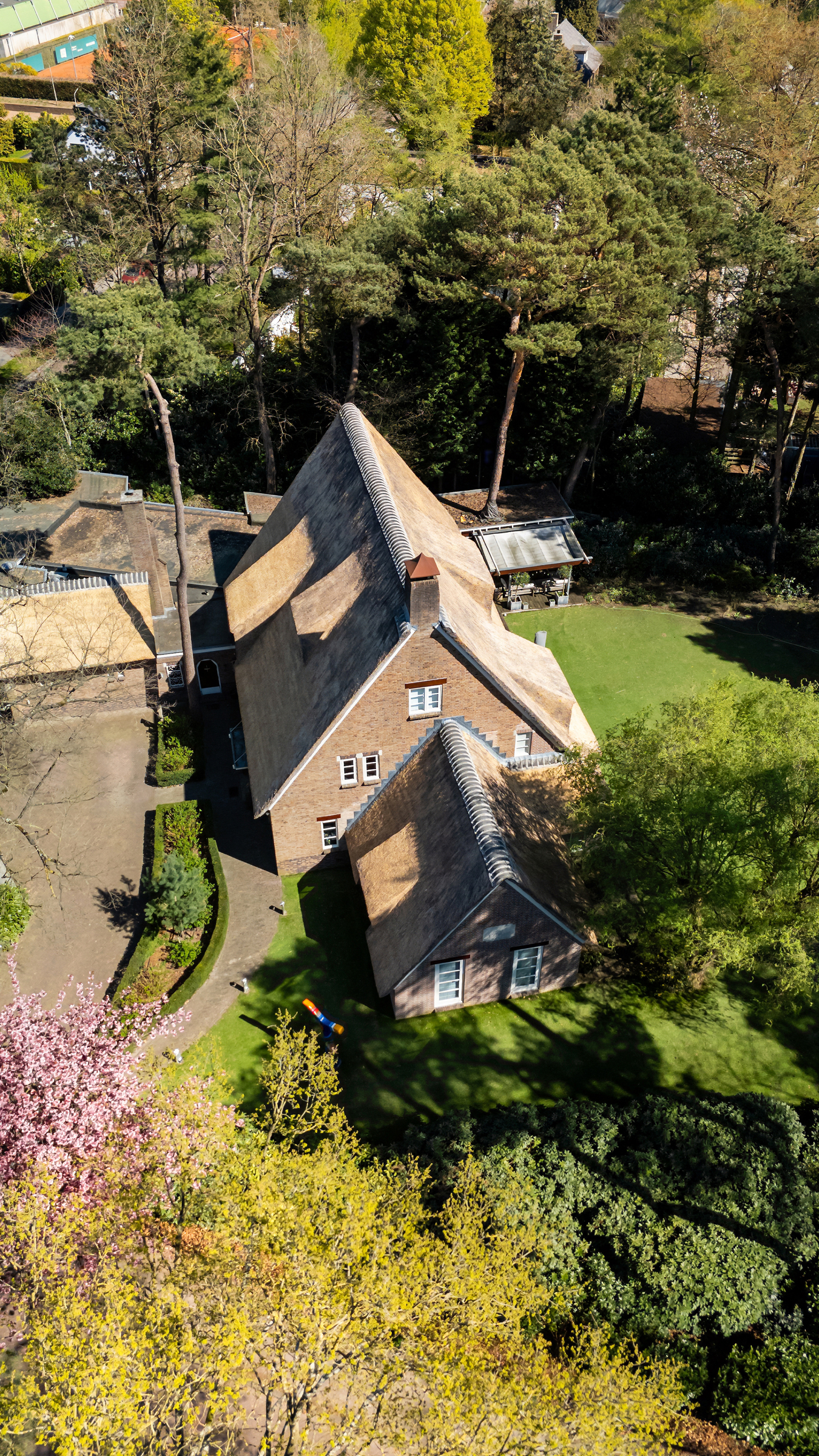 Laat je verleiden door dit ongekend fraaie, perfect onderhouden, rietgedekte landhuis aan Montenspark 1 te Breda. Gelegen op een markant punt in de gewilde en statige villawijk "Ruitersbos", biedt deze villa een ongeëvenaarde combinatie van luxe, comfort en natuurlijke schoonheid, op slechts een steenworp afstand van het prachtige Mastbos.