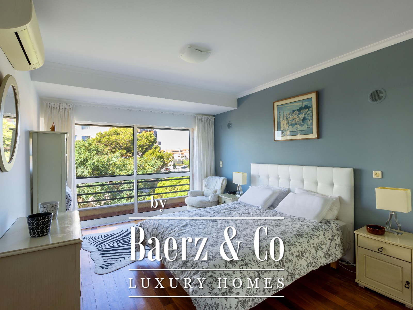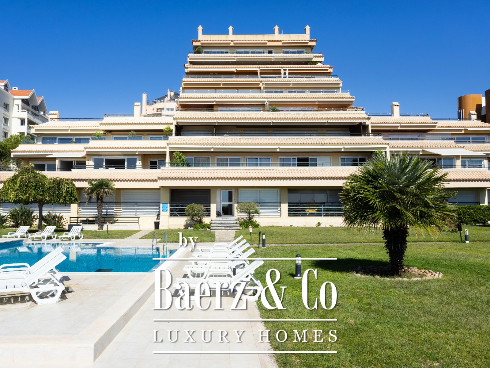 De moderne, volledig uitgeruste keuken grenst aan een balkon. De woning is voorzien van airconditioning, dubbele beglazing en elektrische rolluiken en wordt volledig gemeubileerd en uitgerust aangeboden. Tot de voorzieningen behoren een privézwembad, volwassen tuin, buitenparkeerplaats, 24-uurs beveiliging, lift, garage en een privébergruimte. De ligging biedt direct toegang tot Casa da Guia, de jachthaven van Cascais, belangrijke fietsroutes en gerenommeerde scholen zoals Salesianos do Estoril en Saint Julian's.