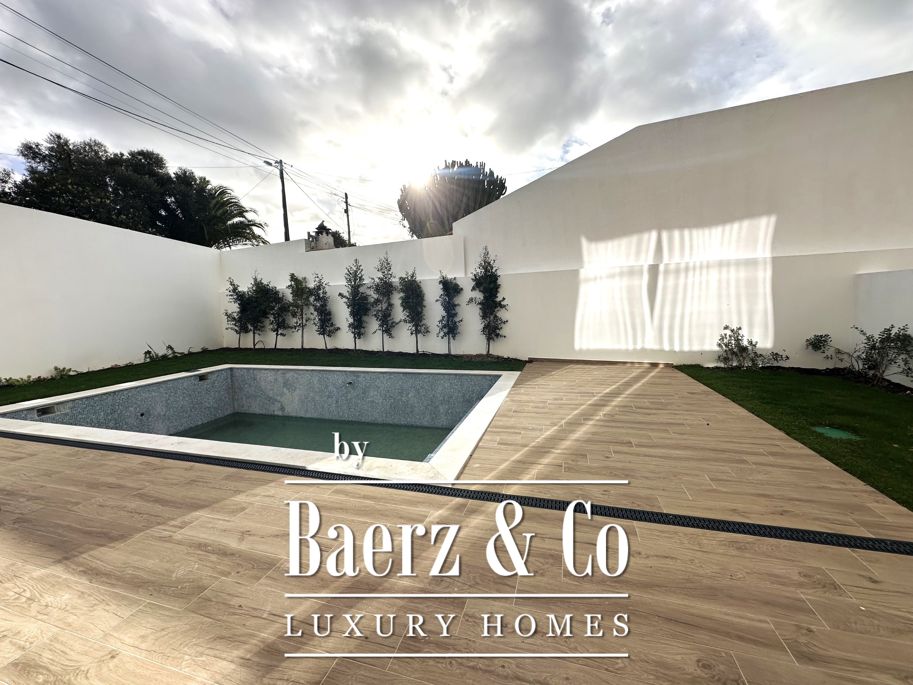 Buiten biedt een privéterras van 124 m² samen met een exclusief zwembad, ingebed in fraai aangelegde tuinen met fruitbomen en inheemse beplanting. Het perceel van 2.743 m² binnen het complex waarborgt zowel privacy als een gevoel van rust, met tuinen van opvallende omvang en kwaliteit. Geavanceerde domotica beheert zowel woning als tuin en brengt comfort samen met verfijnd wonen. Elk detail, van materiaalkeuze tot technische specificaties, is zorgvuldig geselecteerd voor een leven van discrete elegantie en functionele verfijning. Voor wie zoekt naar een toevluchtsoord in Cascais, vormt deze villa een zeldzame synergie tussen natuur, privacy en modern design.