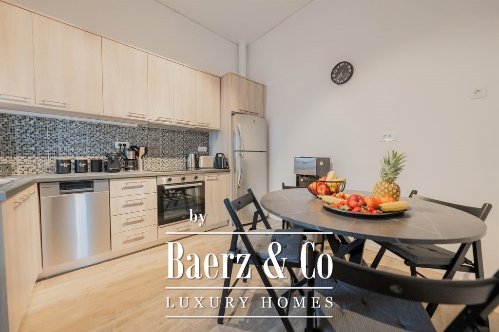 Het appartement is zorgvuldig en volledig gerenoveerd, waarbij hedendaags design wordt gecombineerd met hoogwaardige materialen. De woon- en eetkamer verbreden naar het balkon aan de waterzijde, waardoor natuurlijk licht binnenvalt en dagelijks het uitzicht op de Egeïsche Zee en de zonsondergang wordt omlijst. De aparte, volledig uitgeruste keuken biedt privacy en praktisch comfort, terwijl alle drie de slaapkamers voorzien zijn van royale inbouwkasten en een veilige kluis. Twee badkamers zijn gericht op comfort en helderheid, met moderne afwerkingen die de kwaliteitsbeleving versterken.